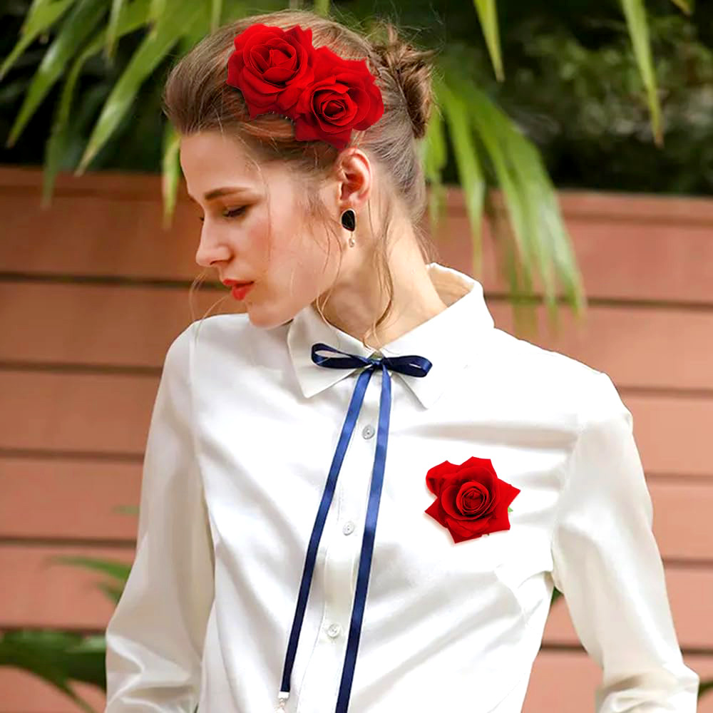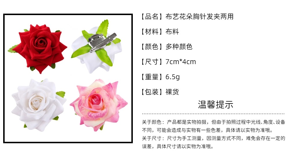时尚布艺仿真花朵发夹百搭发饰胸针两用刘海碎发边夹时尚编发头饰
