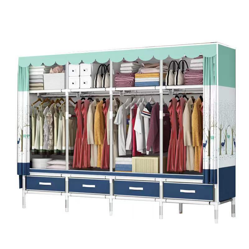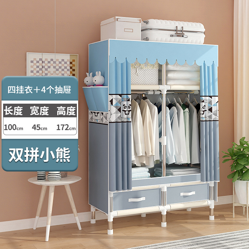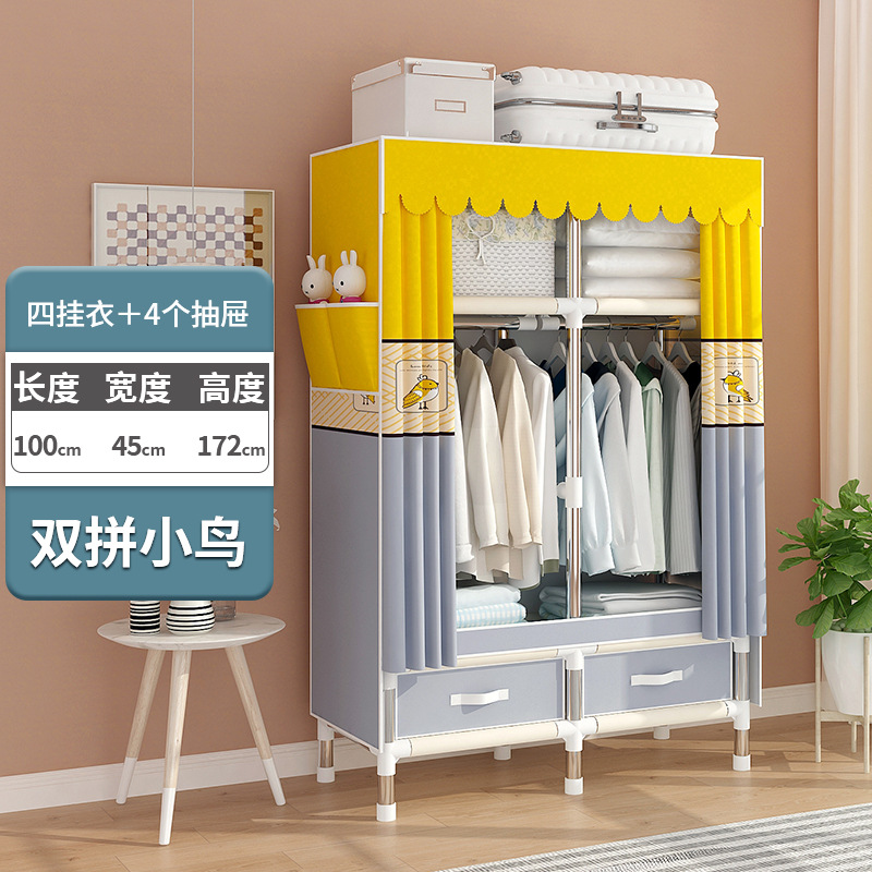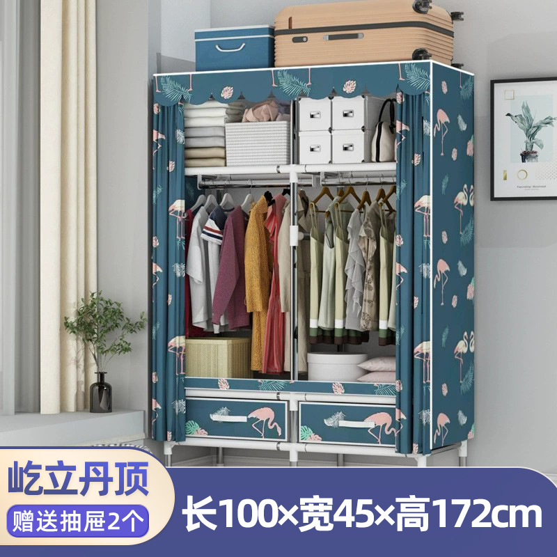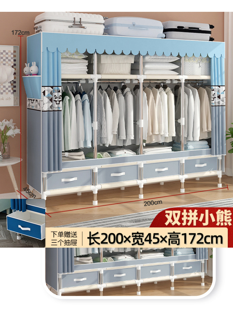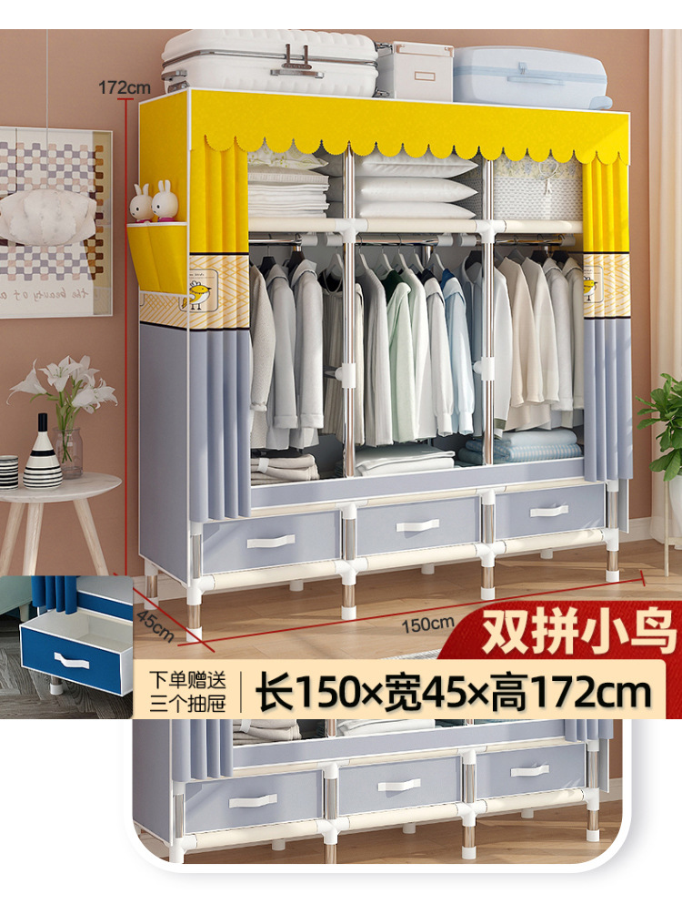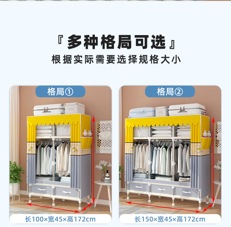 简易衣柜抽屉式出租房用布衣柜收纳柜挂衣橱钢管加粗加固结实耐用