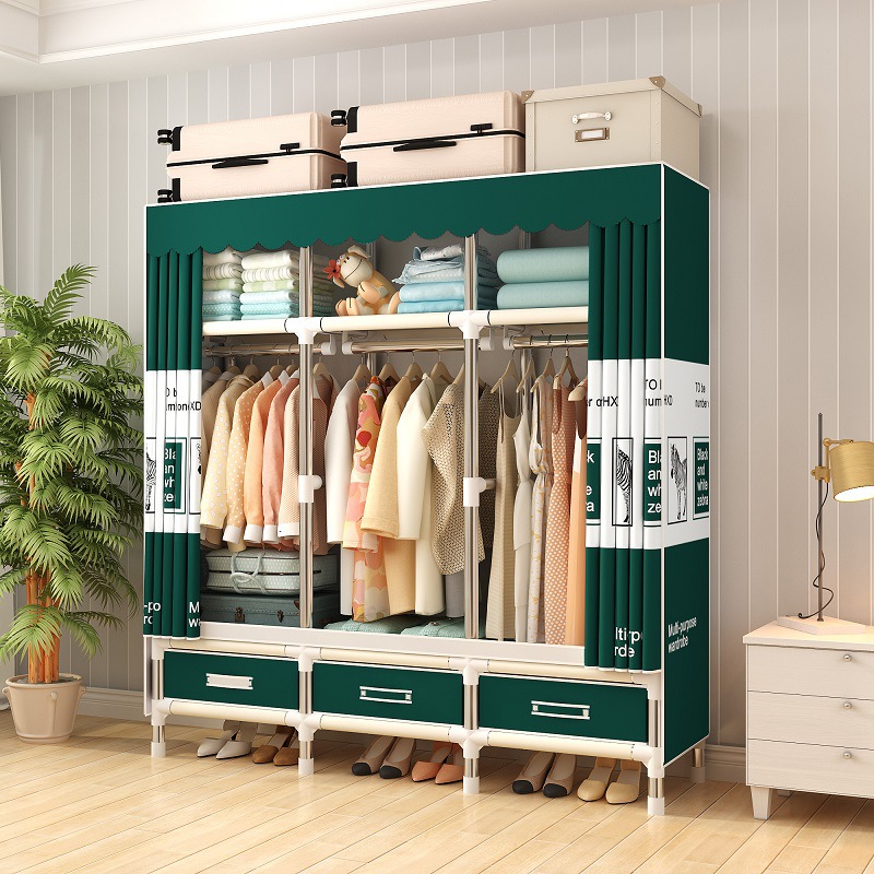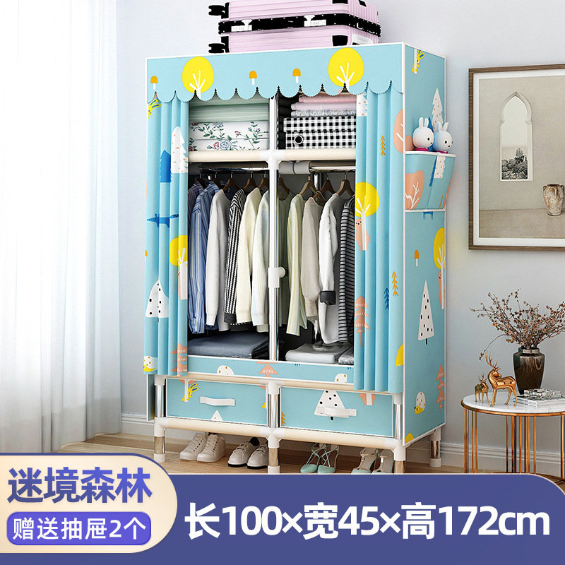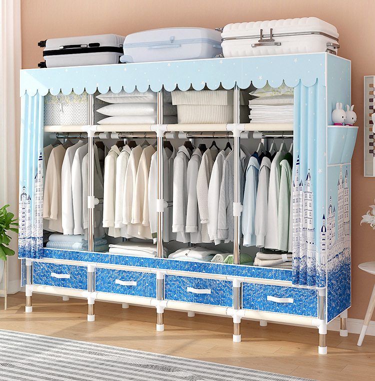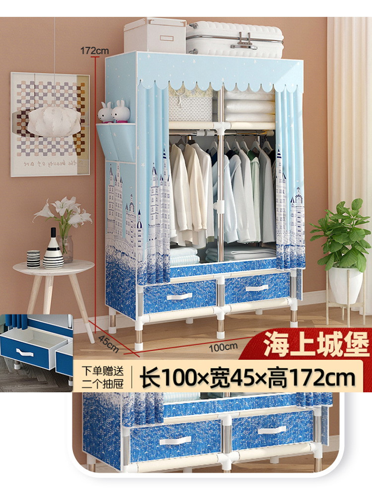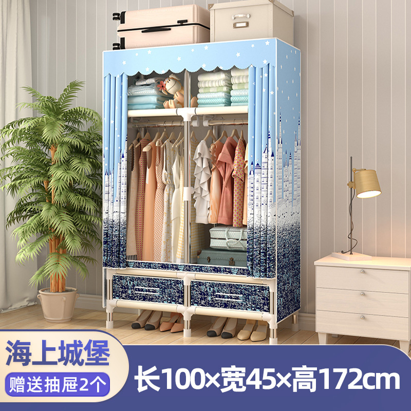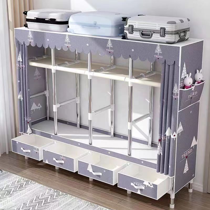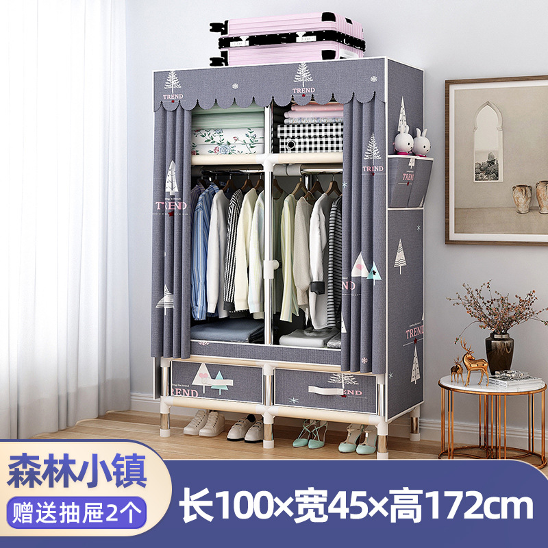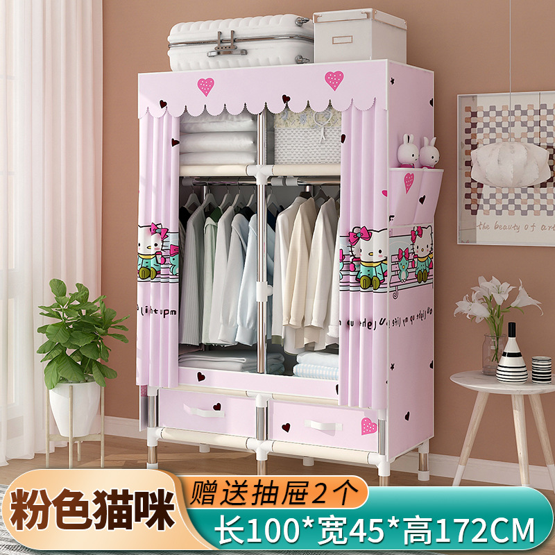 简易衣柜抽屉式出租房用布衣柜收纳柜挂衣橱钢管加粗加固结实耐用