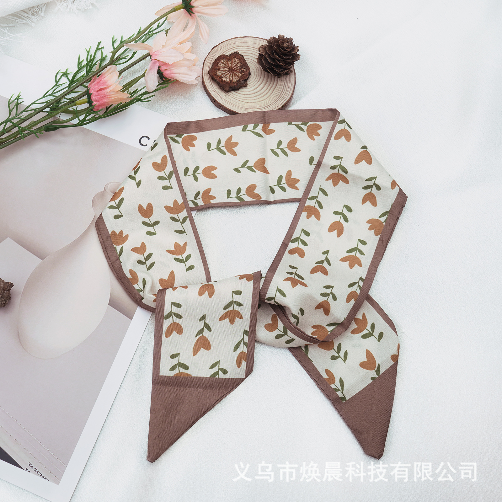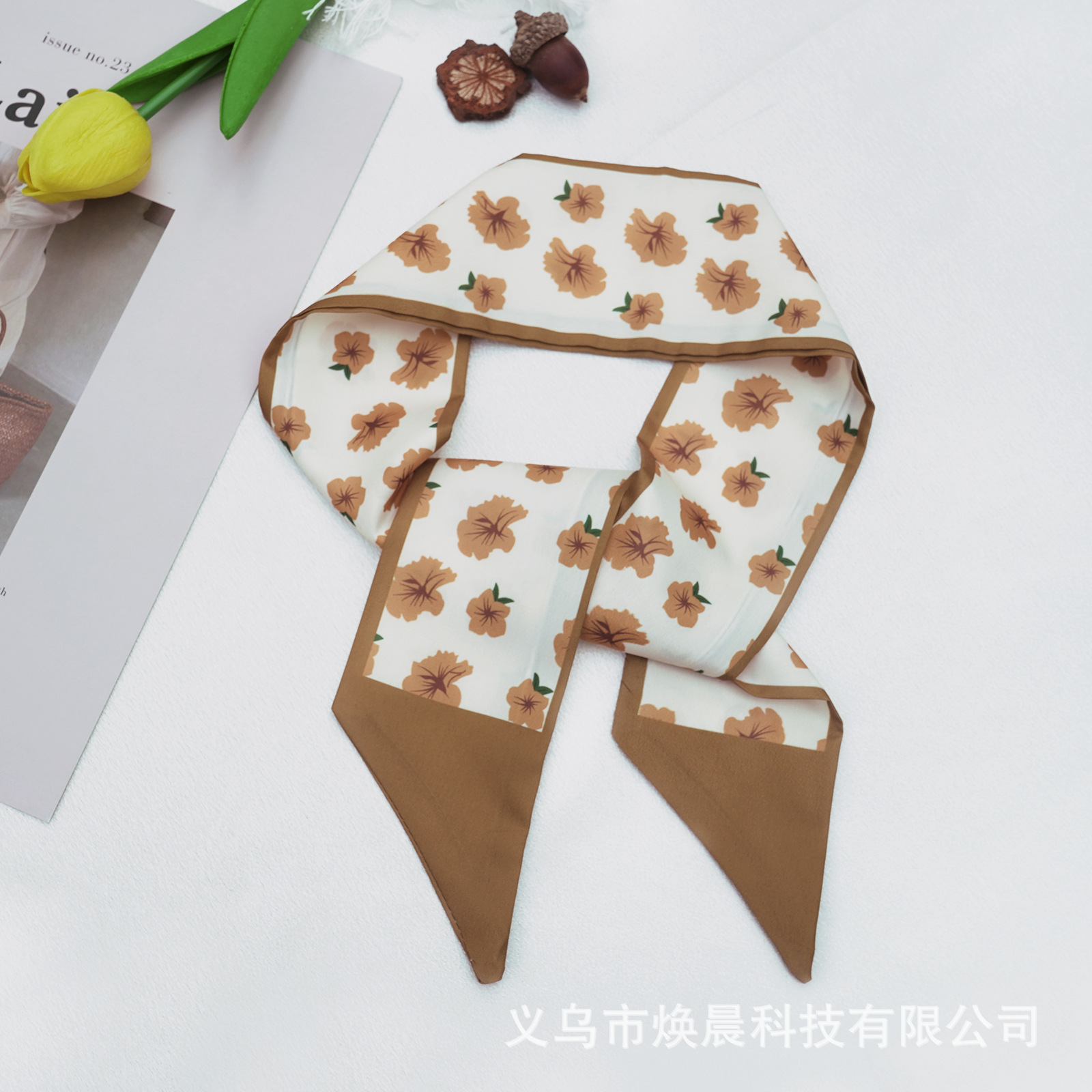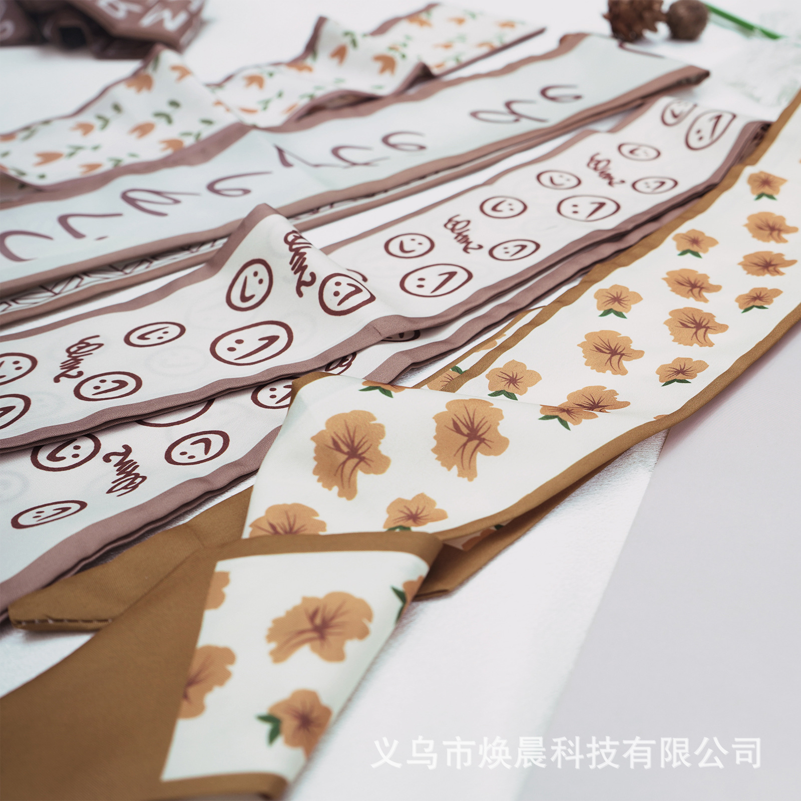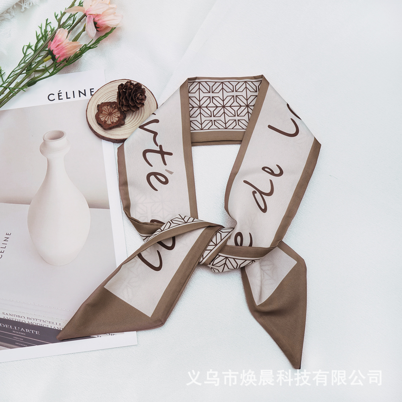 气质感卡其裸色系韩版ins风小丝巾飘带扎发发带装饰春秋飘带丝巾