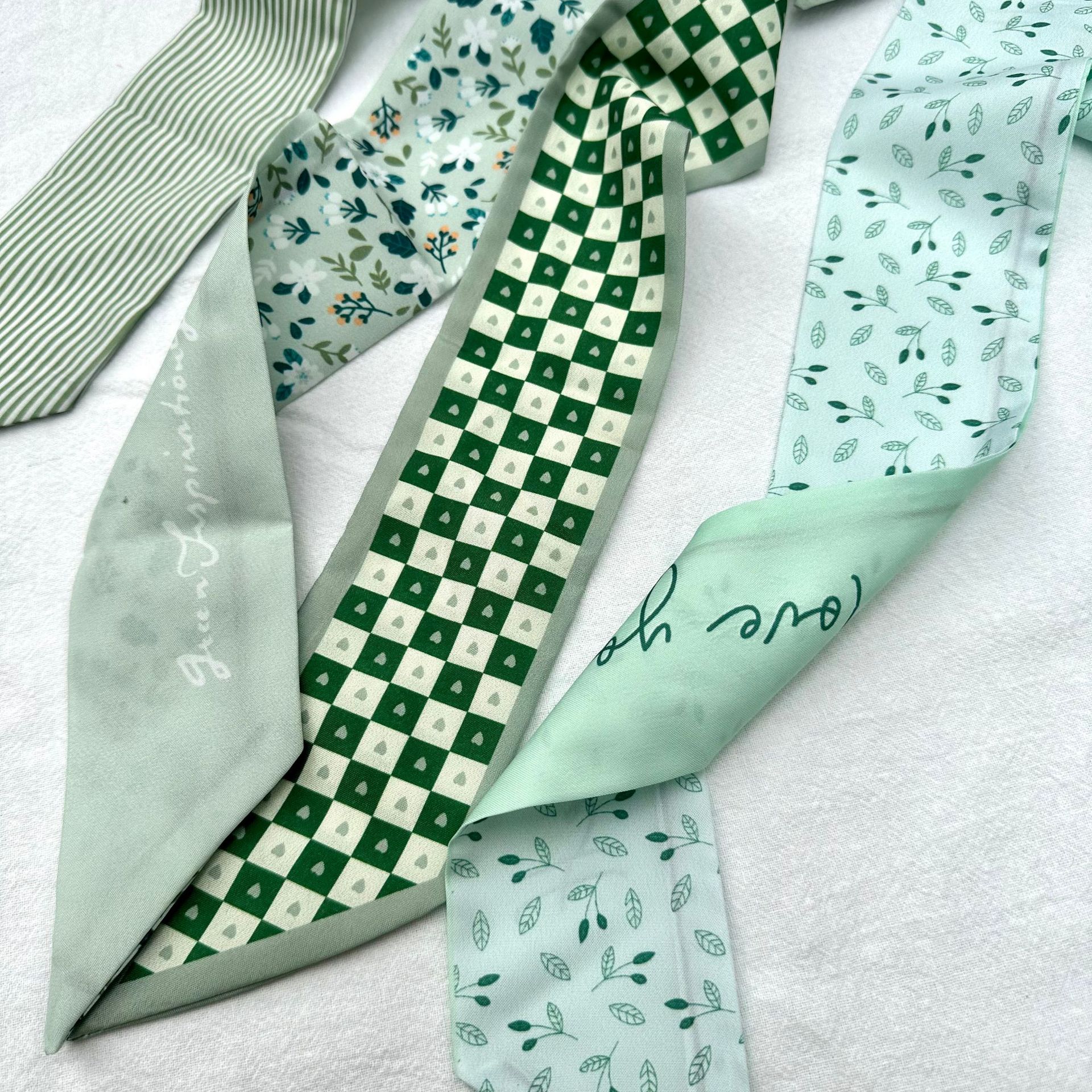 绿色清新长条百搭丝巾绑发带蝴蝶结碎花飘带绑包包伴手礼小丝巾
