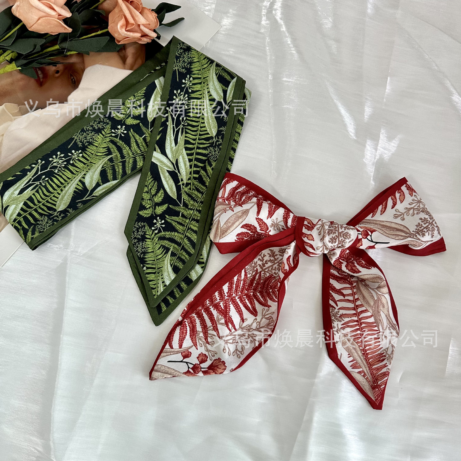 红色中秋节礼盒丝巾百搭红色女绑发带树叶飘带绑包包伴手礼小丝巾