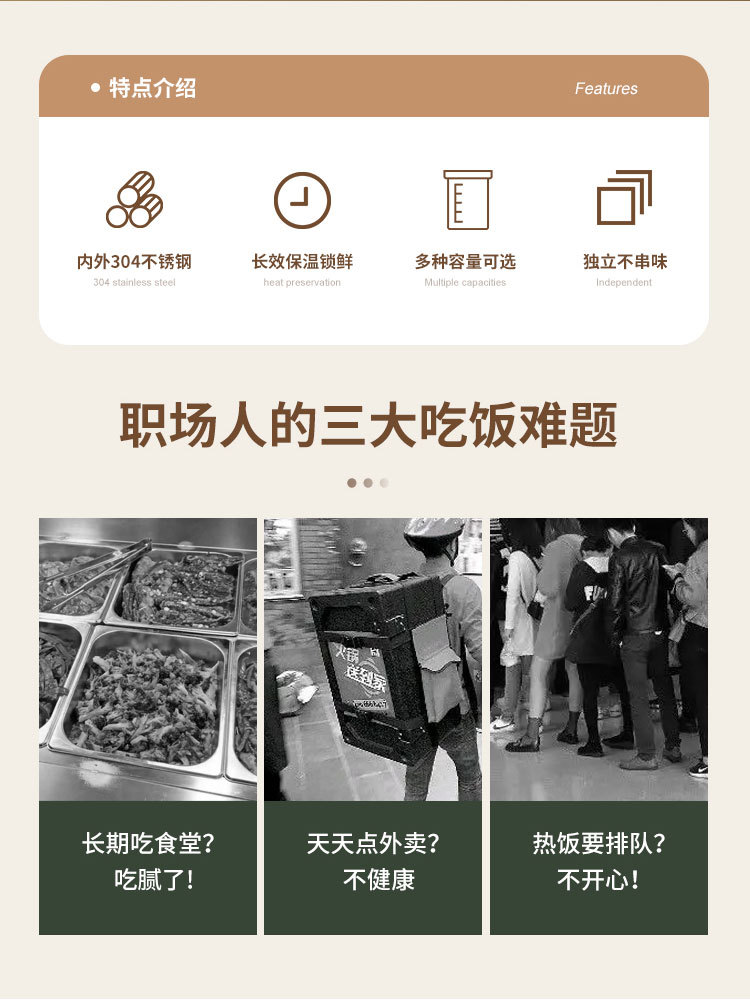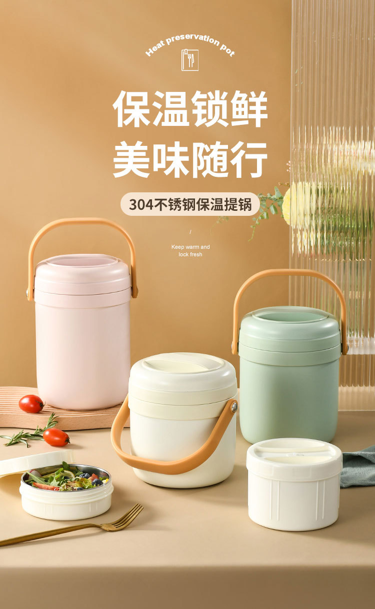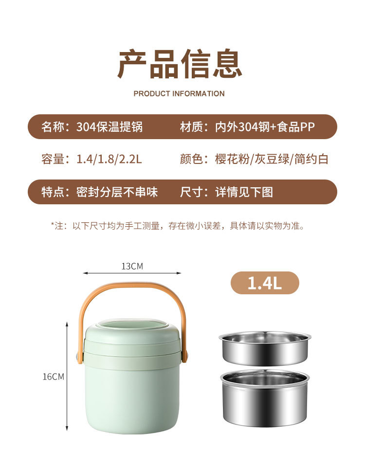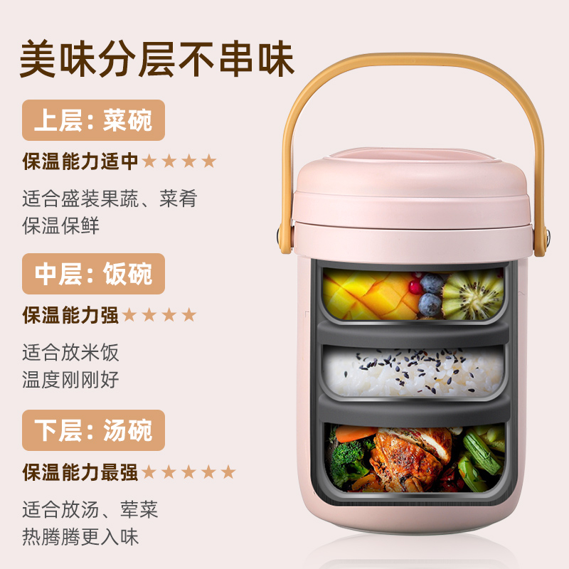 304食品级超长保温饭盒不锈钢便携上班族大容量饭桶多层饭盒女ins