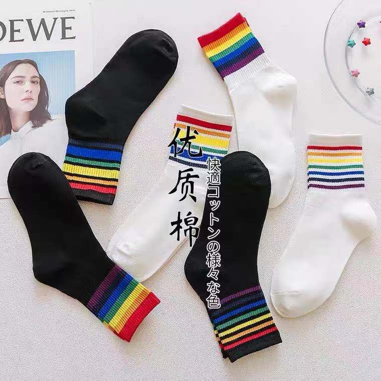 彩虹袜子女高腰中筒袜秋棉袜运动袜网红堆堆袜ins潮袜子批发