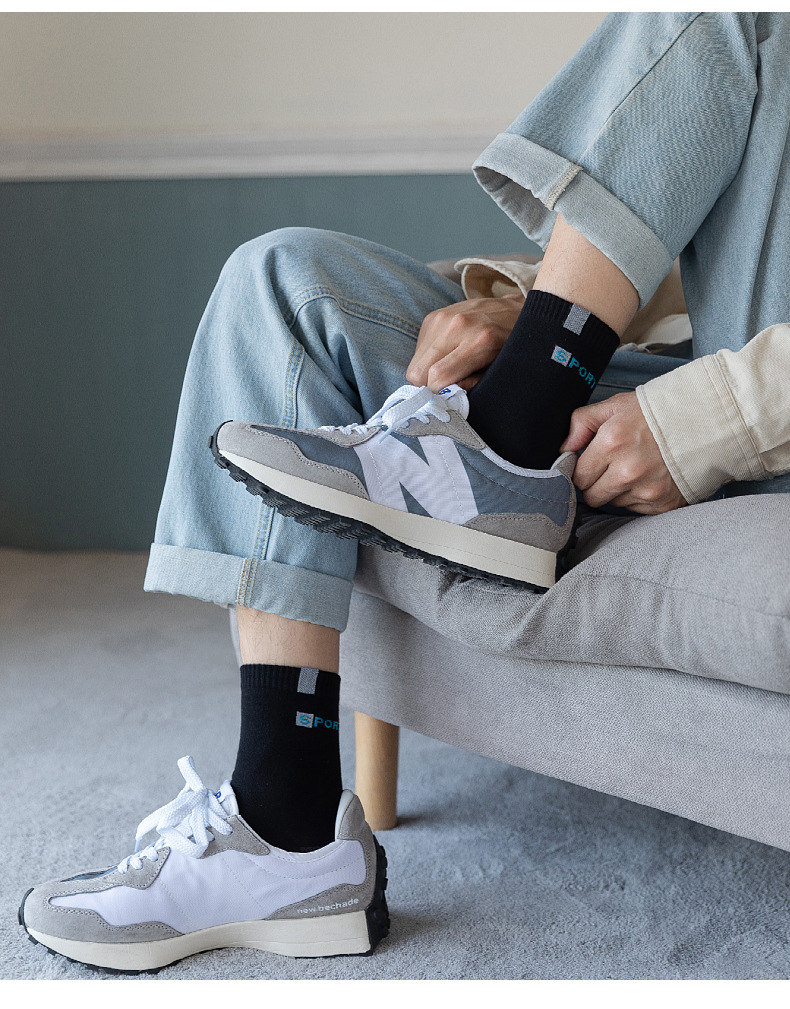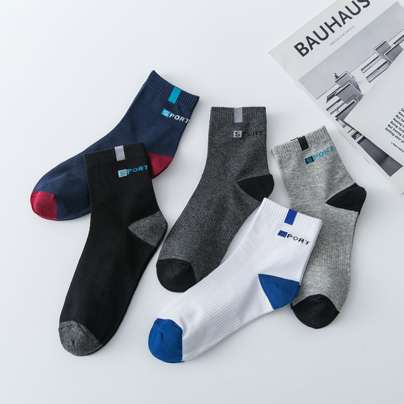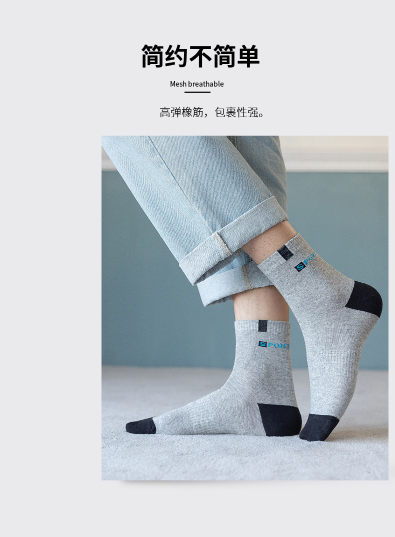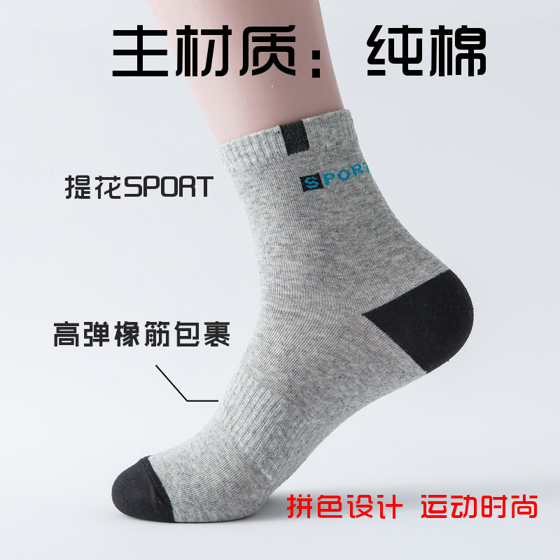 四季款中筒袜男士运动袜纯色棉跑步篮球袜吸汗透气耐穿袜子男批发