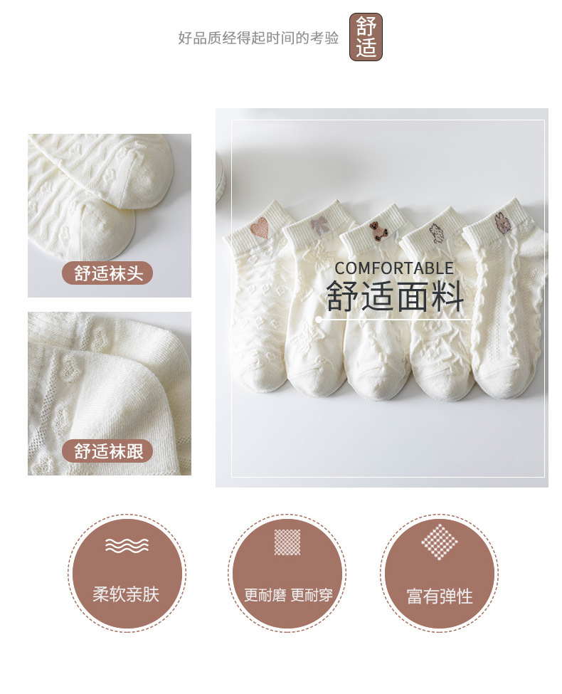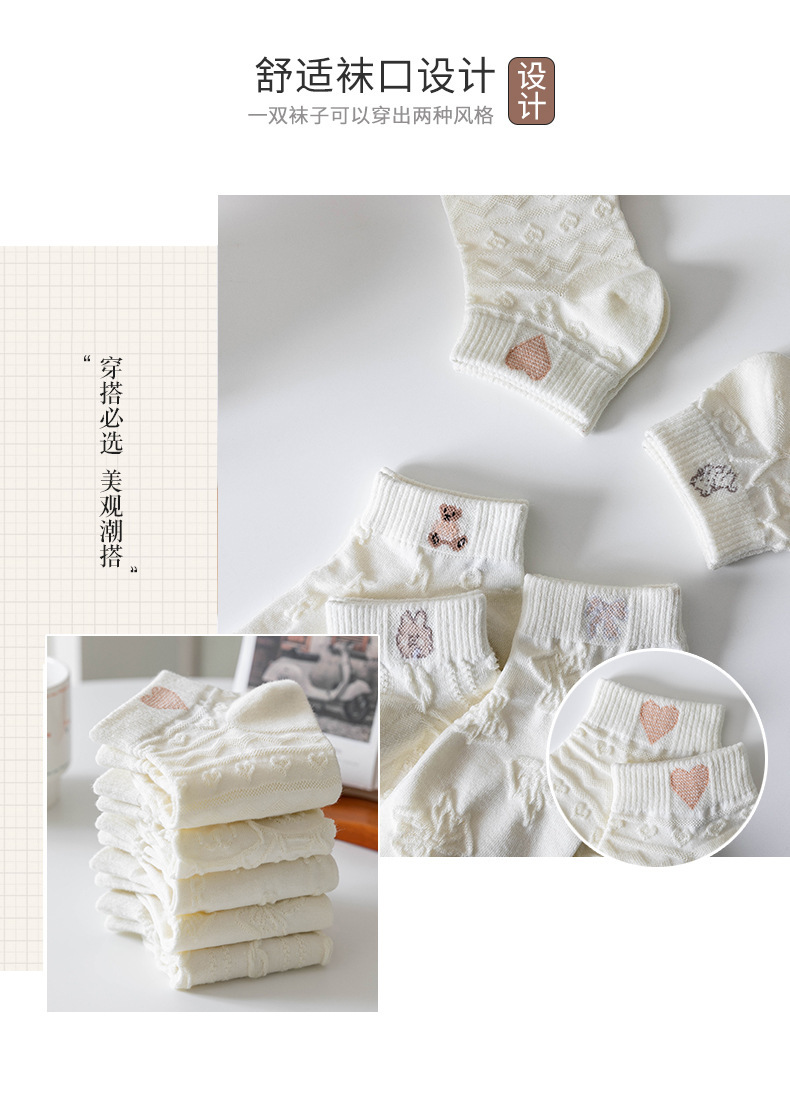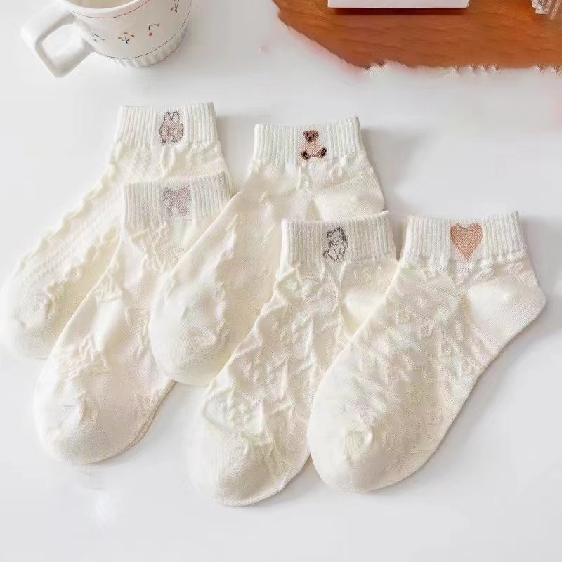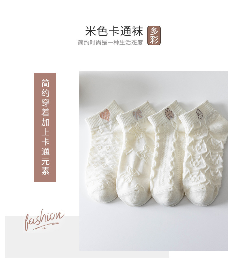 米白袜子女夏季薄款船袜日系纯色短筒棉袜Lolita吸汗短袜诸暨袜子