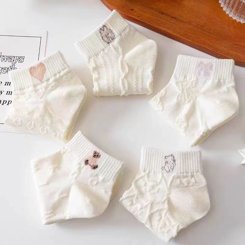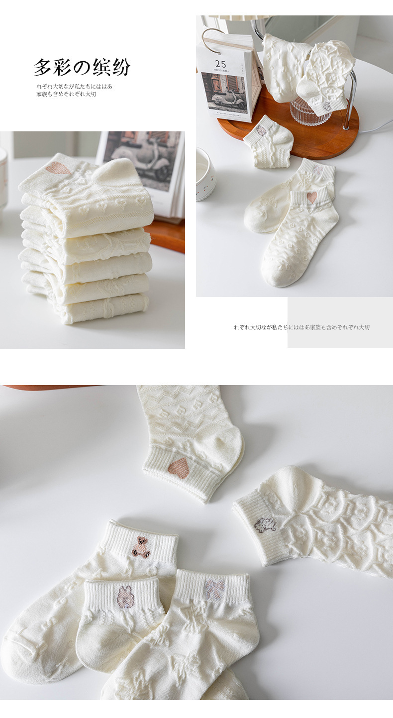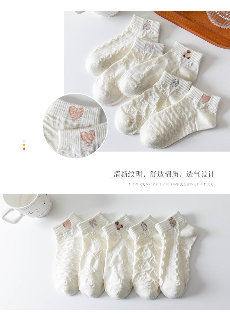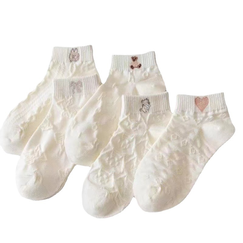 米白袜子女夏季薄款船袜日系纯色短筒棉袜Lolita吸汗短袜诸暨袜子