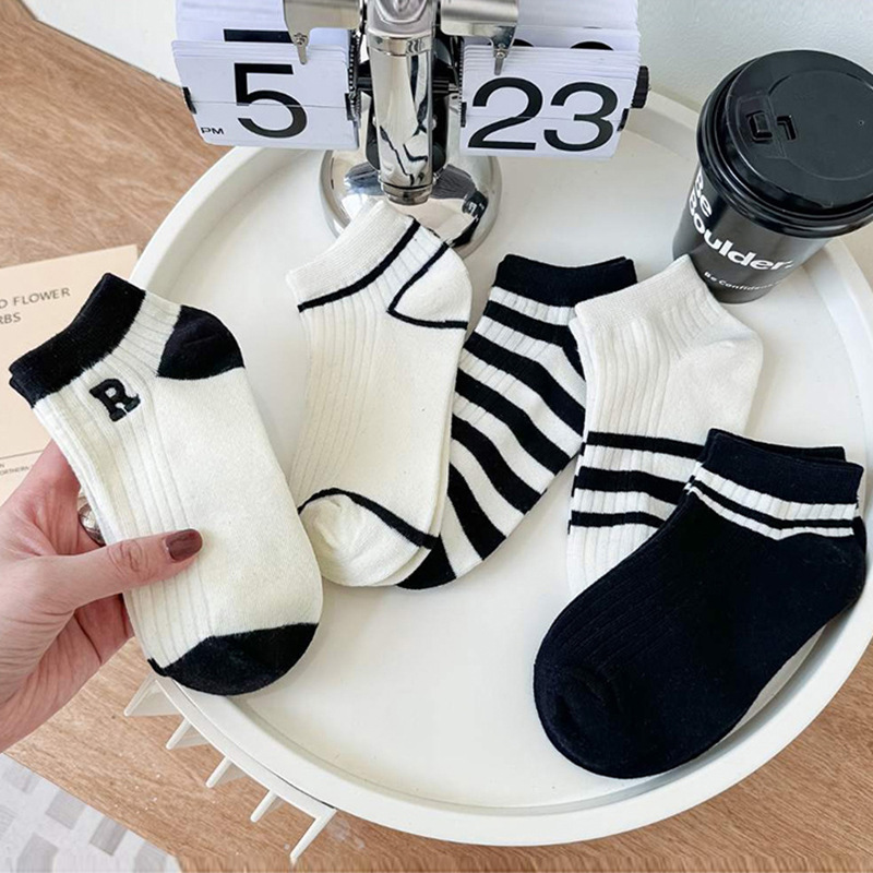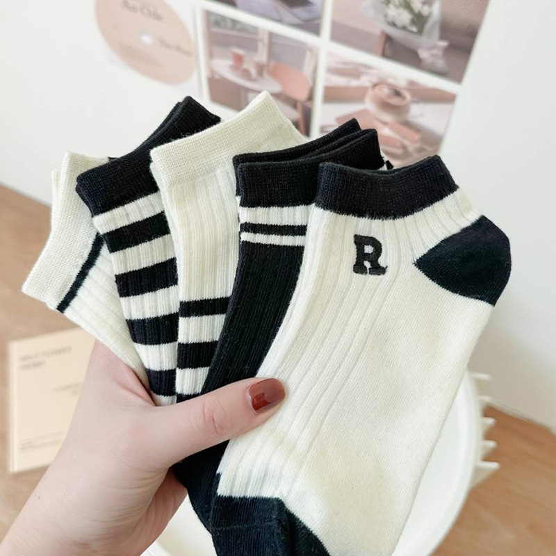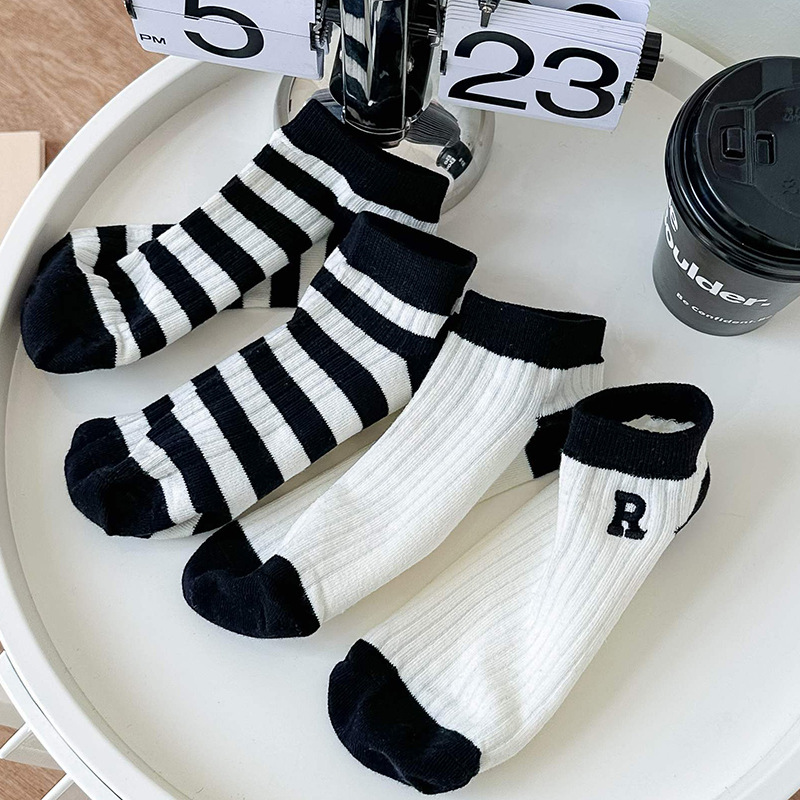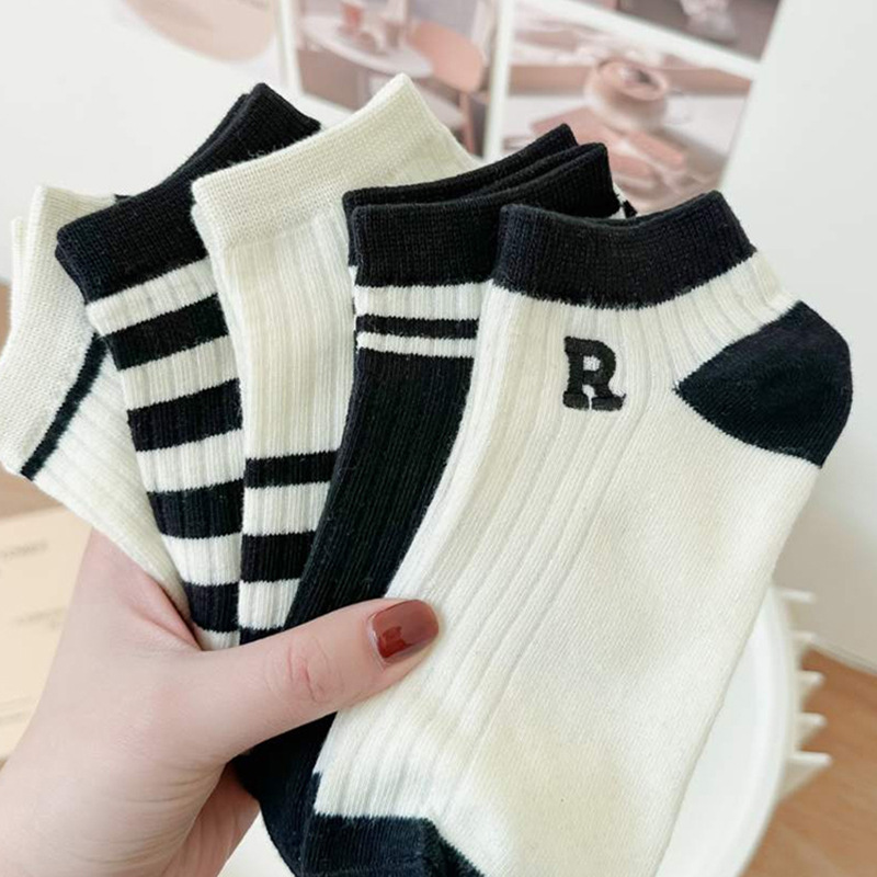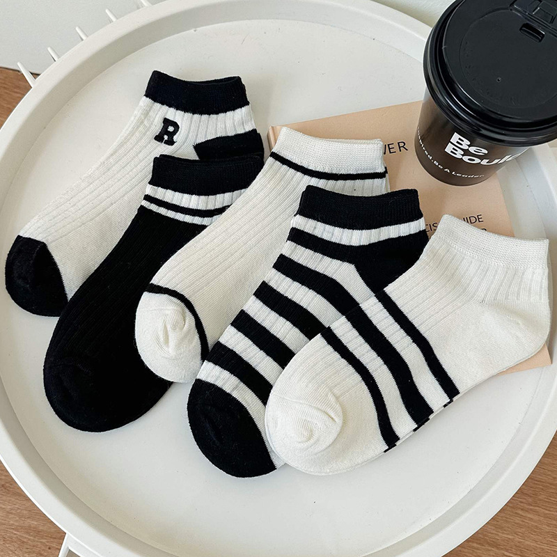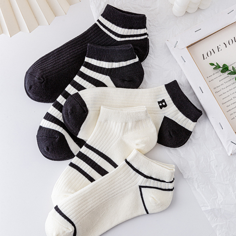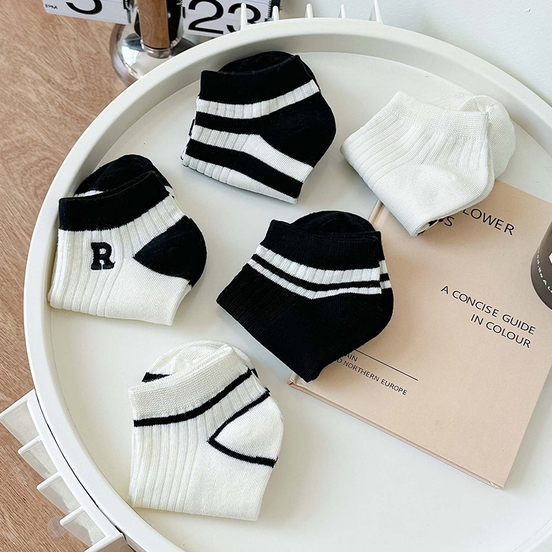 黑白条纹袜子女短袜春夏季薄款隐形浅口女士简约学院风潮袜船袜