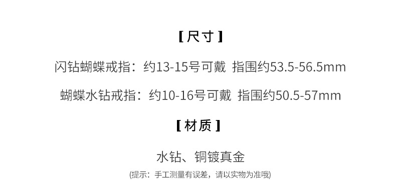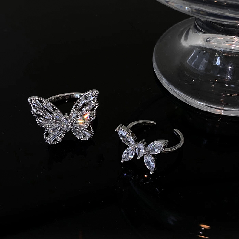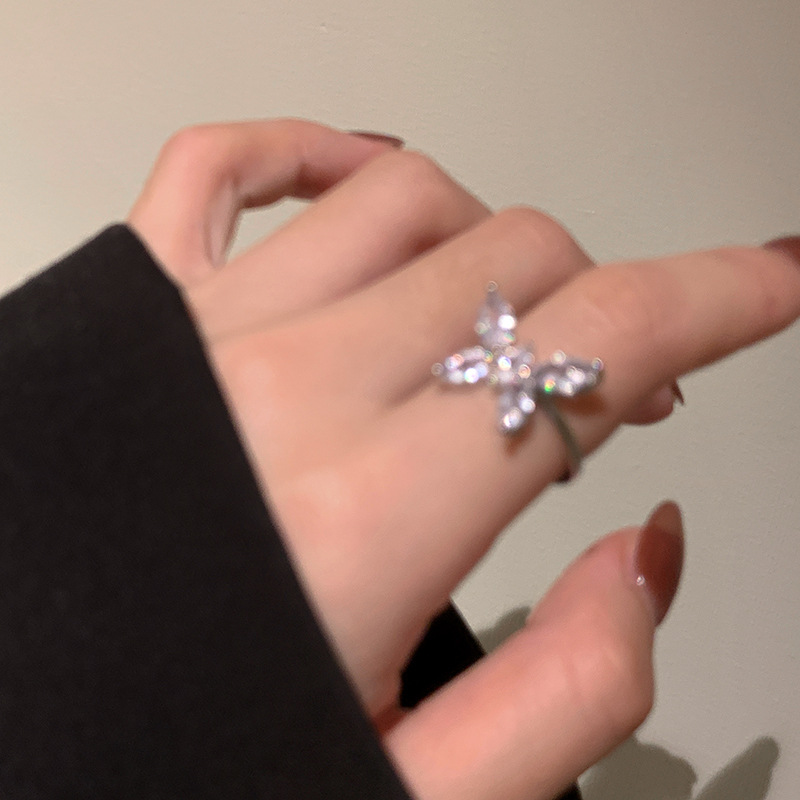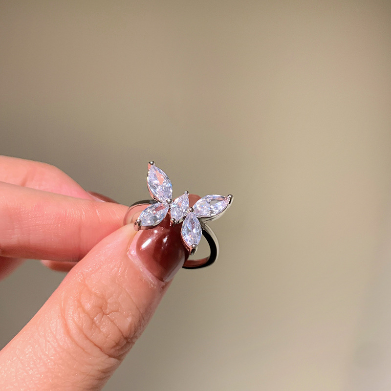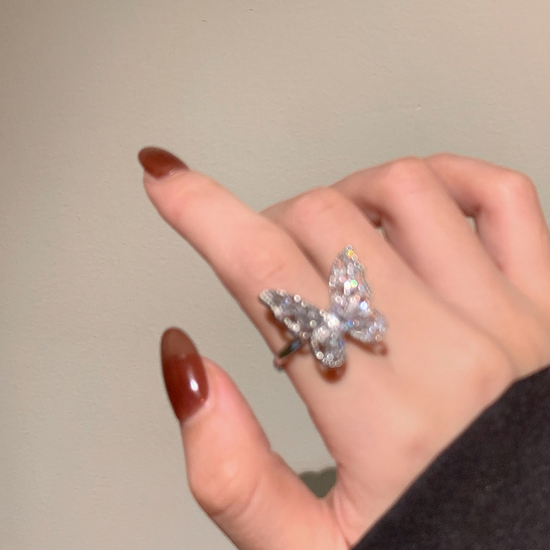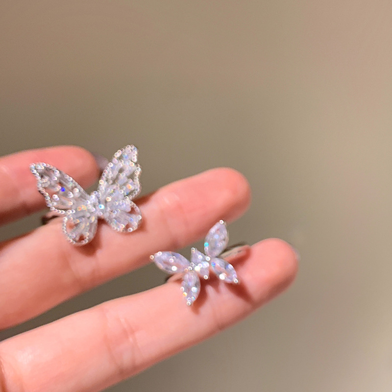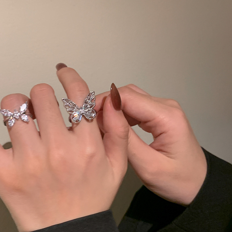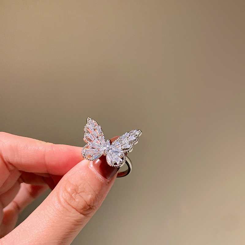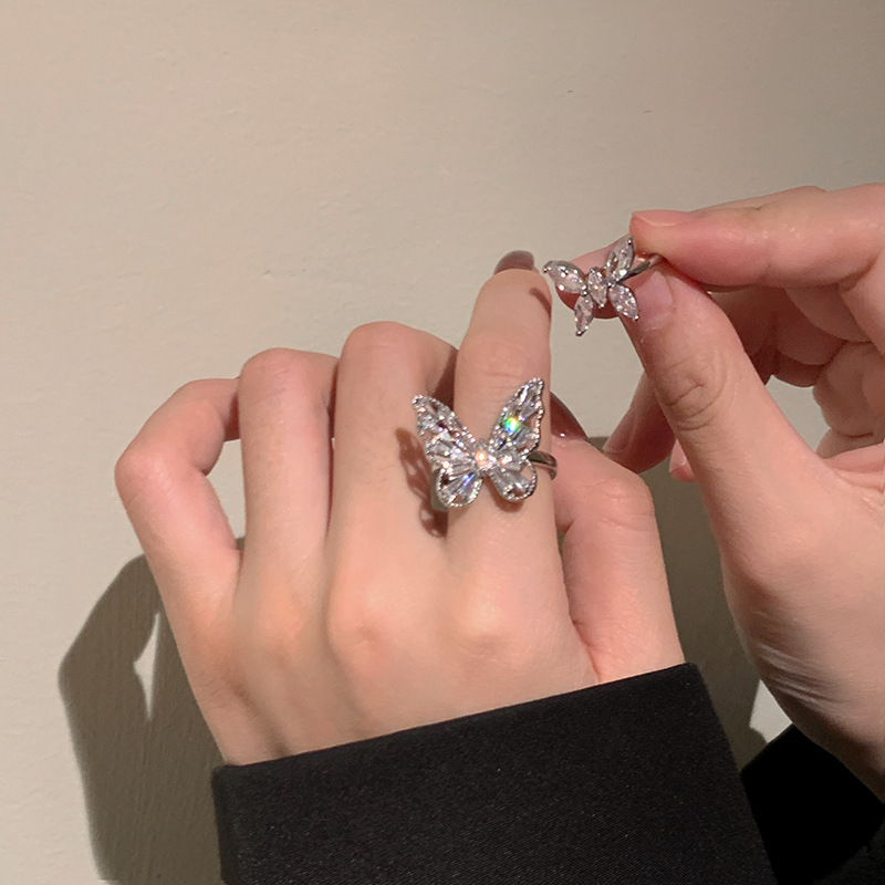 仙气满满~蝴蝶锆石戒指女轻奢时尚开口可调节食指戒小众指环
