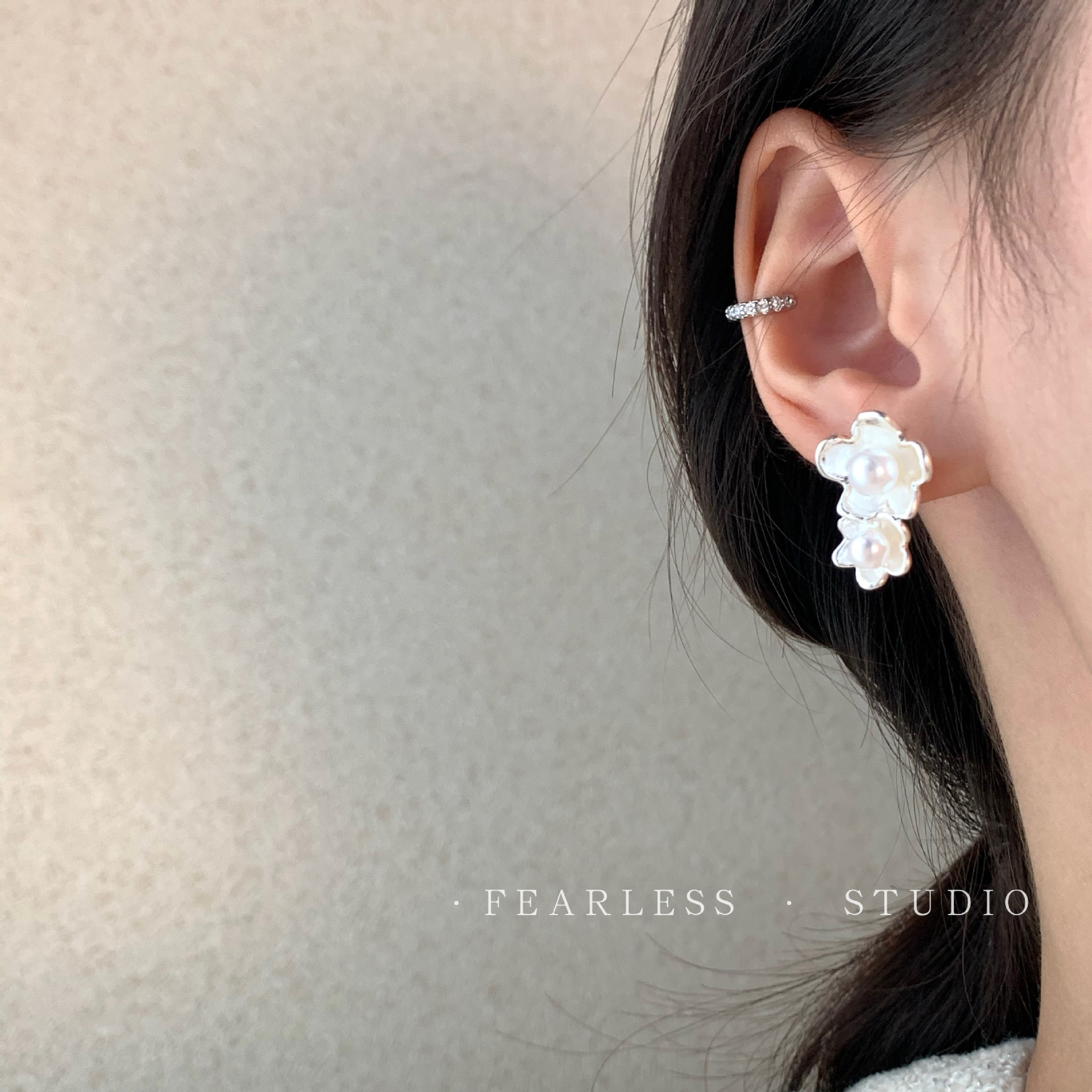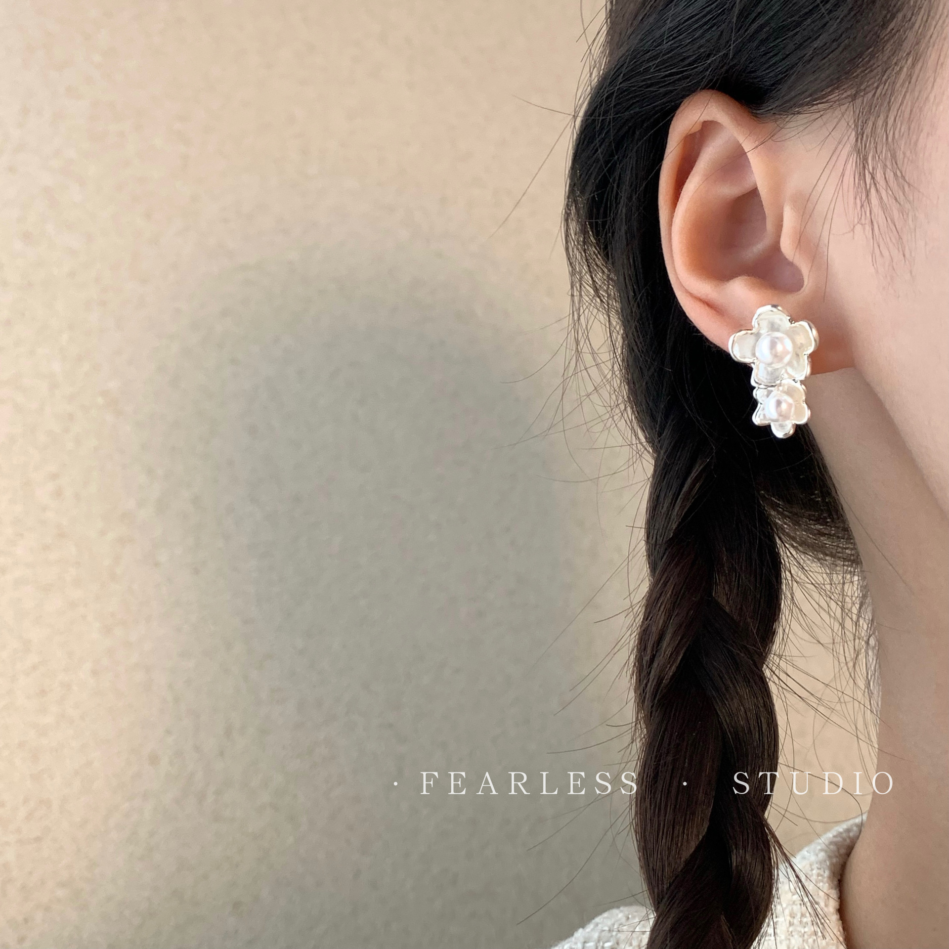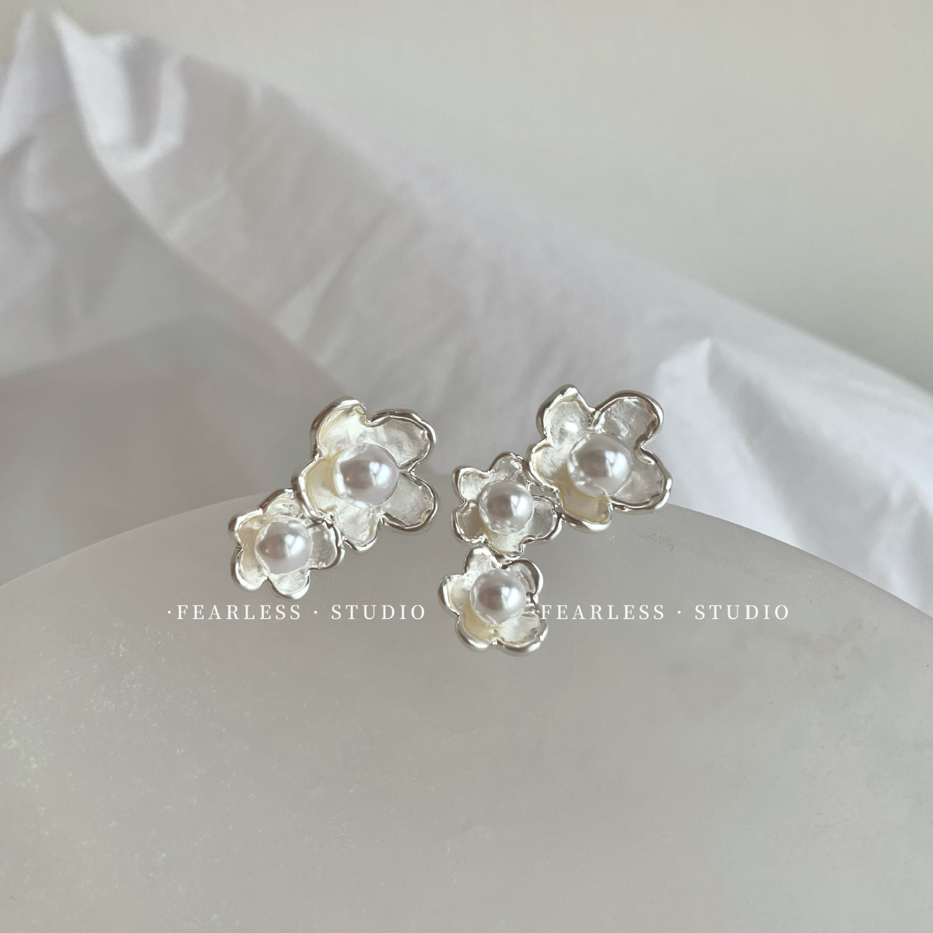 2023年新款韩国小众设计感不对称花朵耳钉 AB款花瓣耳环女
