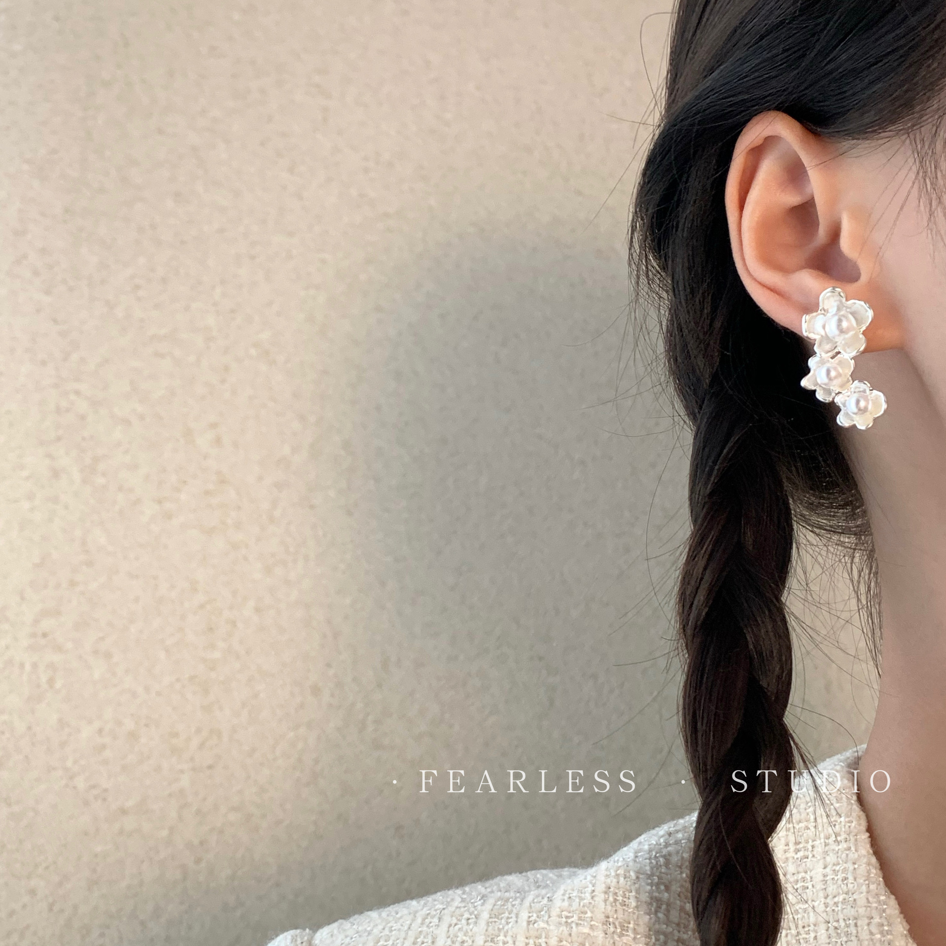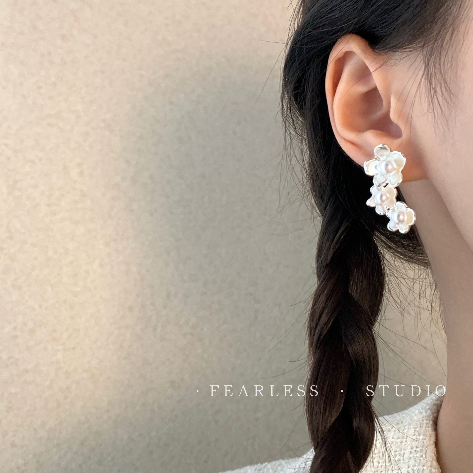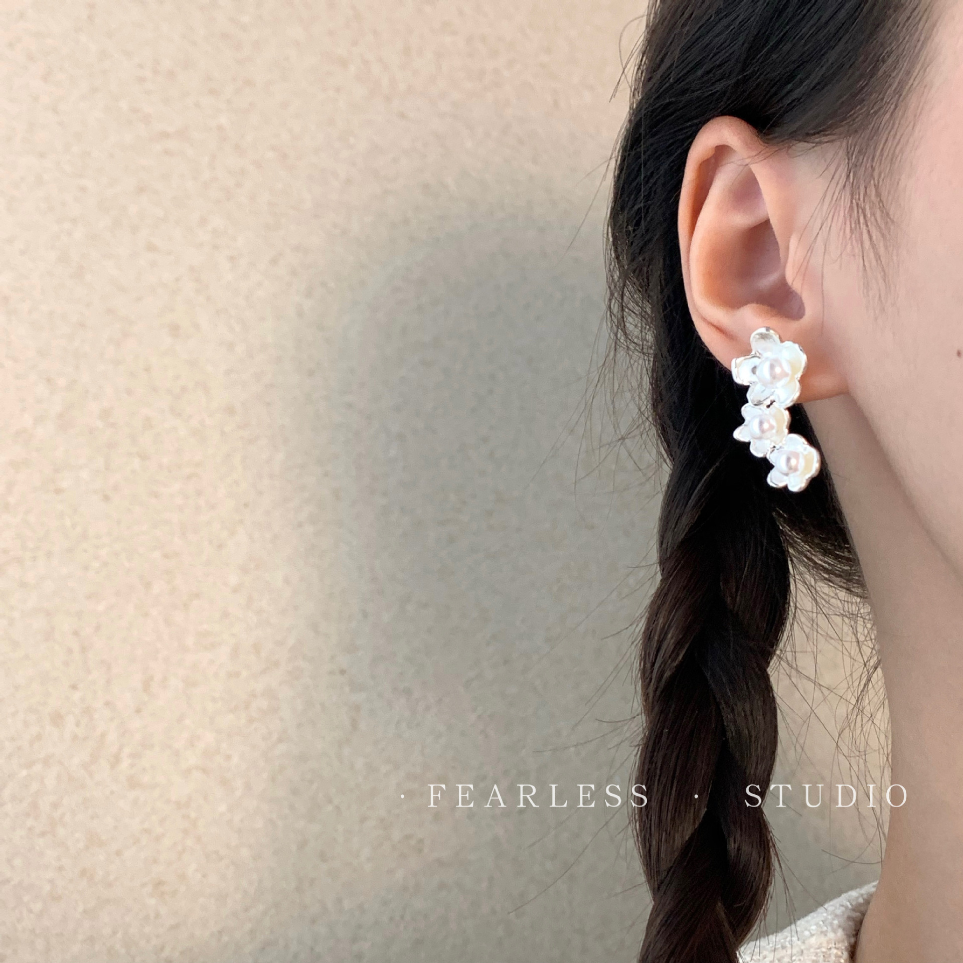 2023年新款韩国小众设计感不对称花朵耳钉 AB款花瓣耳环女