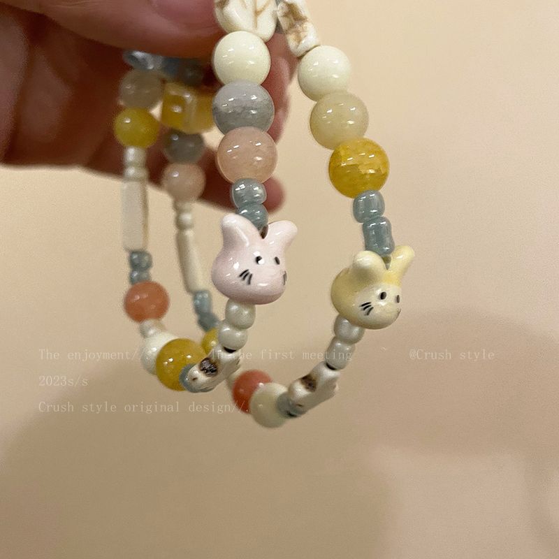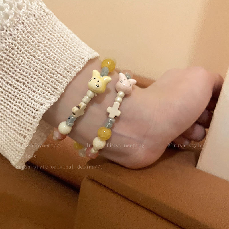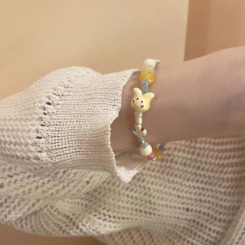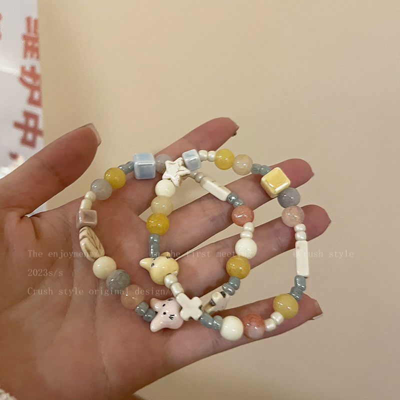小清新彩色陶瓷串珠手链女款2023年新款网红手饰甜美可爱手串