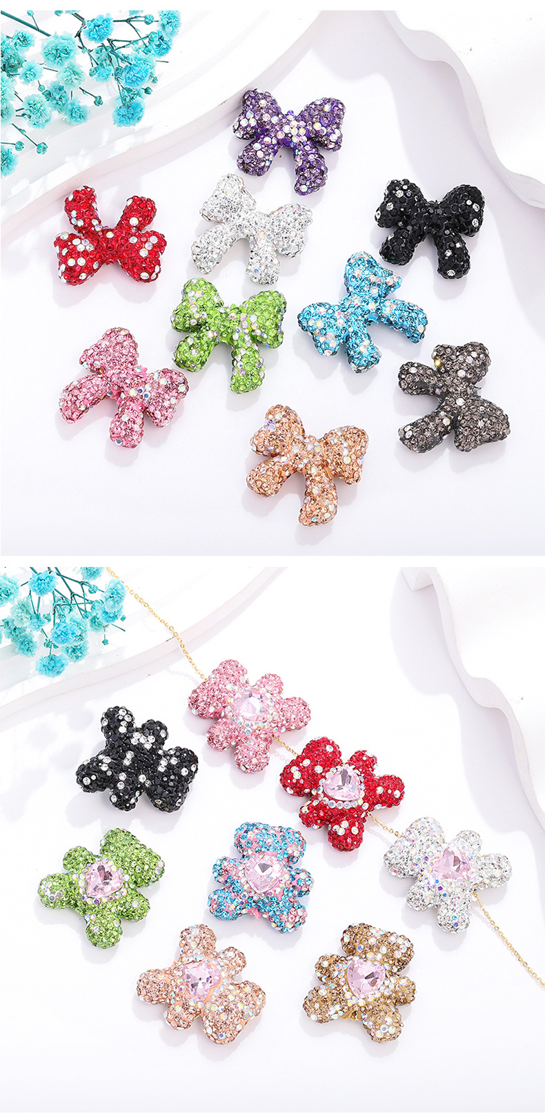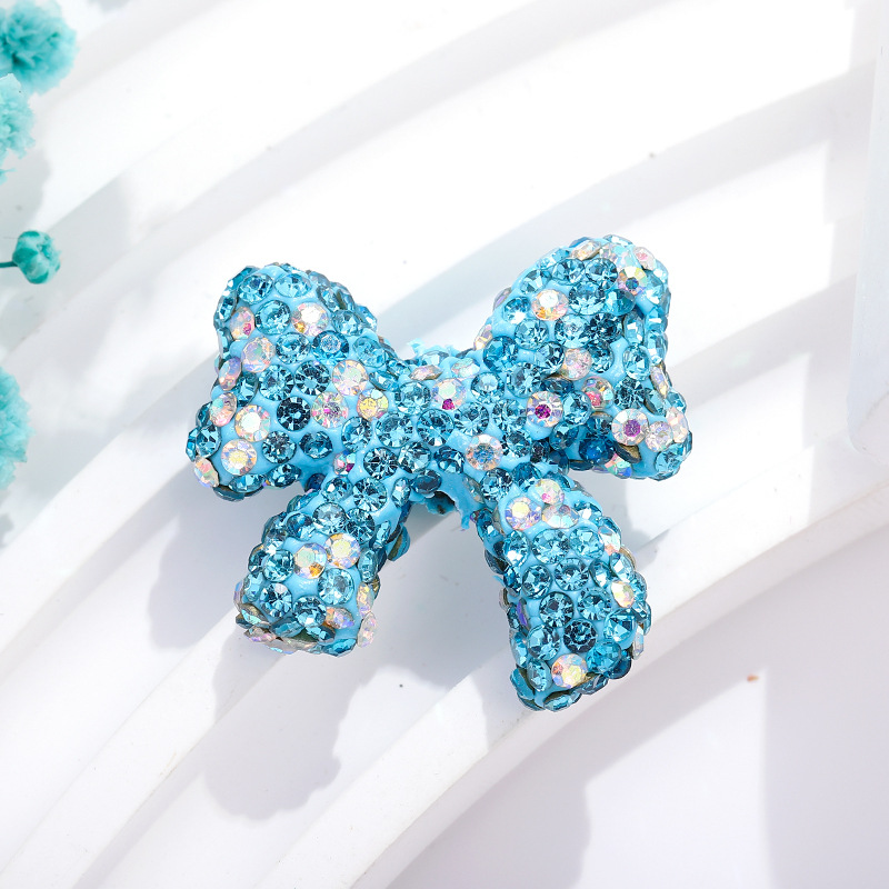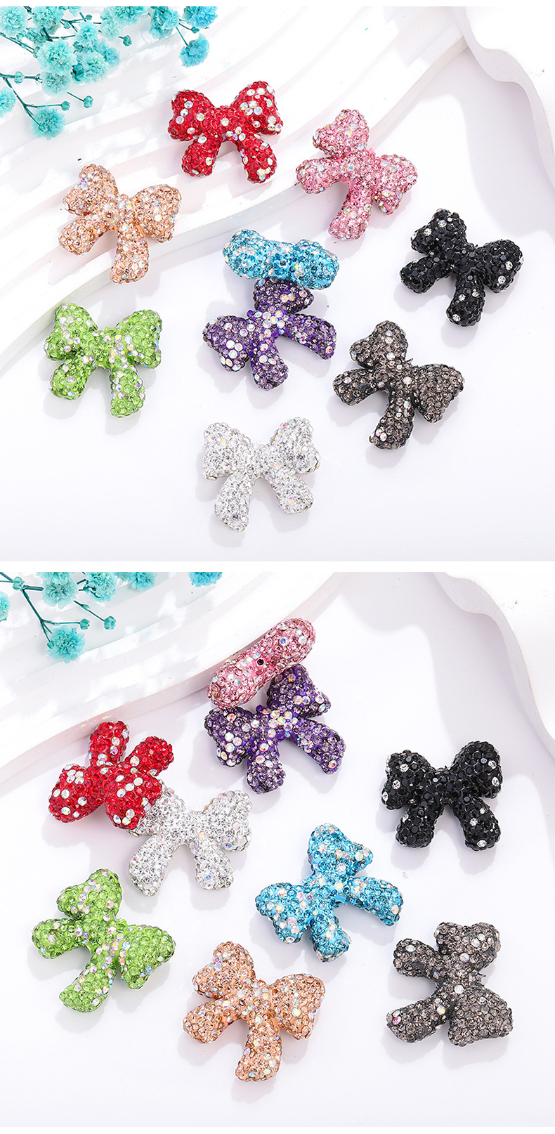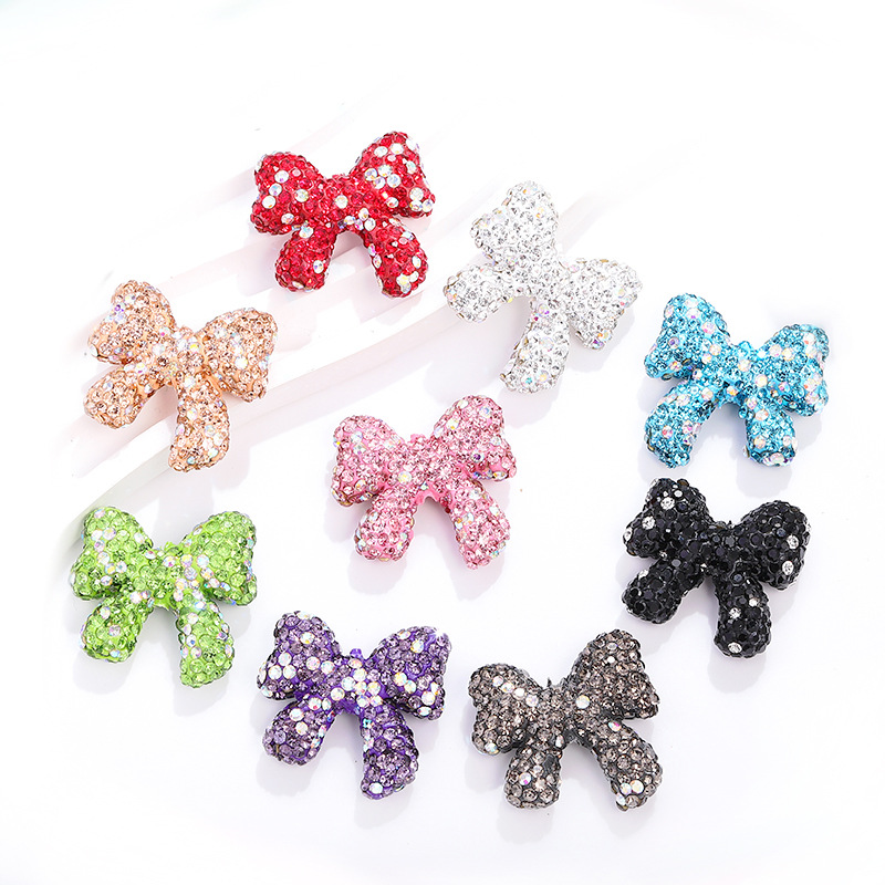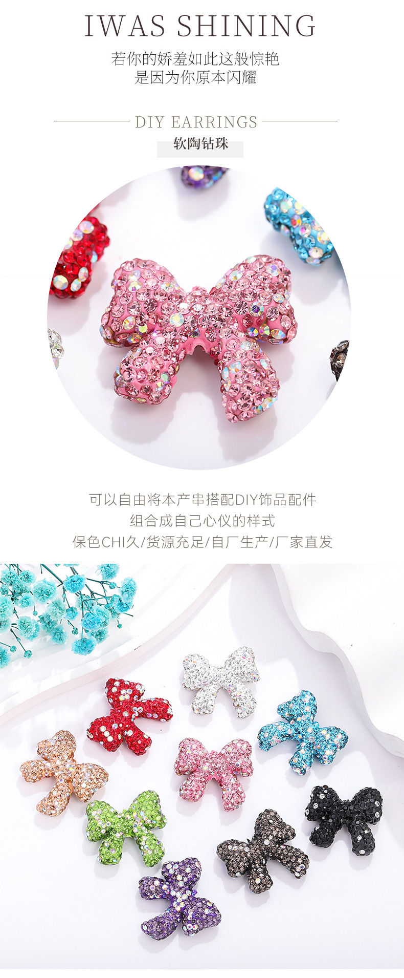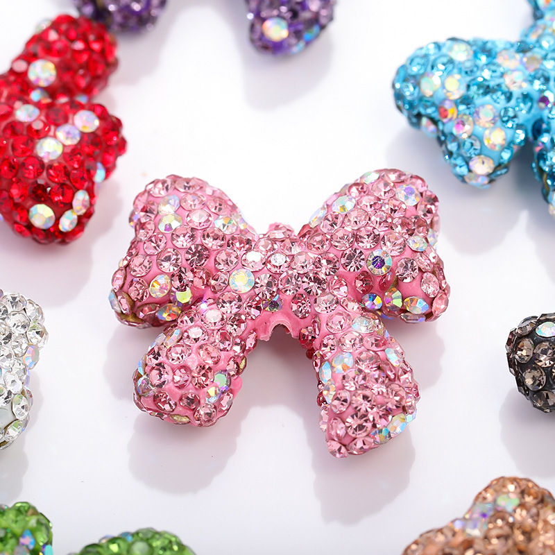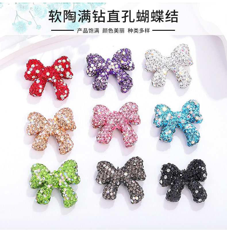 彩色软陶满钻蝴蝶结直孔珠子 diy项链挂串珠手链手机钥匙扣配件