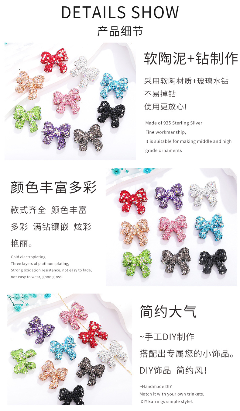 | 彩色软陶满钻蝴蝶结 高*宽28*29mm | USD $0.43 | 99709 piece available |