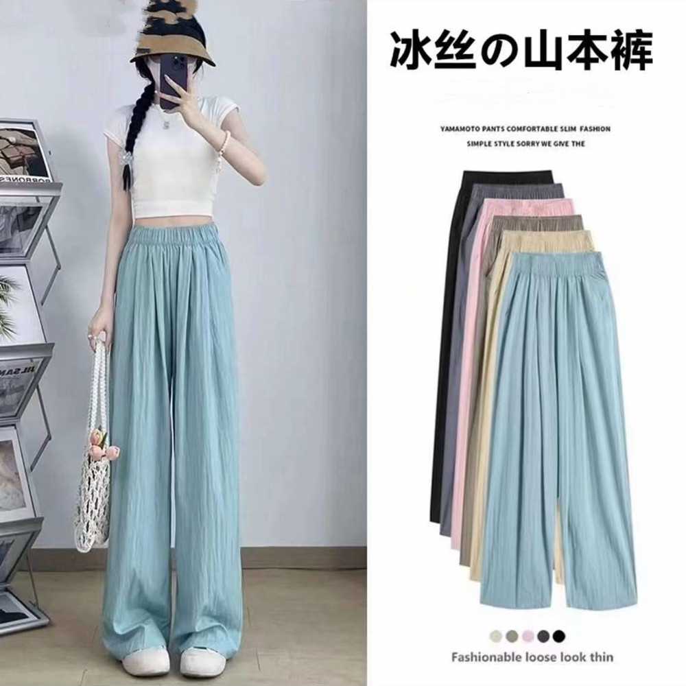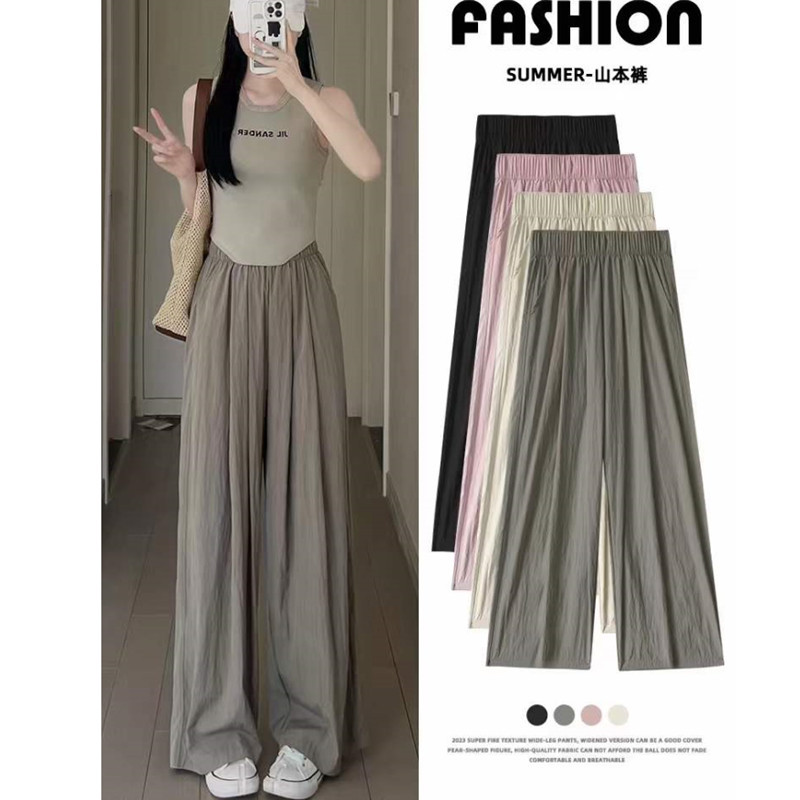 夏季新款褶皱肌理感山本裤阔腿裤女薄款休闲宽松长裤垂感速干裤子