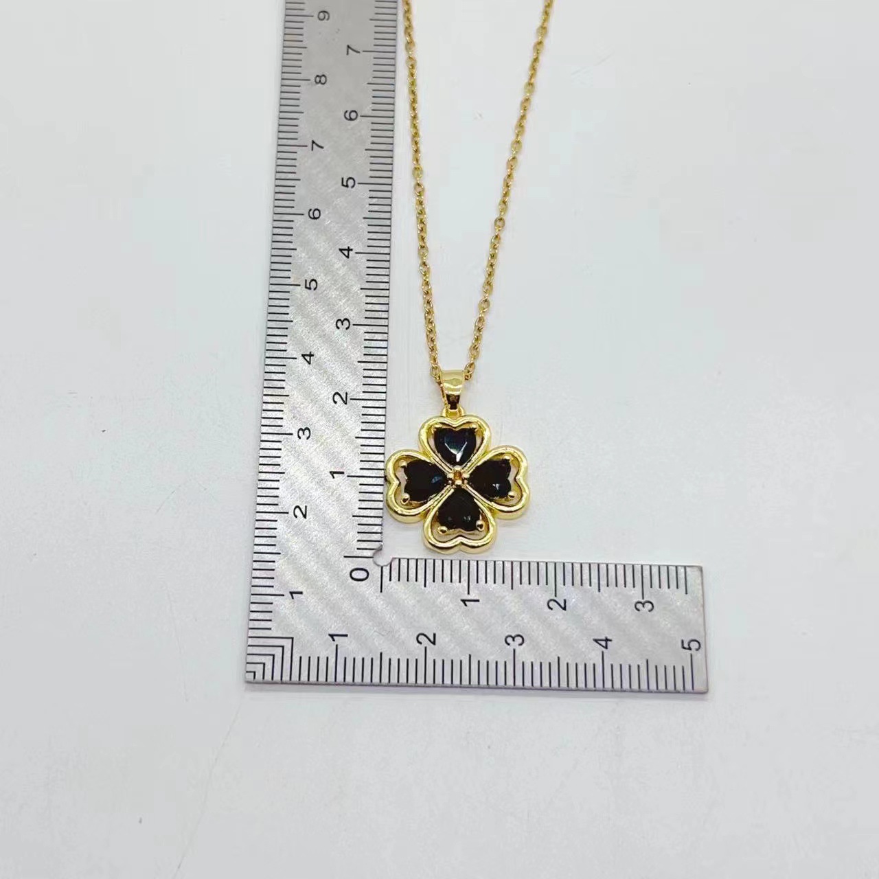 欧美网红新款铜镀真金四叶草小众设计轻奢时尚彩色锆石锁骨链