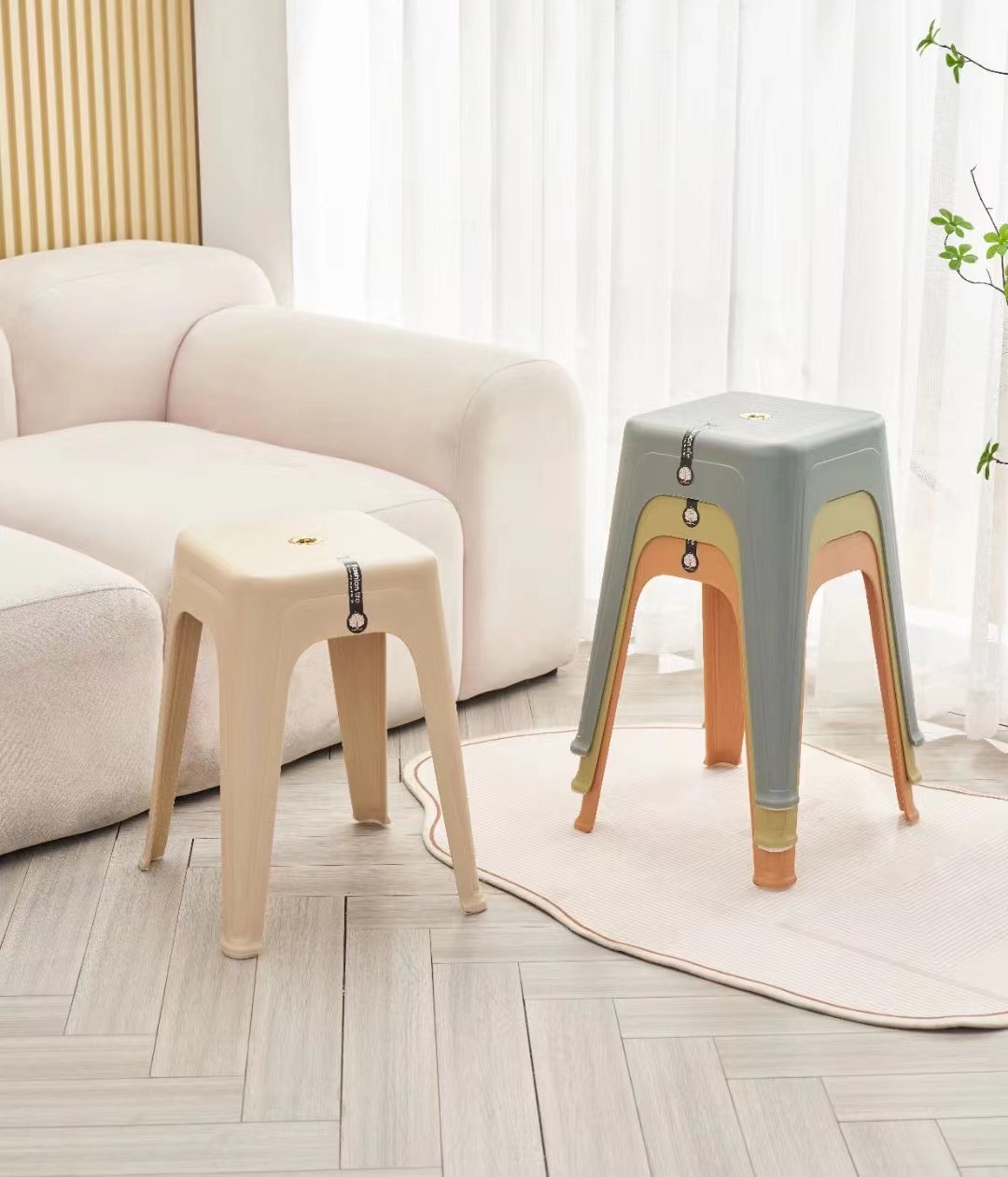 现代简约时尚加厚塑料凳家用方板椅子可叠放舒适塑料凳子