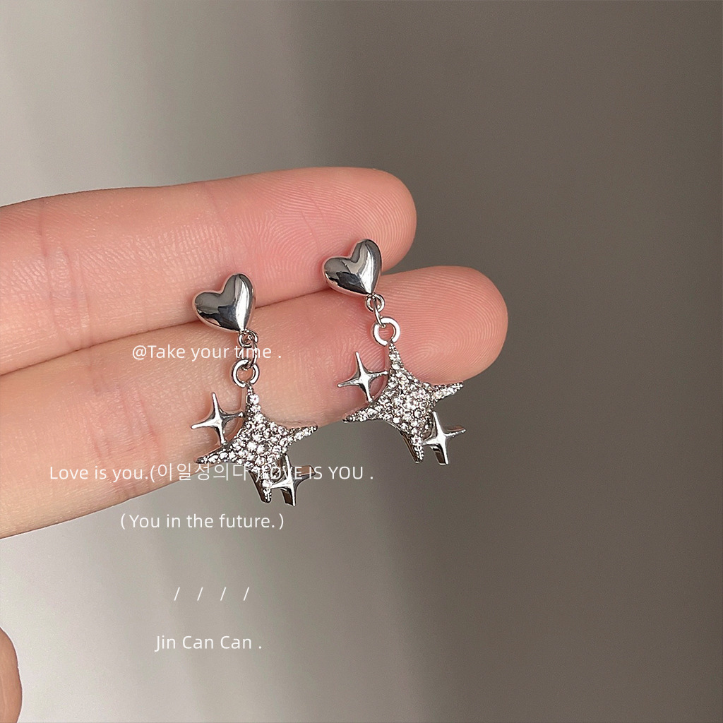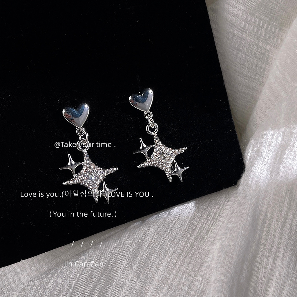 芒星系~925银针甜酷风星星耳钉 个性ins耳饰工厂耳环批发镶钻