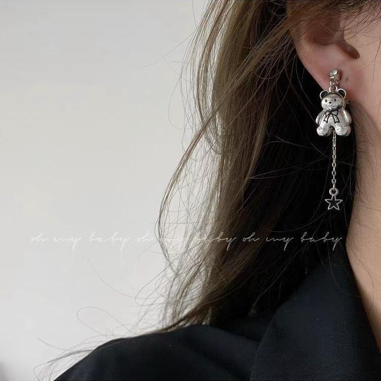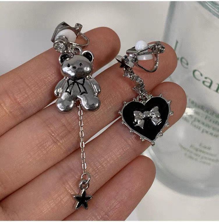 小熊星星吊坠爱心蝴蝶结带钻耳钉无耳洞耳夹女长款不对称甜酷耳饰