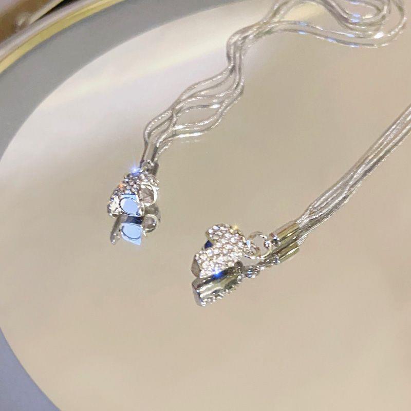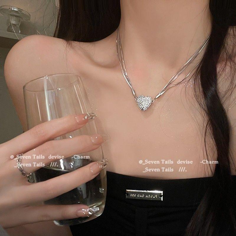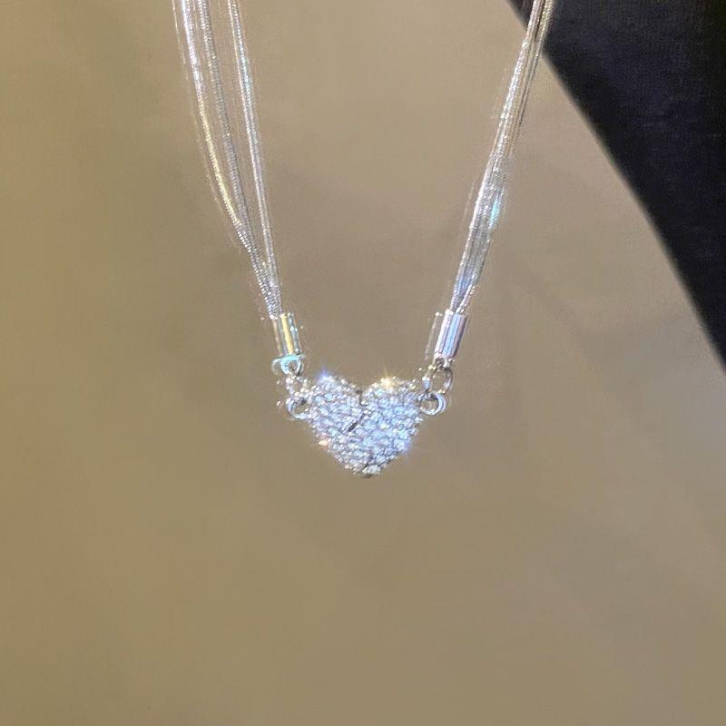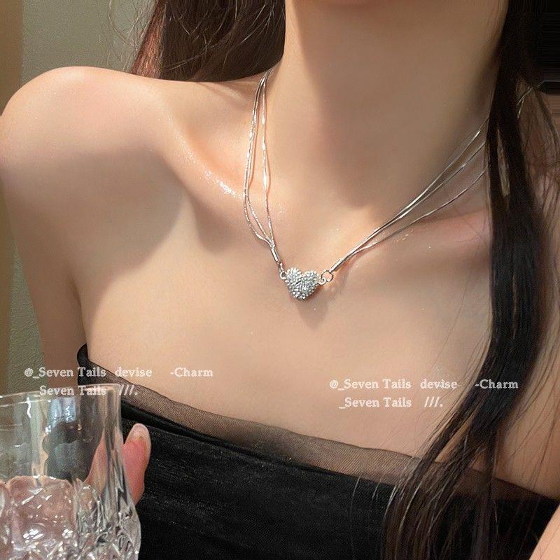 吸引力~磁吸闪钻多层爱心项链女轻奢小众锁骨链2023新款颈链
