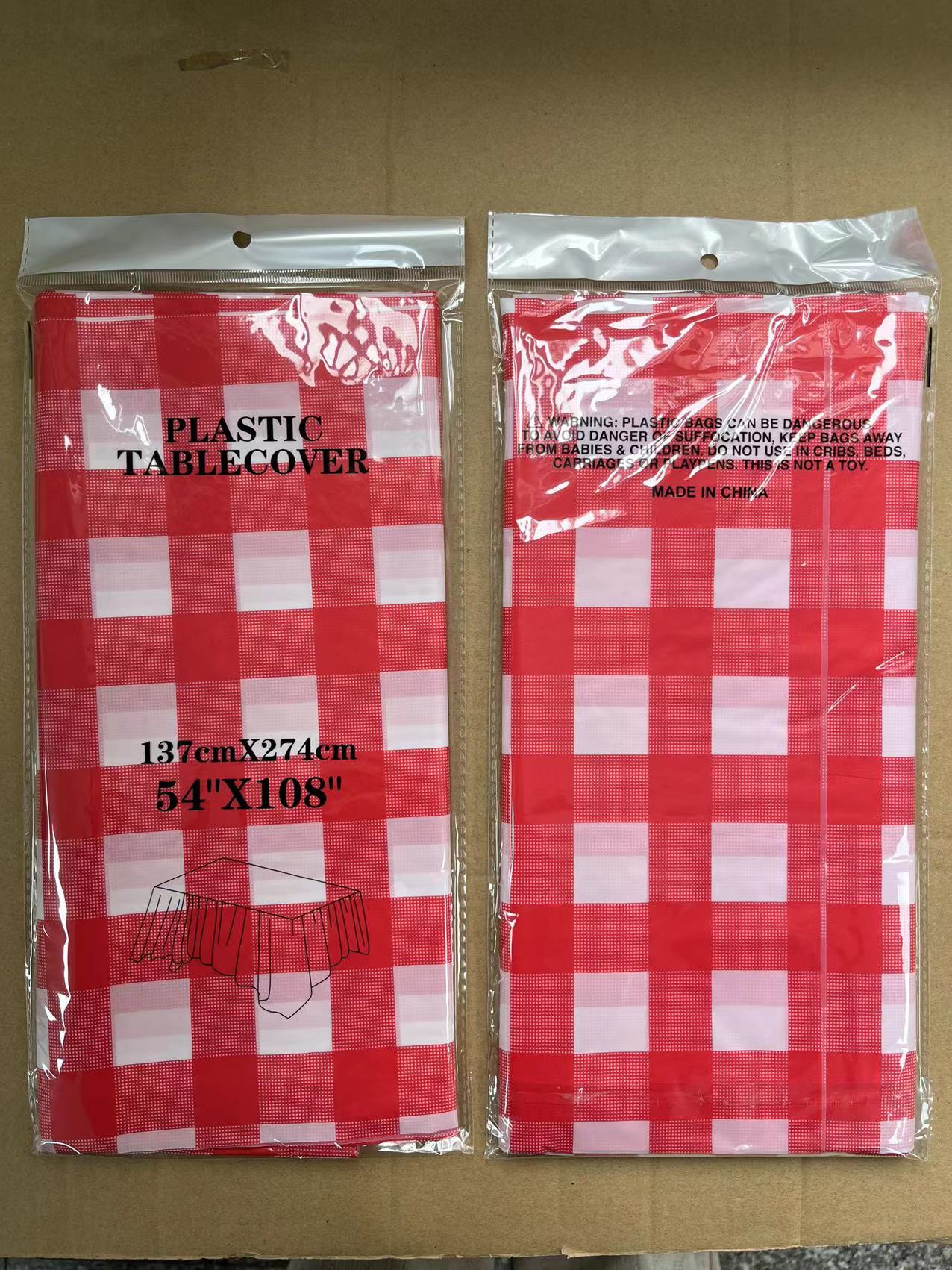 日用现货一次性桌布经典红色格子防水防油污塑料台布节日装饰批发