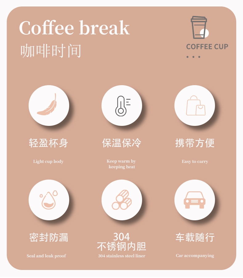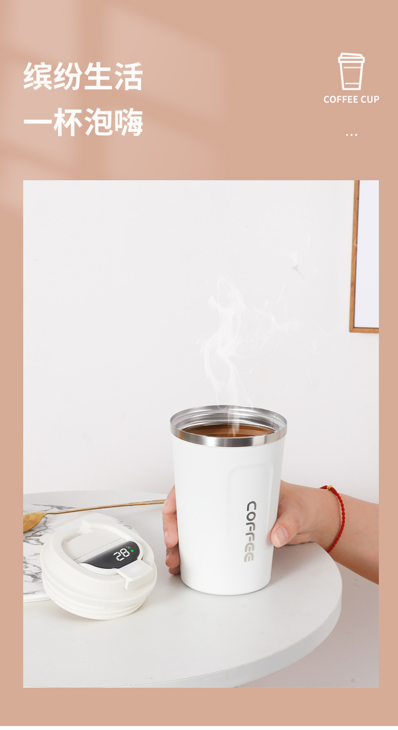 【悦禧厨】渐变色不锈钢咖啡杯智能测温保温杯女户外水杯车载杯子