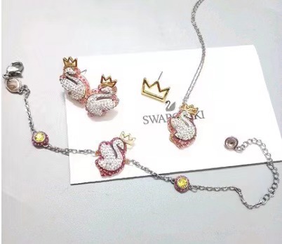 施家对版恶魔之眼项链施华洛灵动天鹅跳动的心锁骨链520礼物