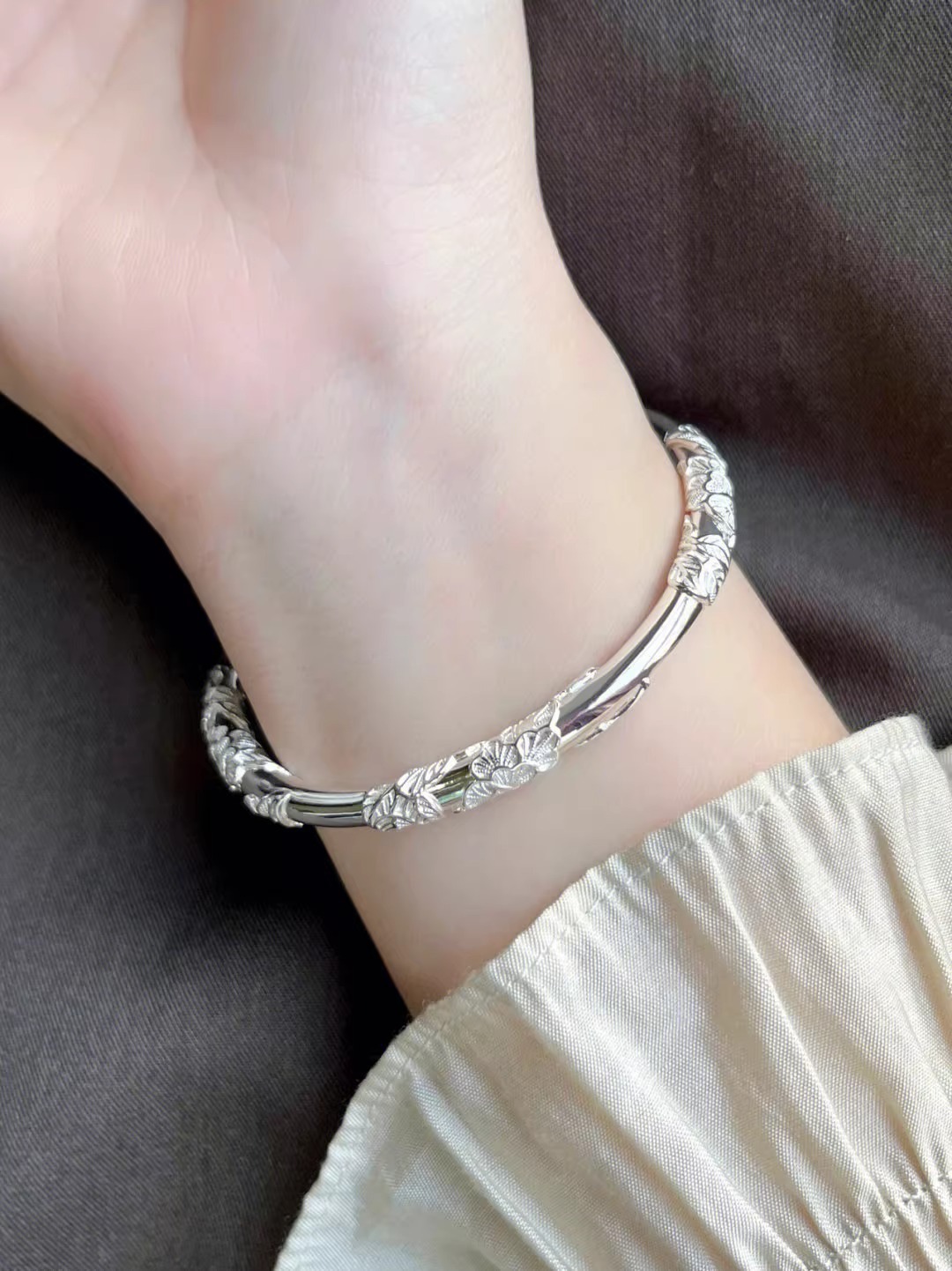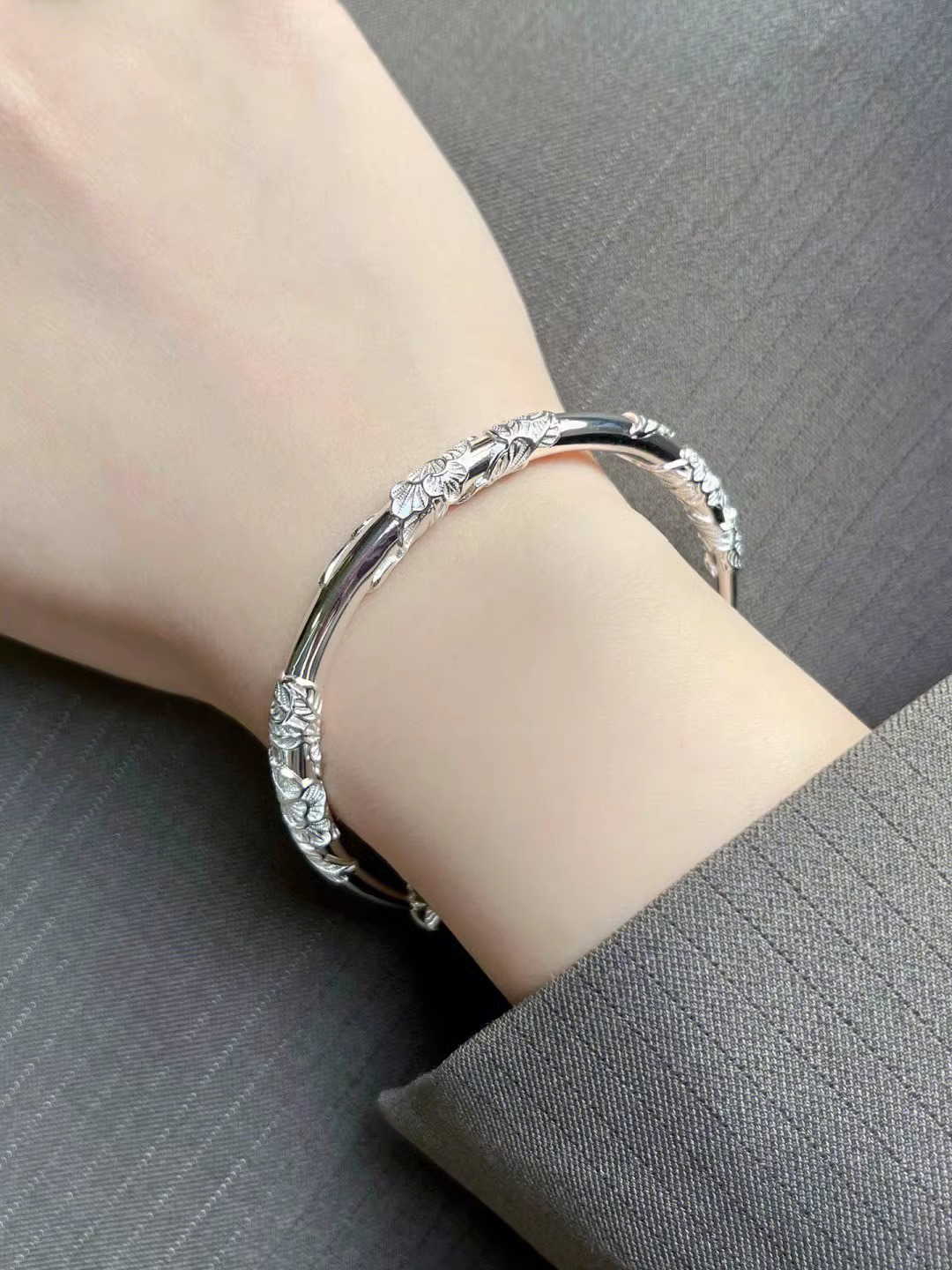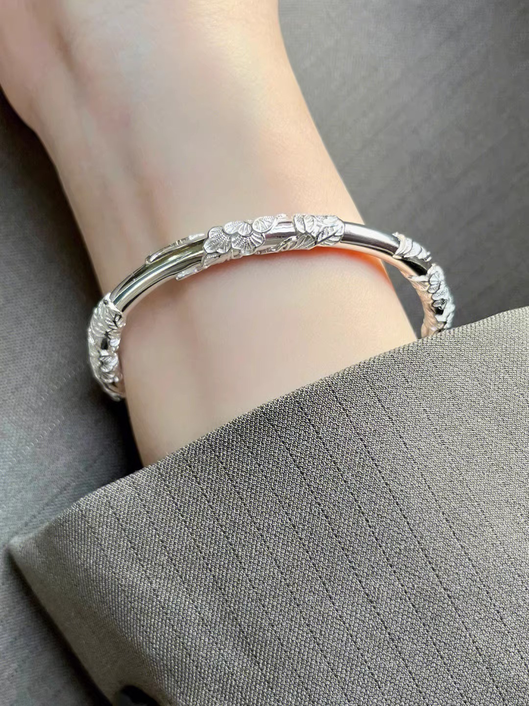 繁花似锦2024新款925银手镯女实心小众高级感女友情人节生日礼物