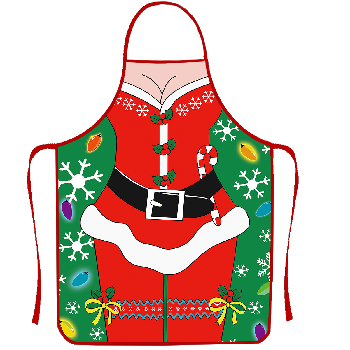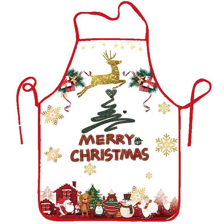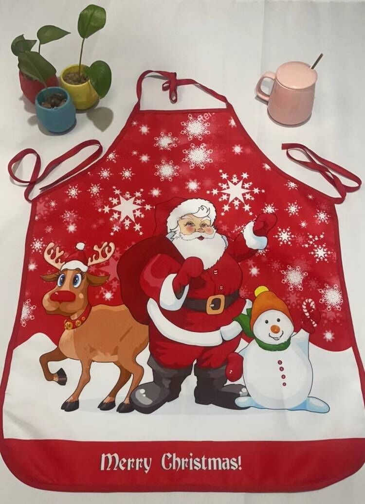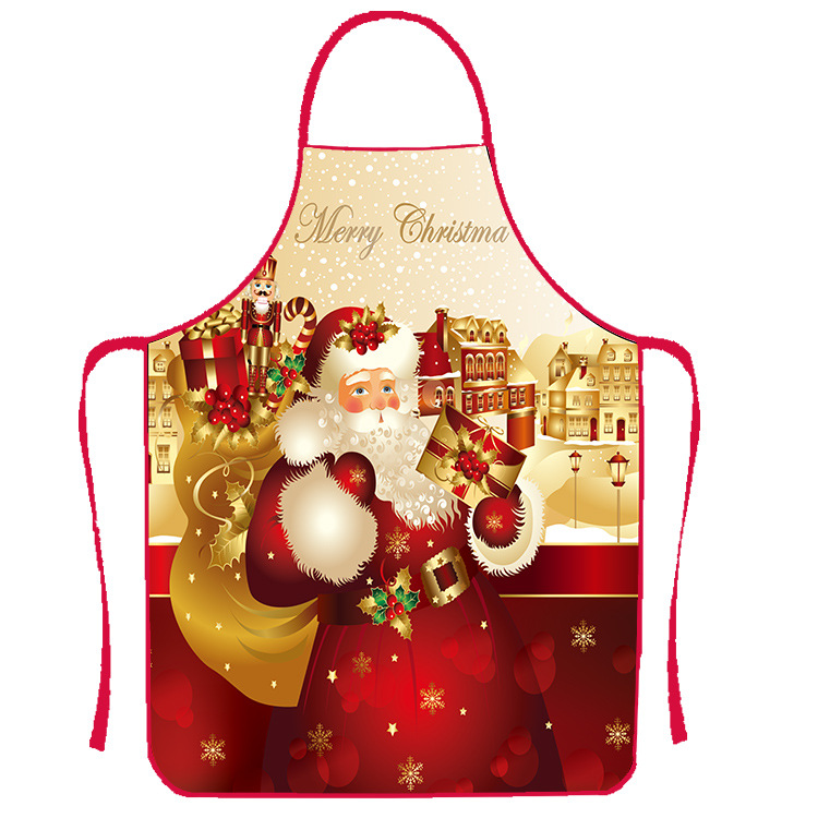 跨境新款圣诞装饰品布艺印花老人圣诞围裙餐厅酒吧派对气氛装饰品