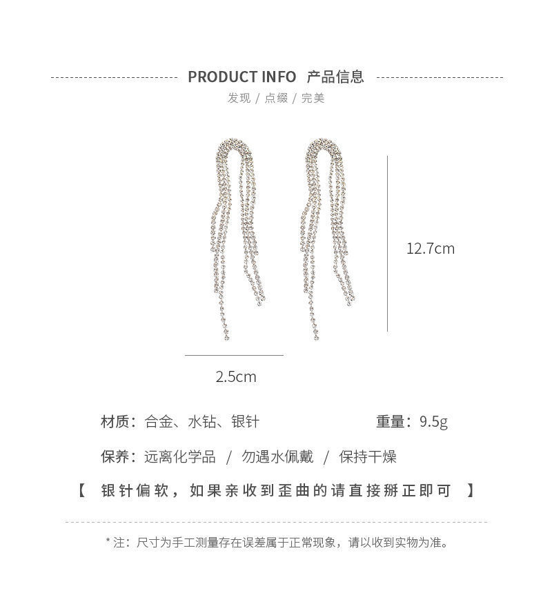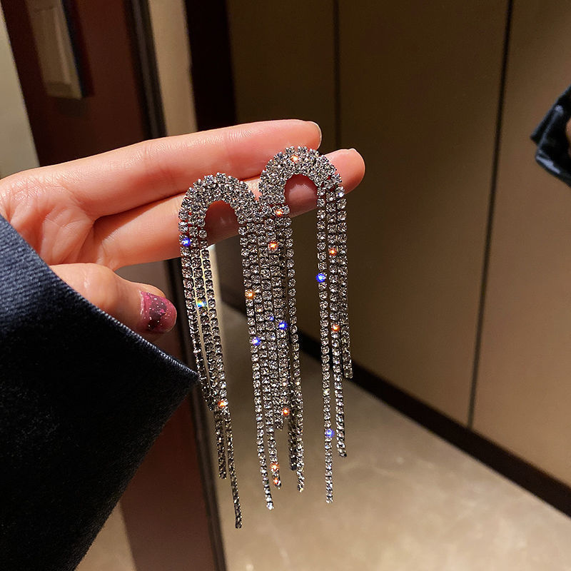 银针夸张满钻流苏耳环女长款耳钉韩国东大门网红气质耳坠耳饰