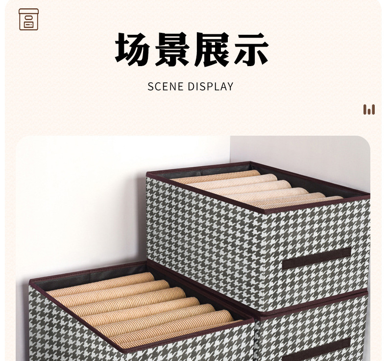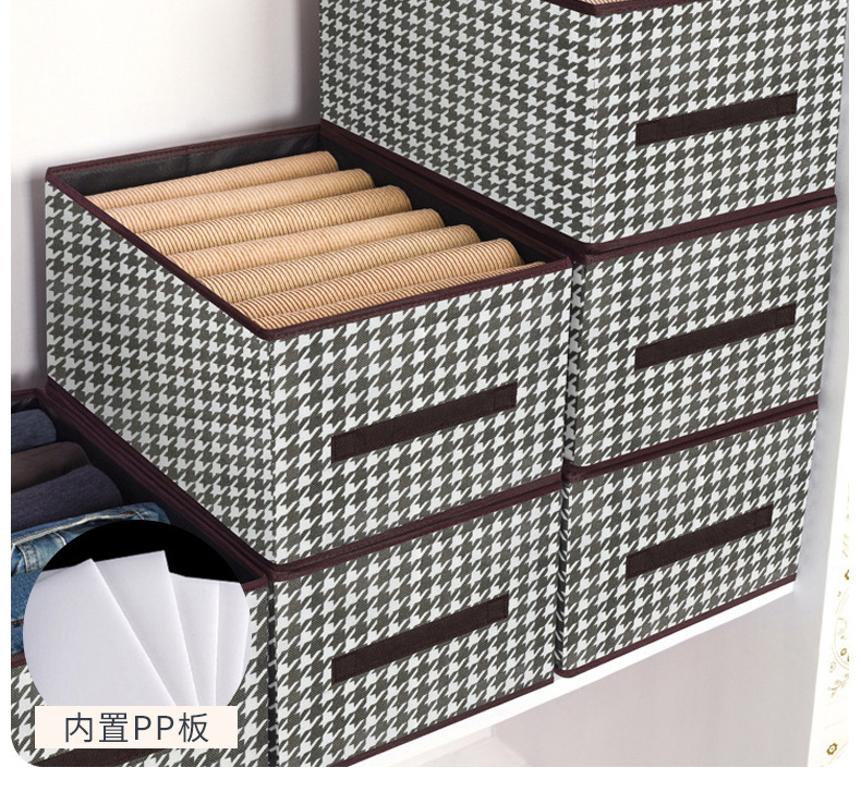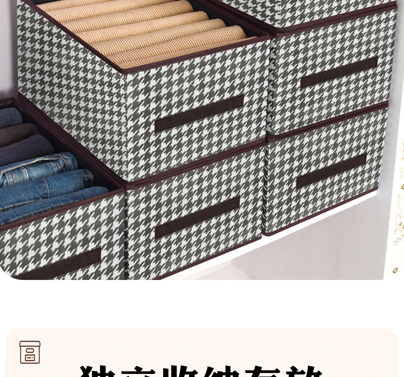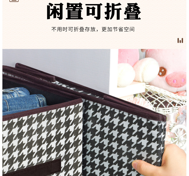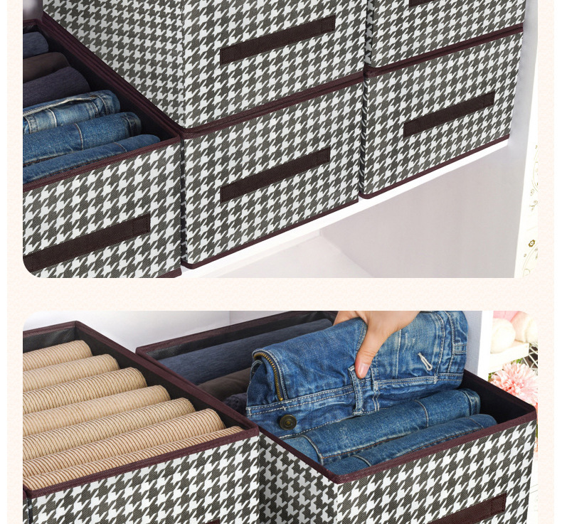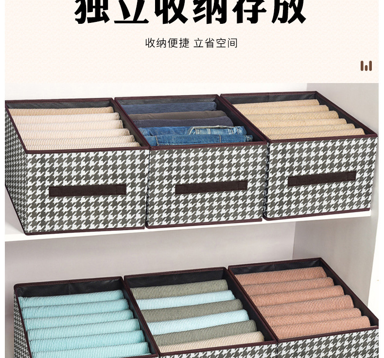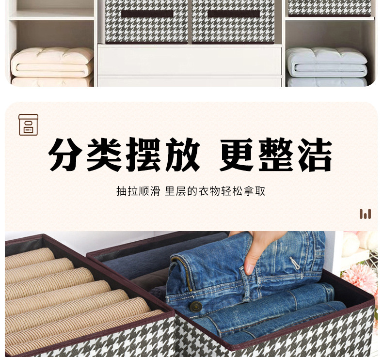 创意家居千鸟格牛仔裤收纳盒收纳箱多功能衣柜可折叠衣服整理盒