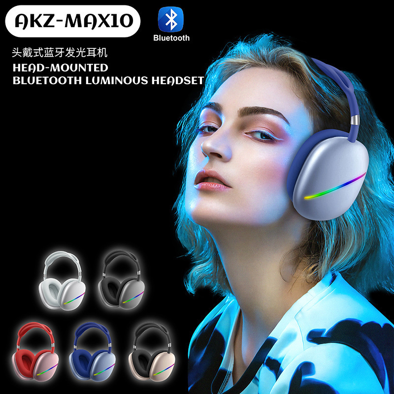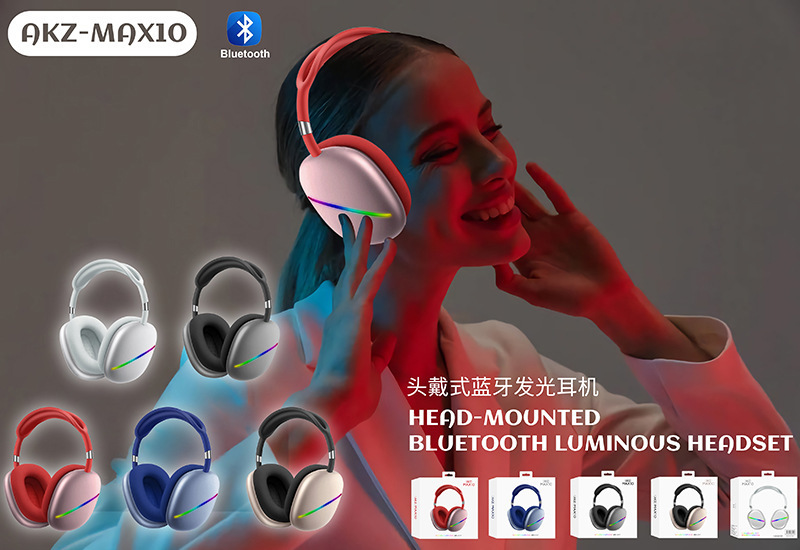 AKZ-MAX10新款头戴式蓝牙耳机 发光FM插卡立体声运动手机无线耳麦