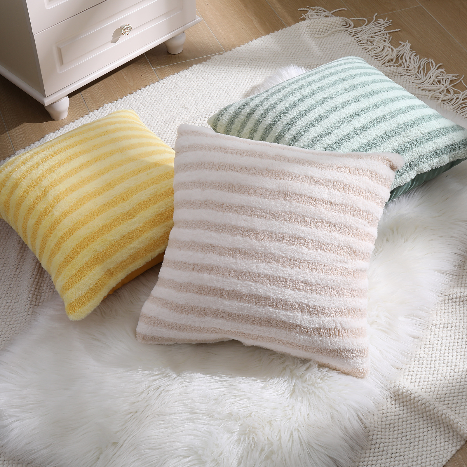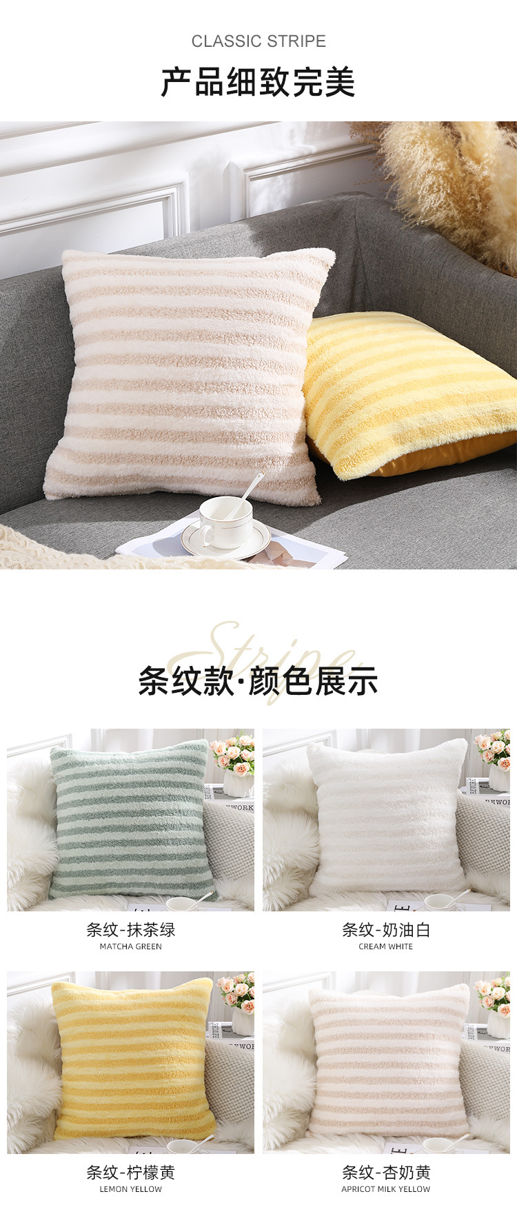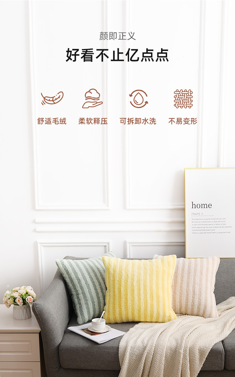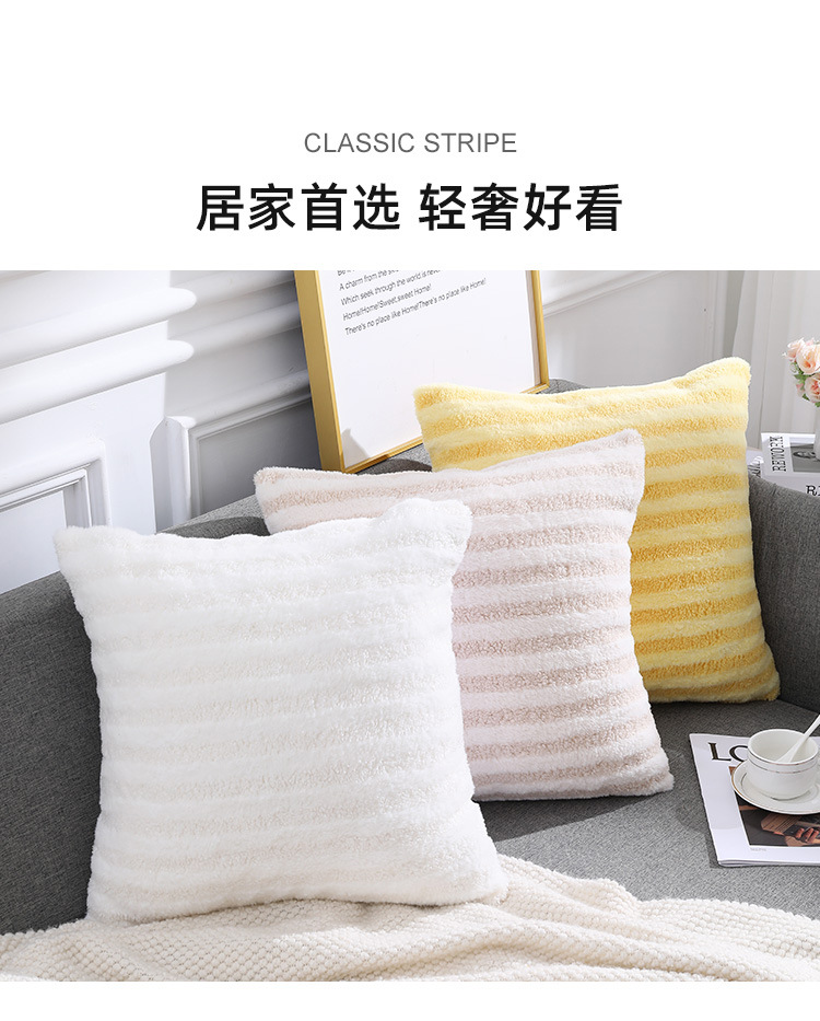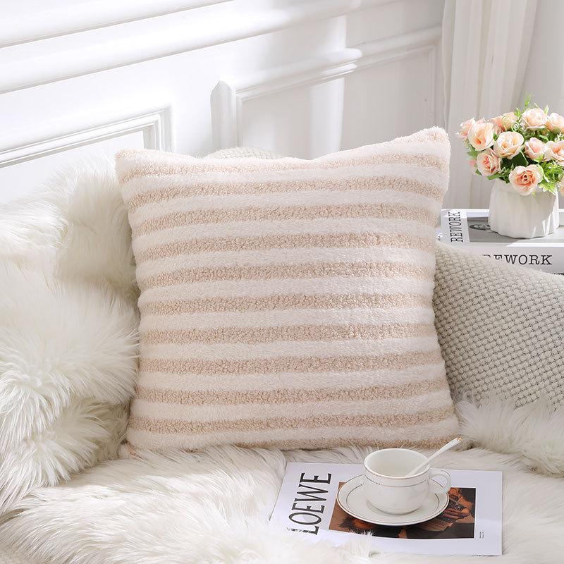 泰迪绒条纹简约风抱枕套家用客厅沙发抱枕办公室护腰毛绒靠枕靠垫