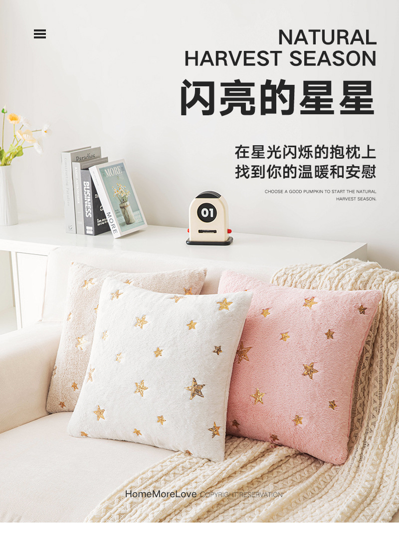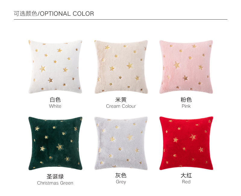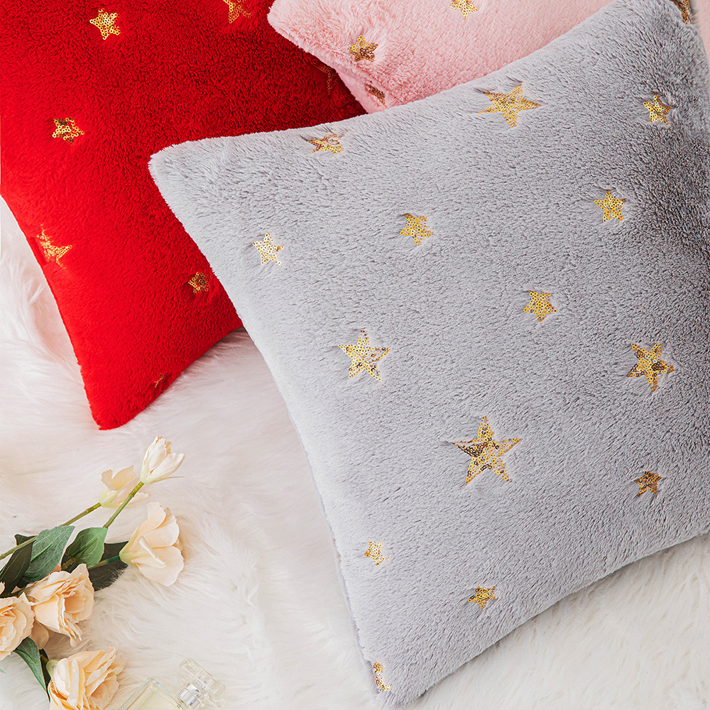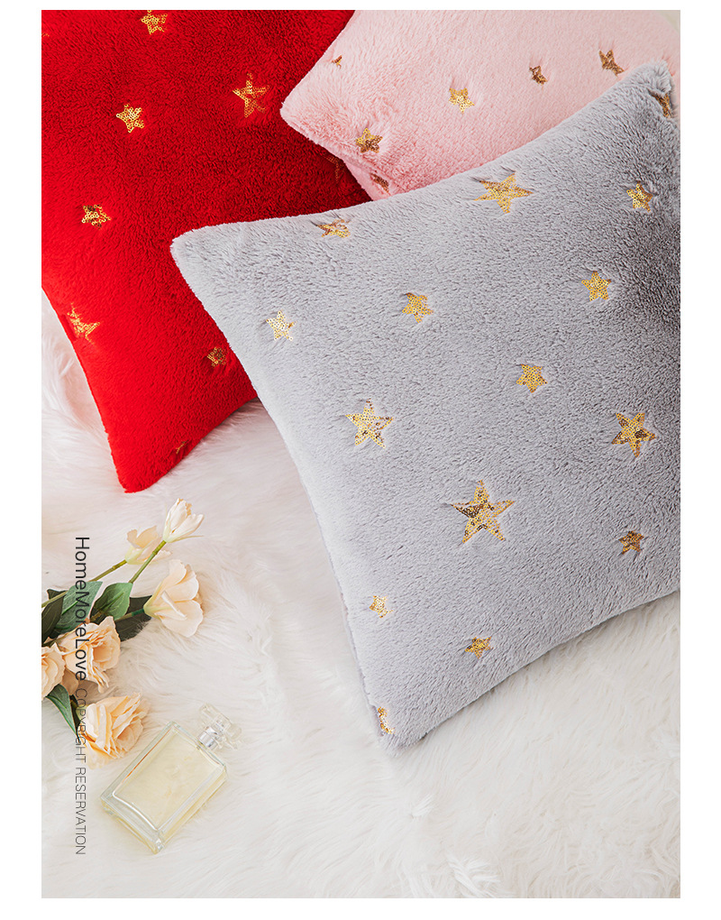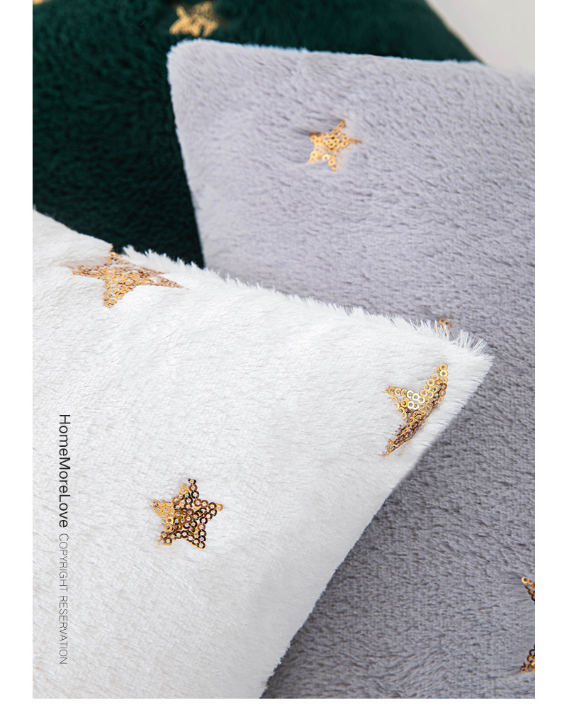 圣诞节毛绒星星亮片抱枕套情人节纯色客厅沙发靠枕床头落地窗靠垫