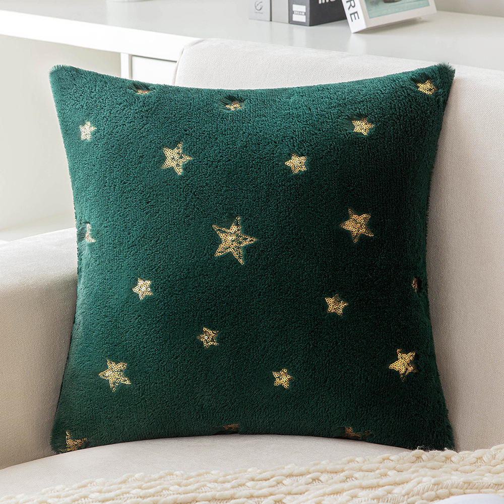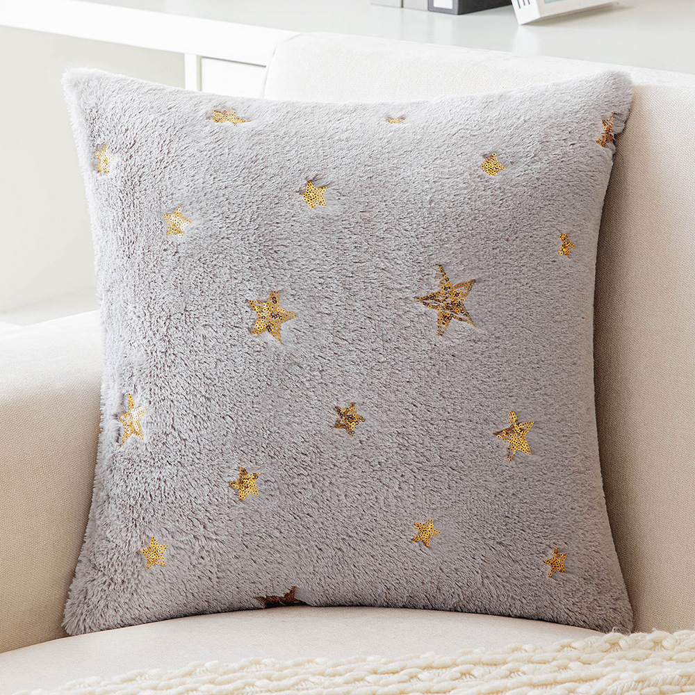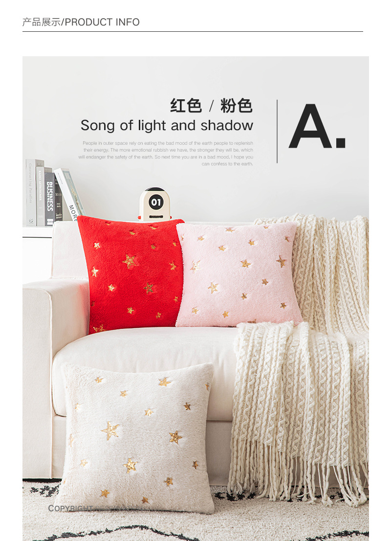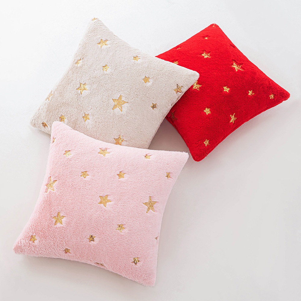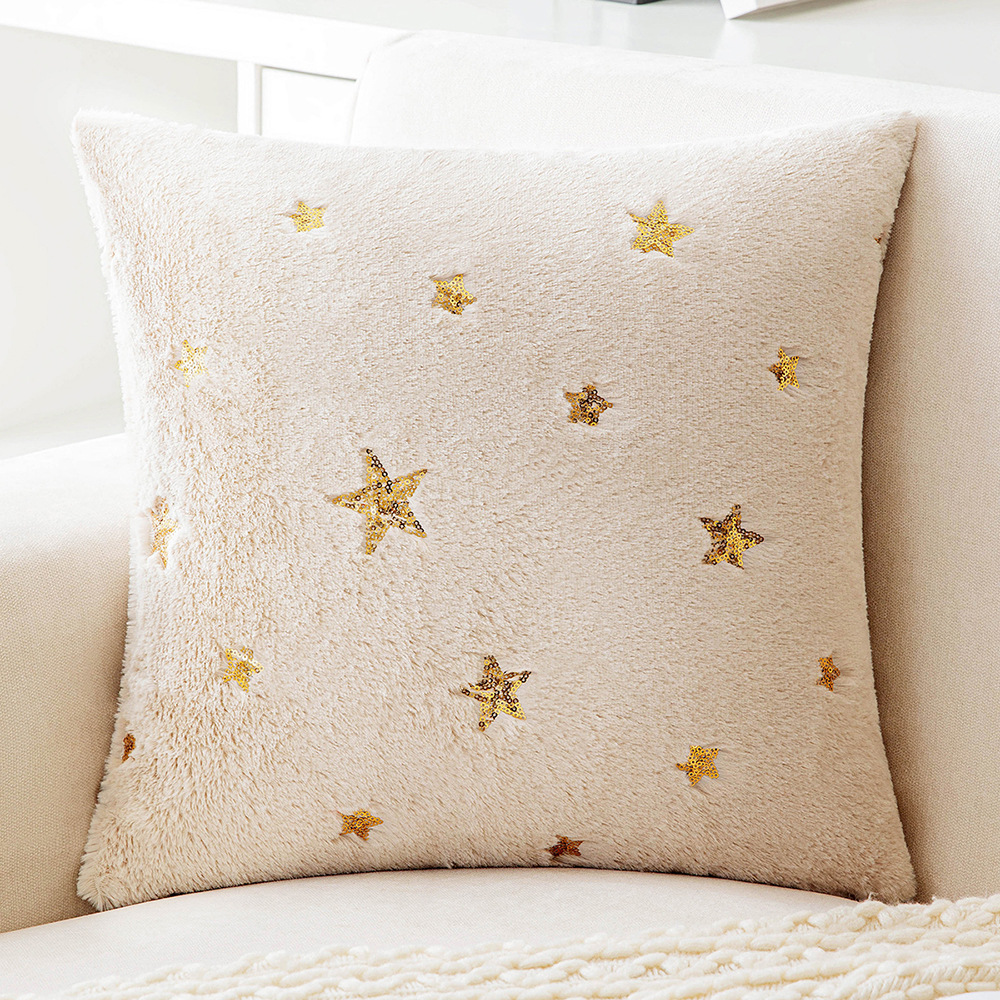 圣诞节毛绒星星亮片抱枕套情人节纯色客厅沙发靠枕床头落地窗靠垫