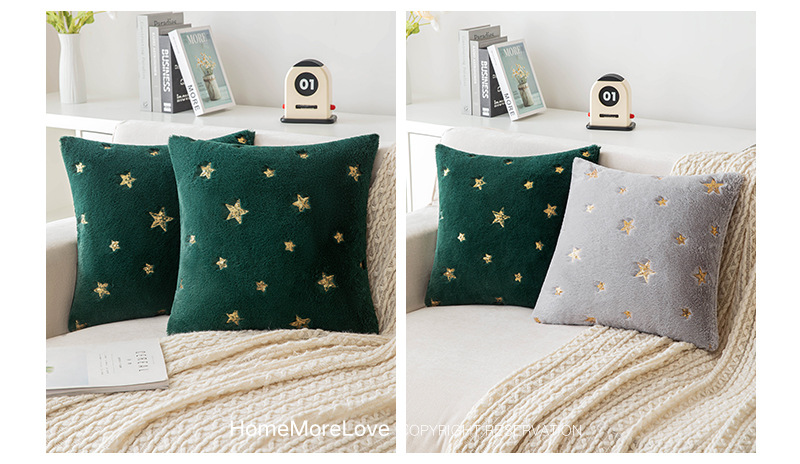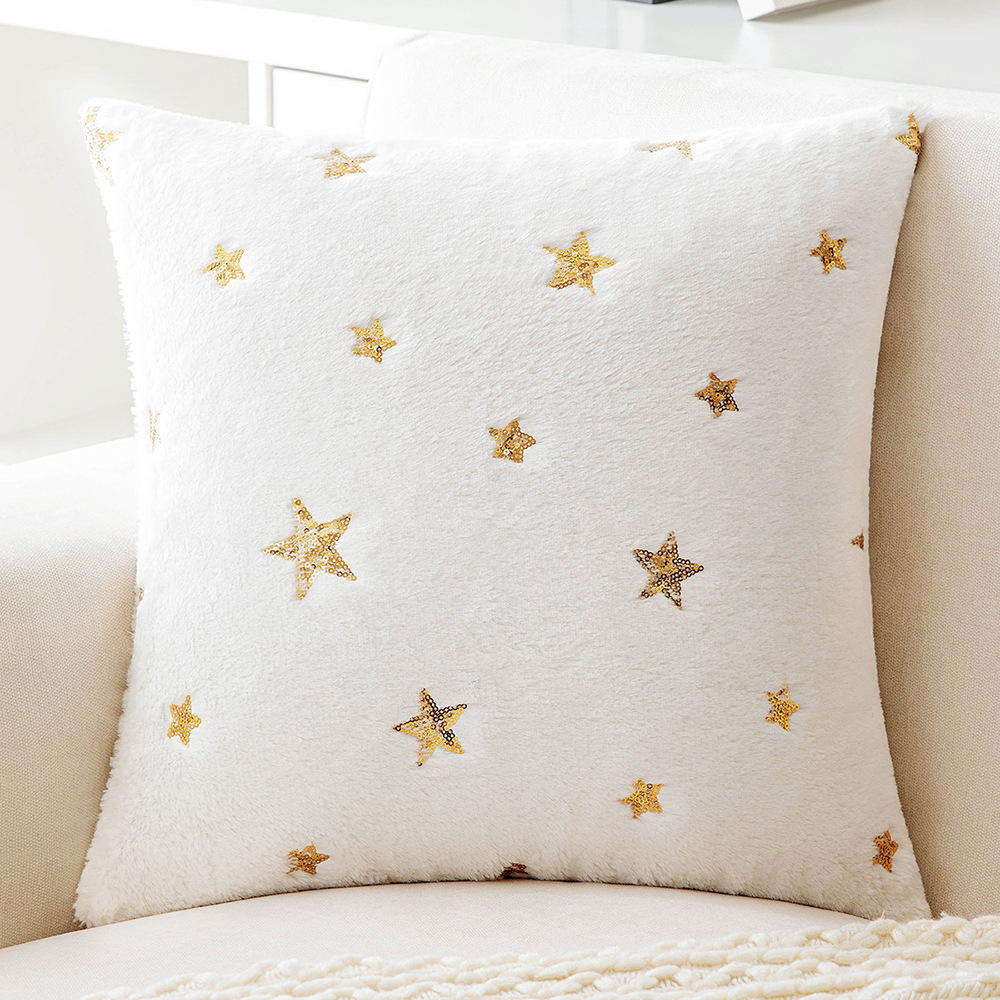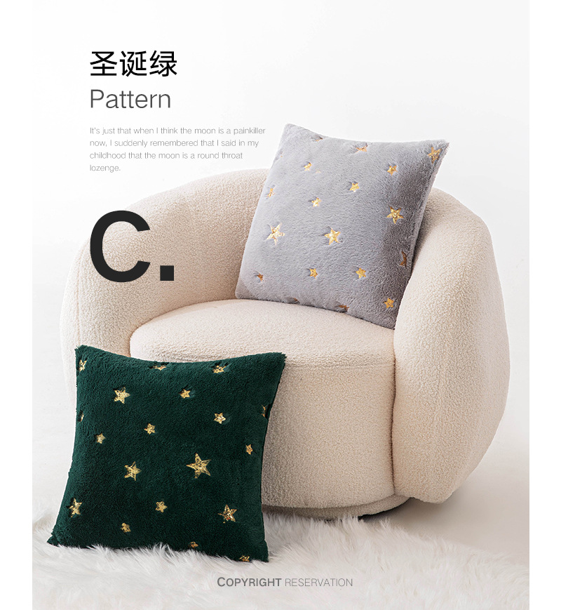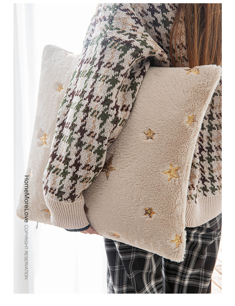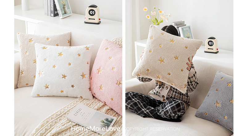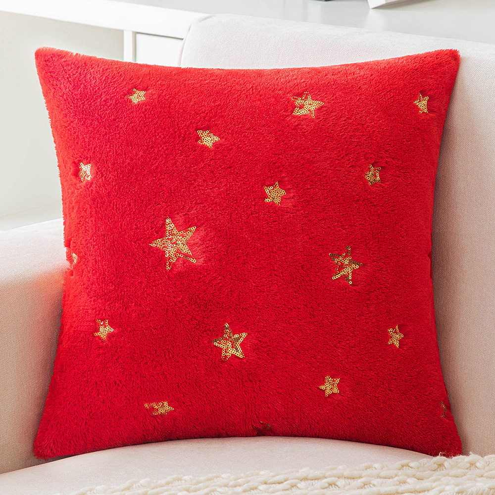 圣诞节毛绒星星亮片抱枕套情人节纯色客厅沙发靠枕床头落地窗靠垫