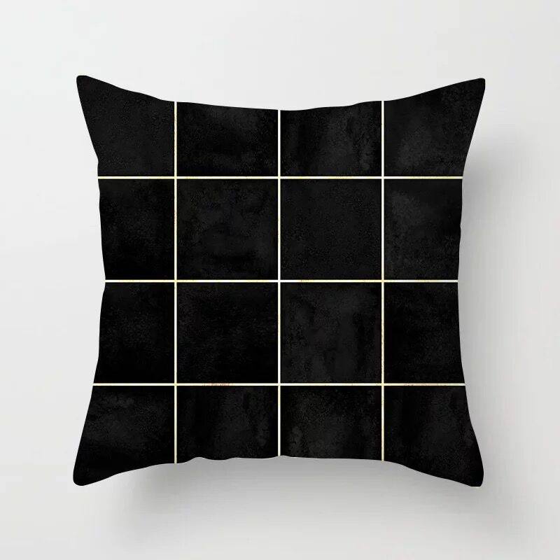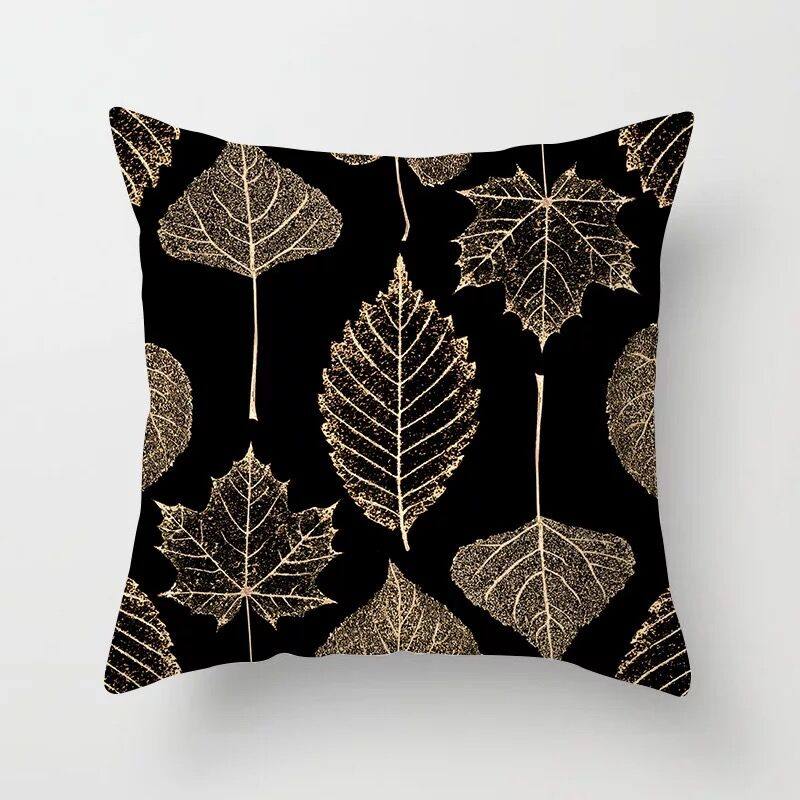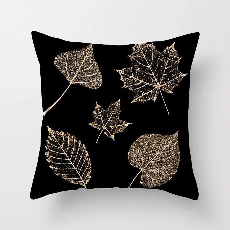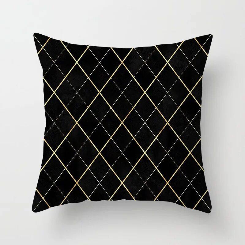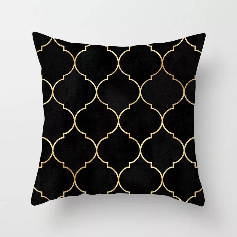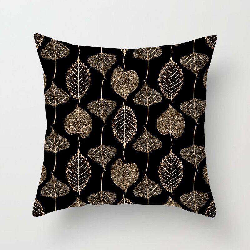 时尚黑金色系花纹抱枕套 舒适超柔短毛绒靠枕套 TQ