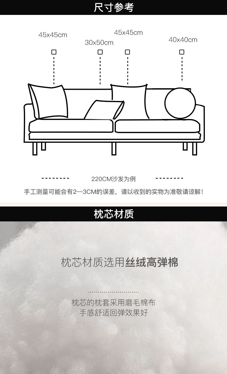 | 45x45cm枕套+枕芯 | USD $3.41 | 9999 piece available |