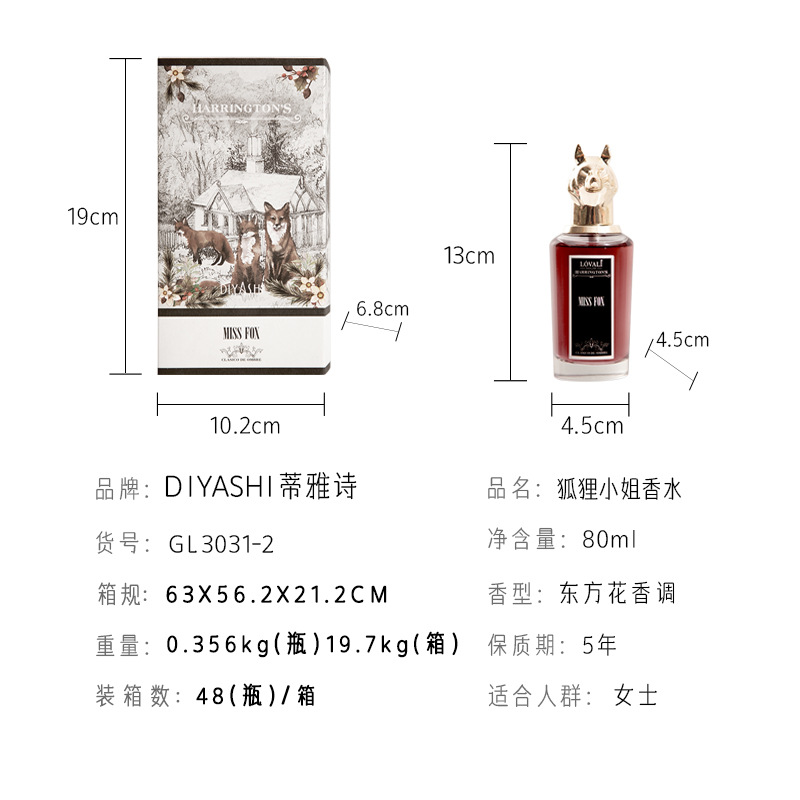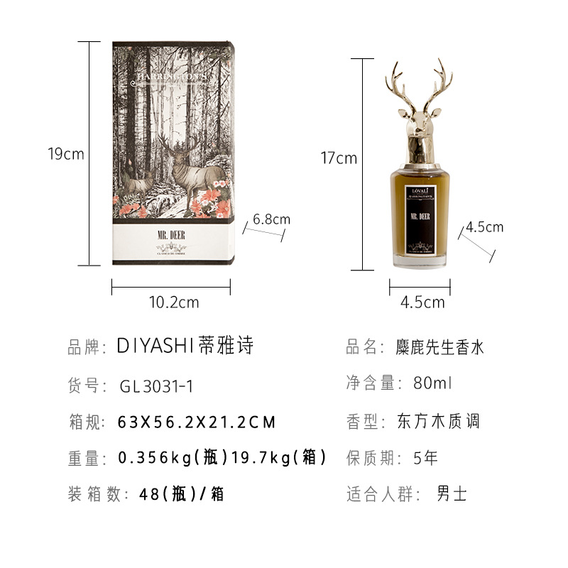 抖音女士兽首香水礼盒装代发狐狸麋鹿头男士香水批发网红香水同款