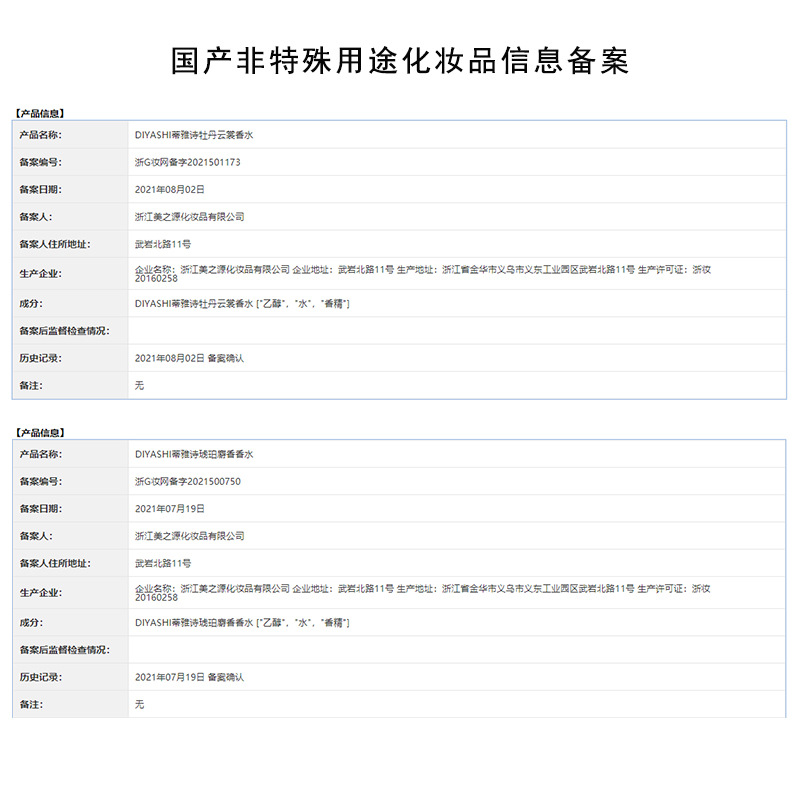 此产品6个香味已完成备案,下图为部分备案信息: