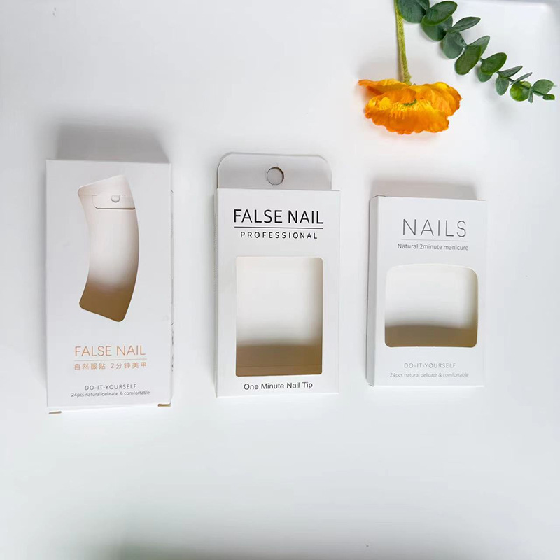 穿戴甲美甲首饰通用白色包装盒开窗透明白卡纸挂耳盒子现货批发