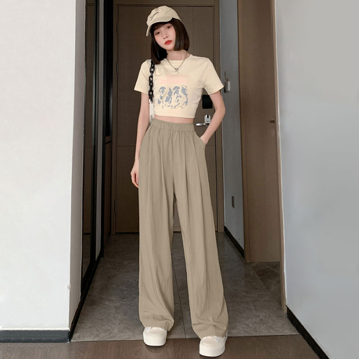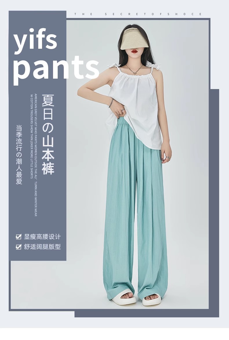 杏色冰丝阔腿裤女夏季薄款高腰垂感休闲日系慵懒风直筒棉麻山本裤