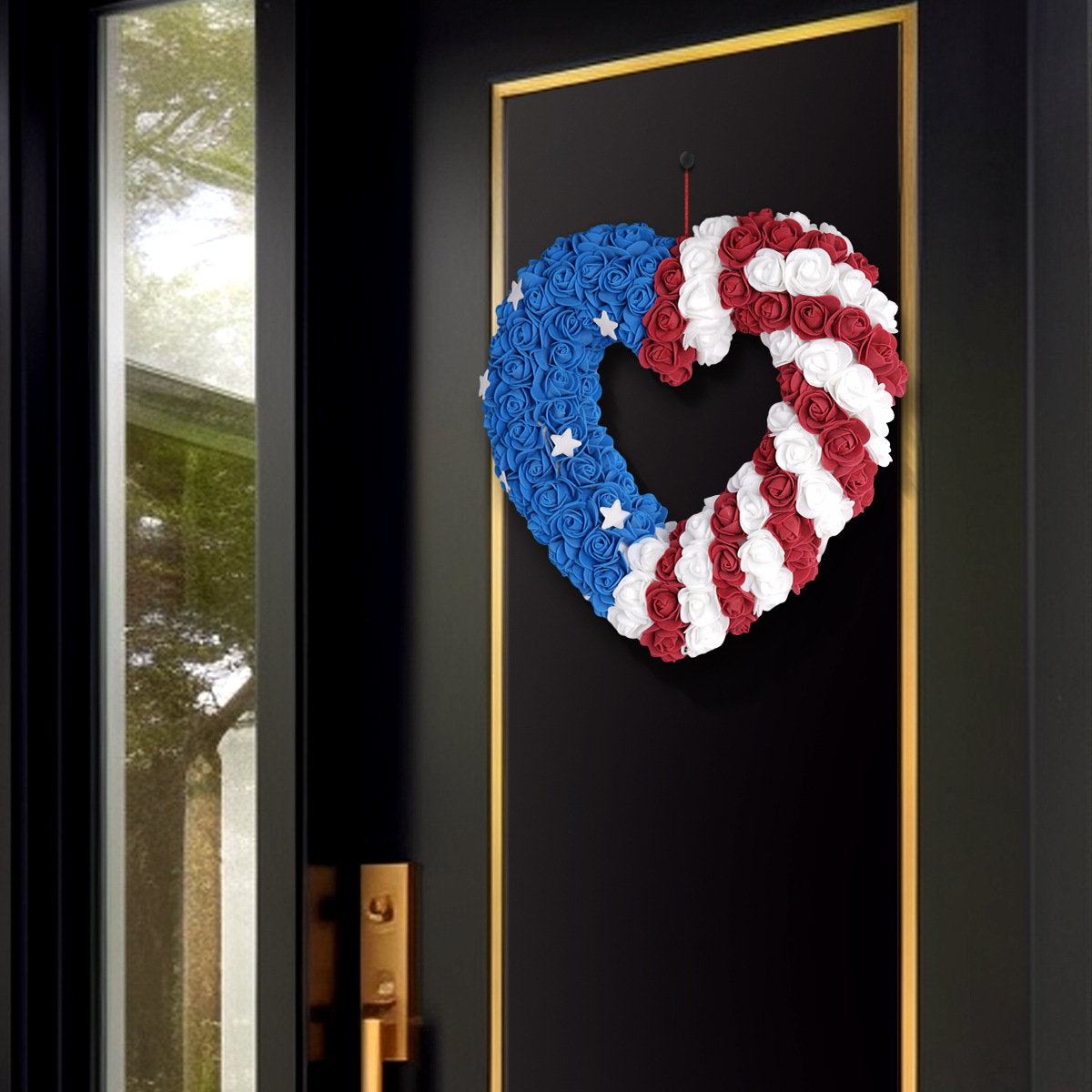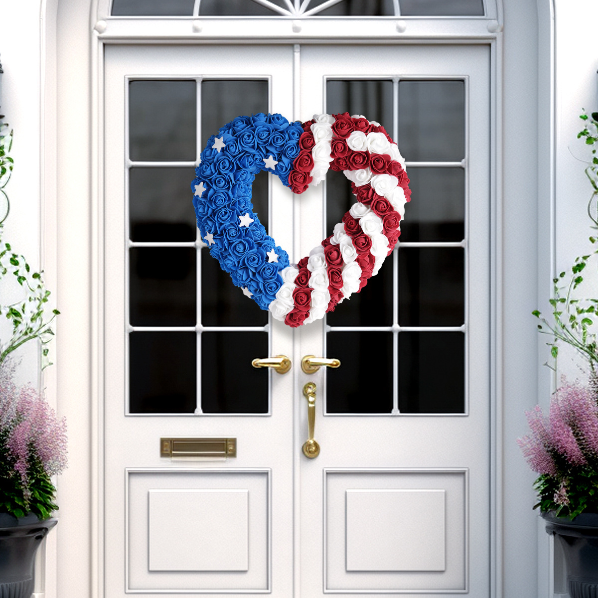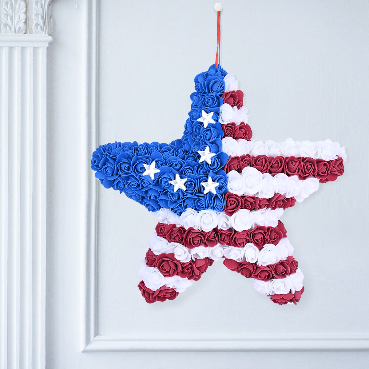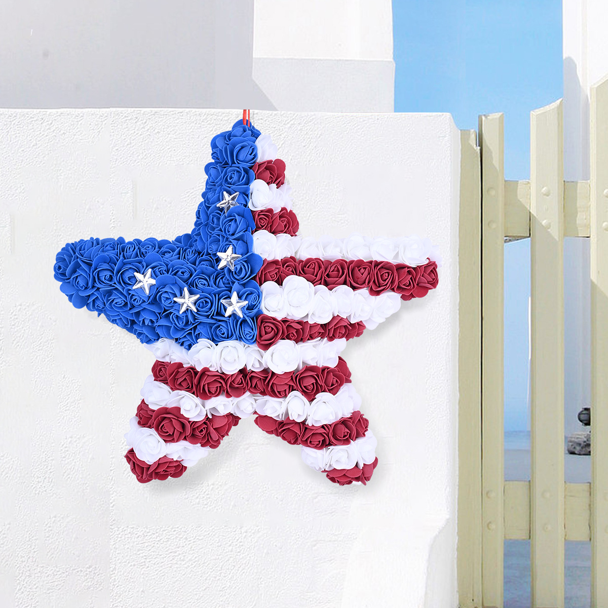 亚马逊爆款独立日花环 门挂件节日装饰品泡沫花 美国独立日热销款