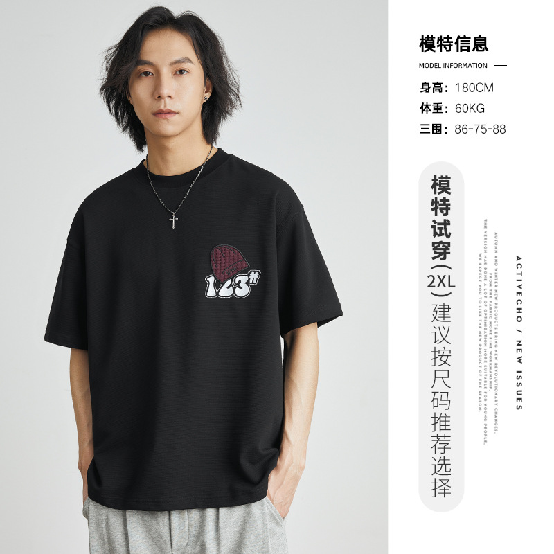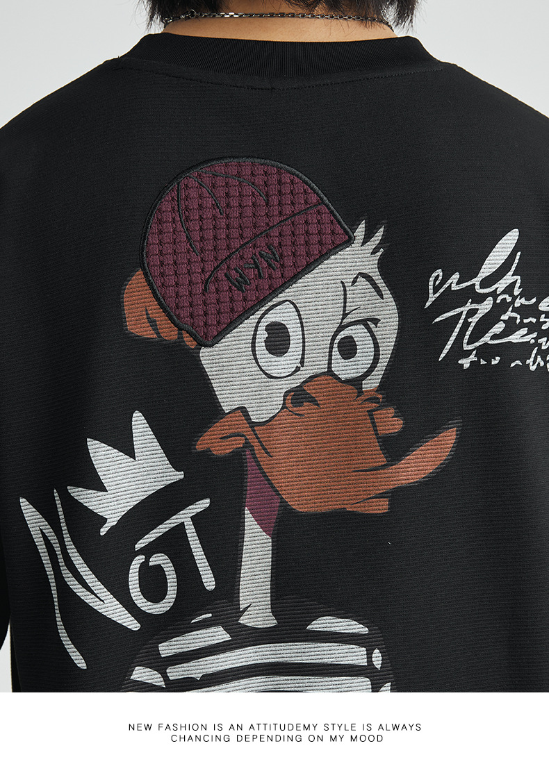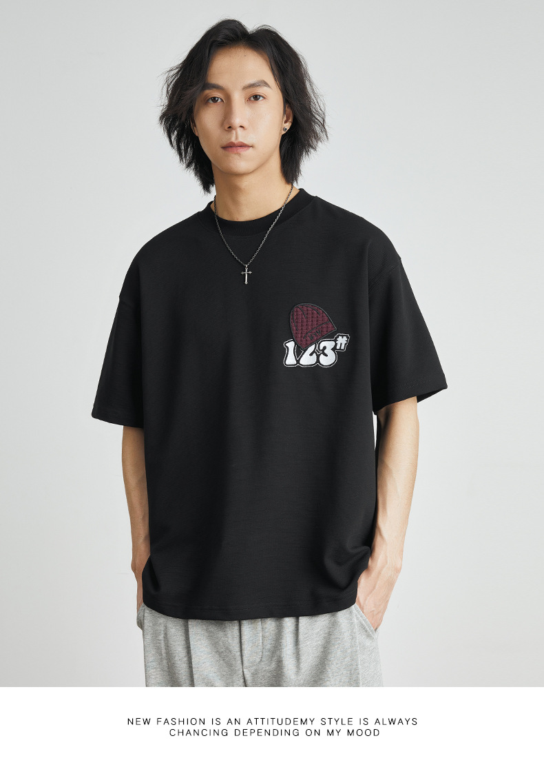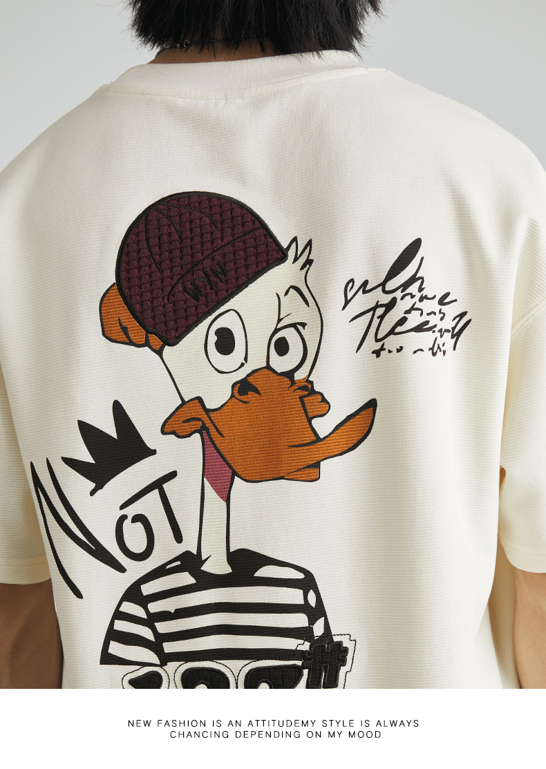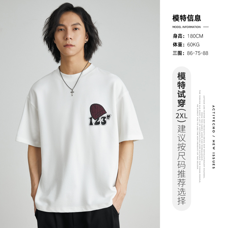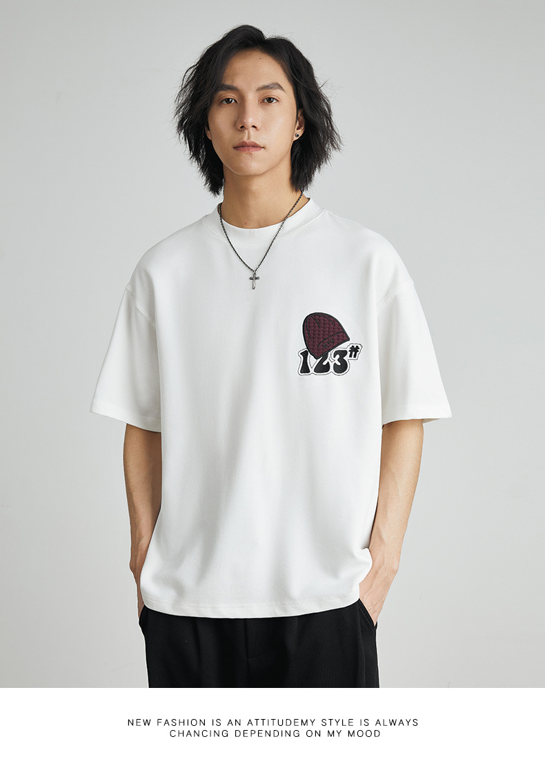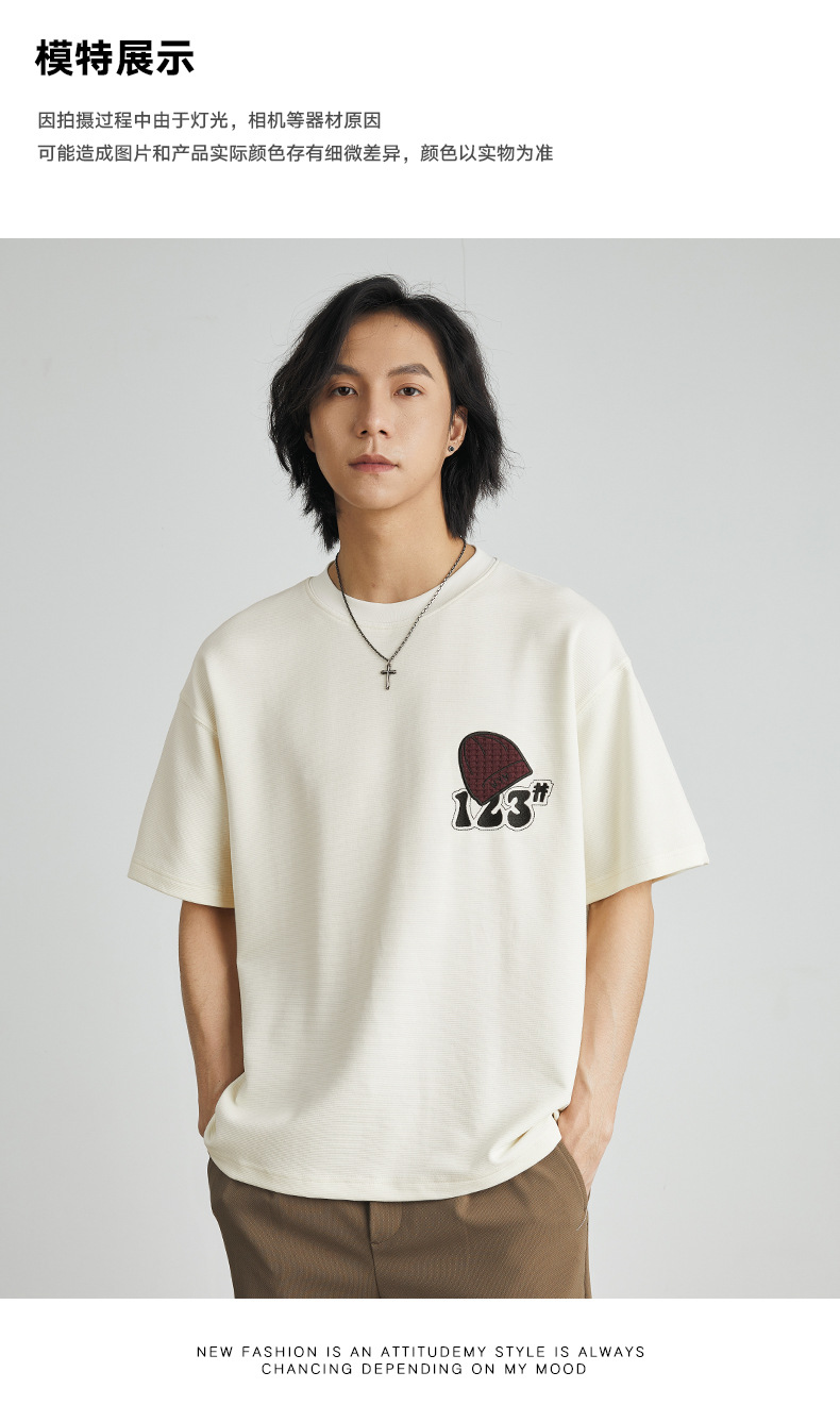 亦止男装卡通刺绣印花潮牌时尚短袖T恤夏季宽松重磅男女同款半袖T