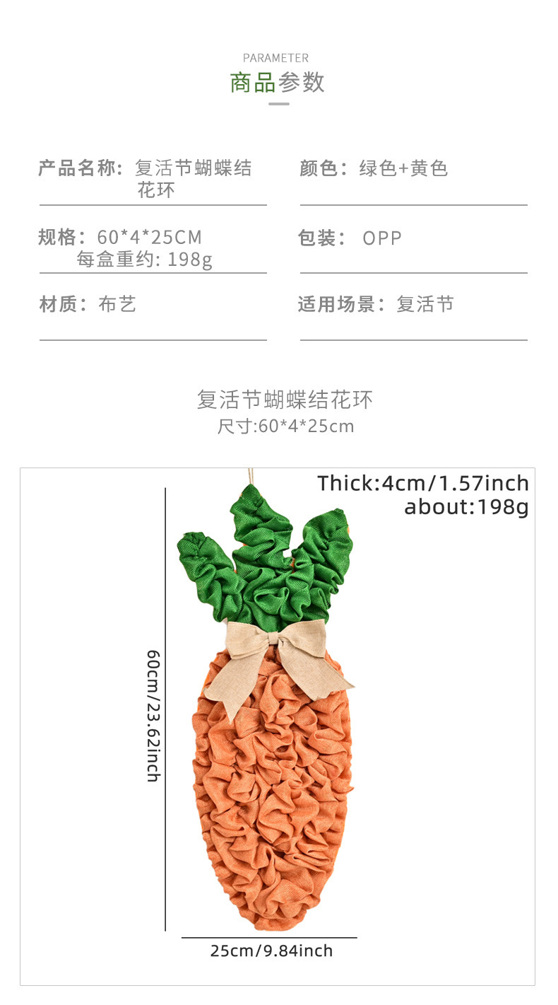 复活节花环门挂复活节派对布置用品复活节兔子胡萝卜彩蛋装饰门挂