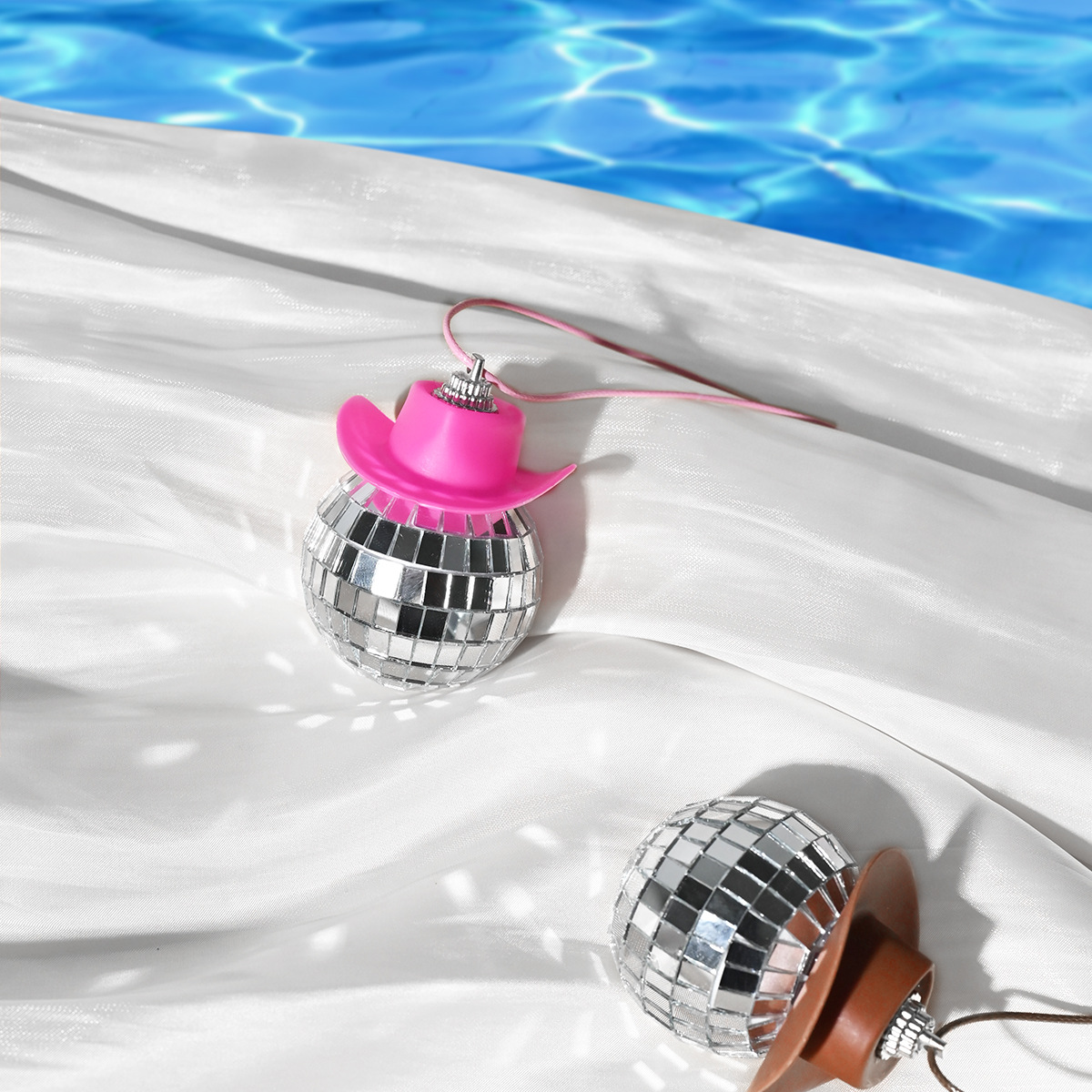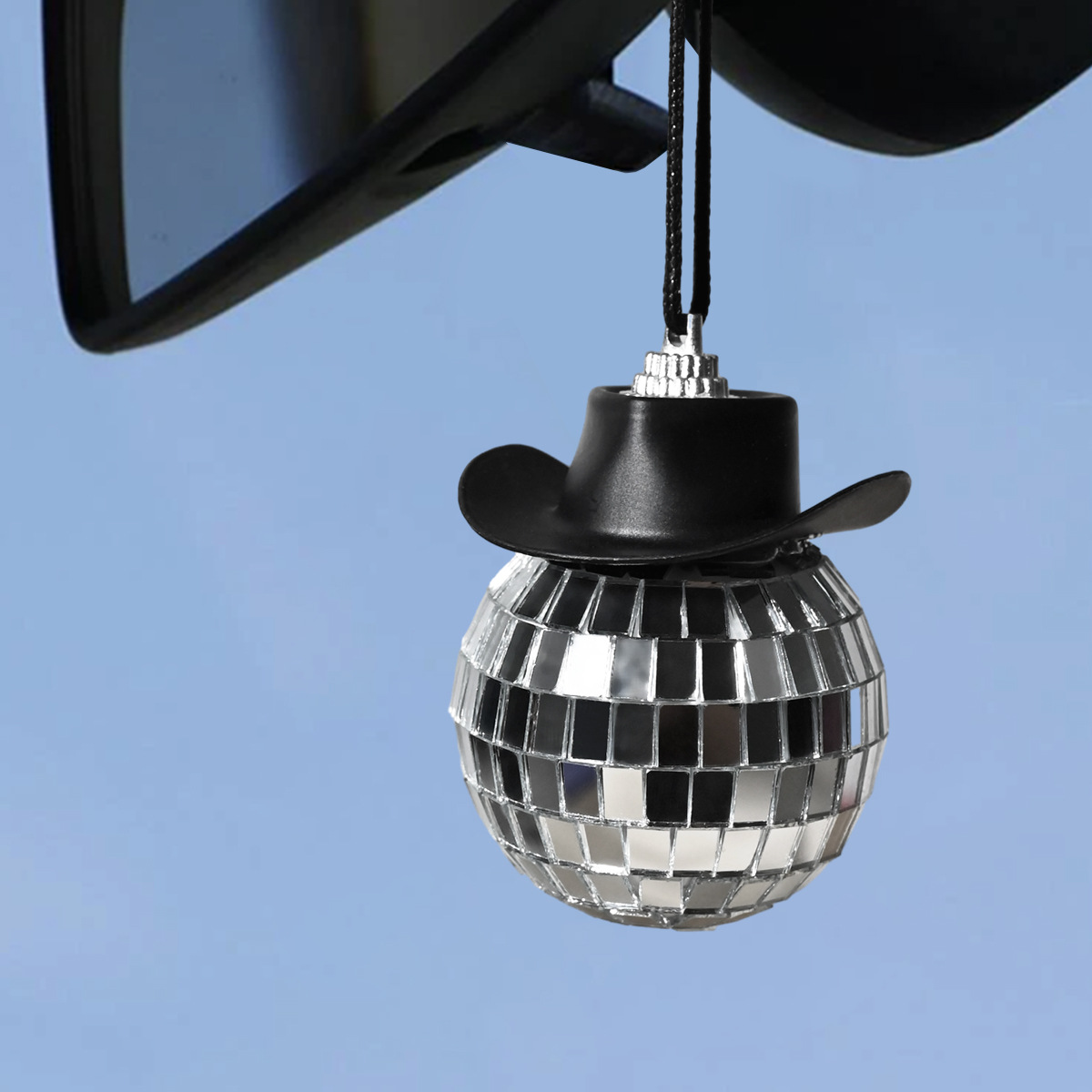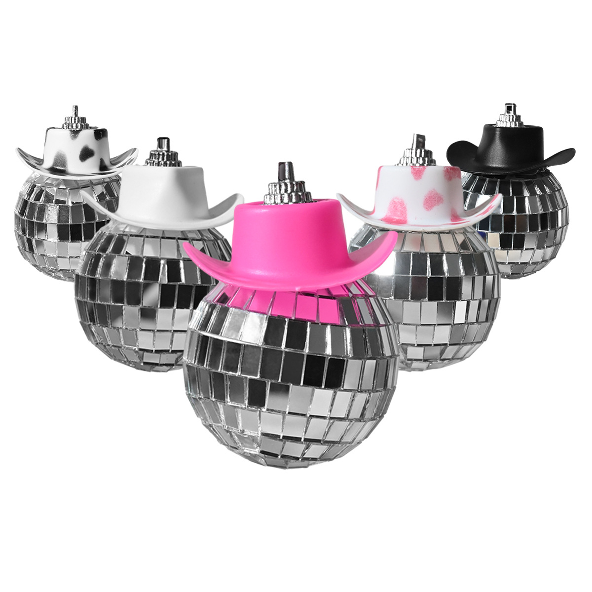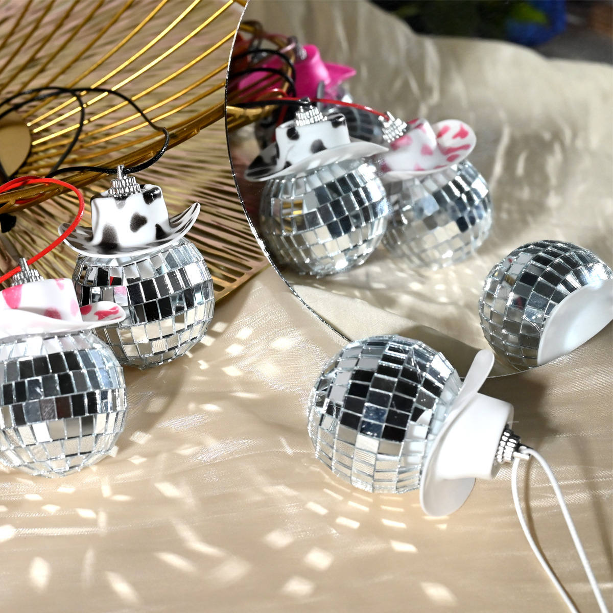 亚马逊新款玻璃镜片高反射球手工装饰迪斯科牛仔帽车载挂件镜面球