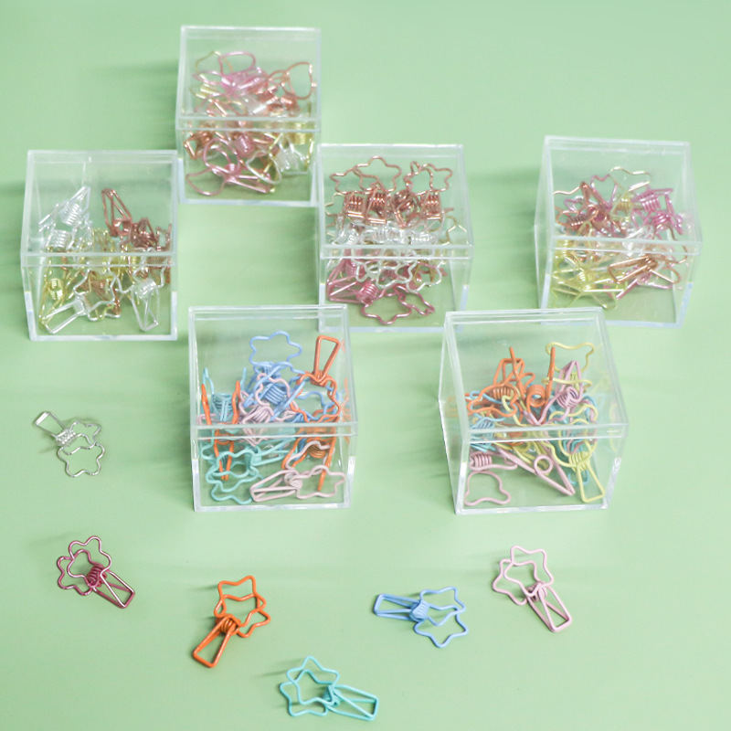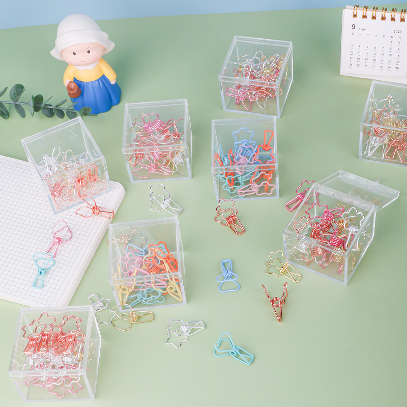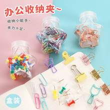 彩色镂空长尾夹盒装整理手账夹文件试卷材料夹燕尾夹办公文具夹子