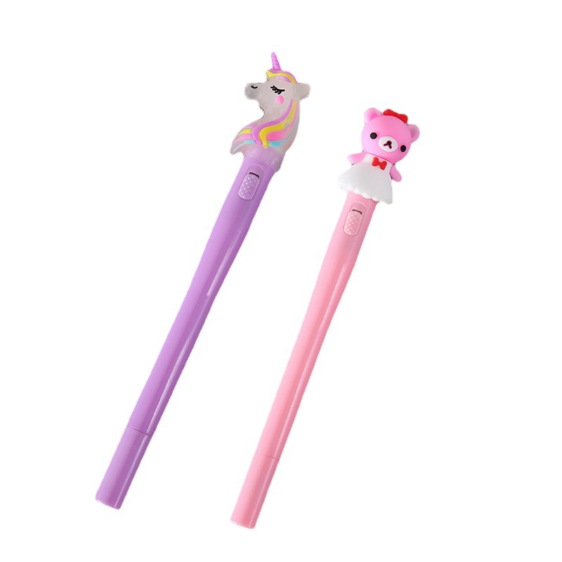 创意带灯发光中性笔卡通独角兽签字笔可爱个性学生小奖品送人文具