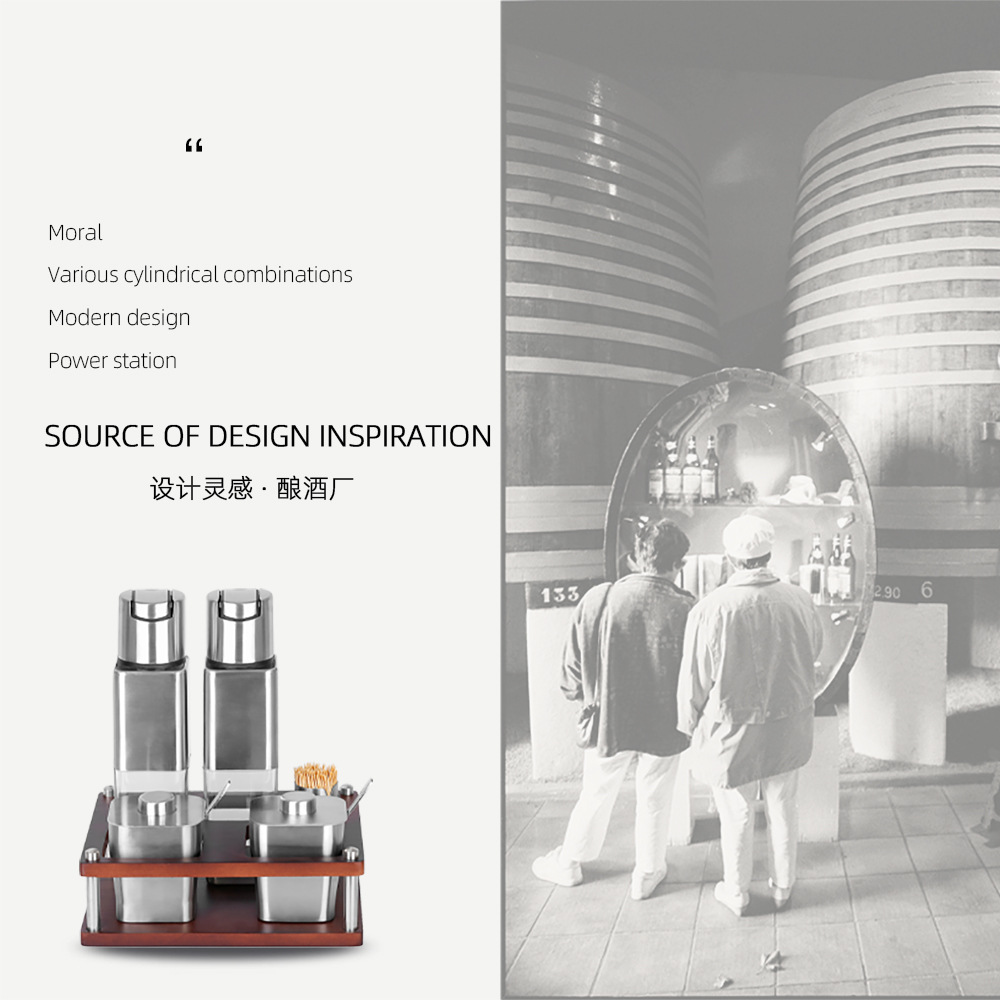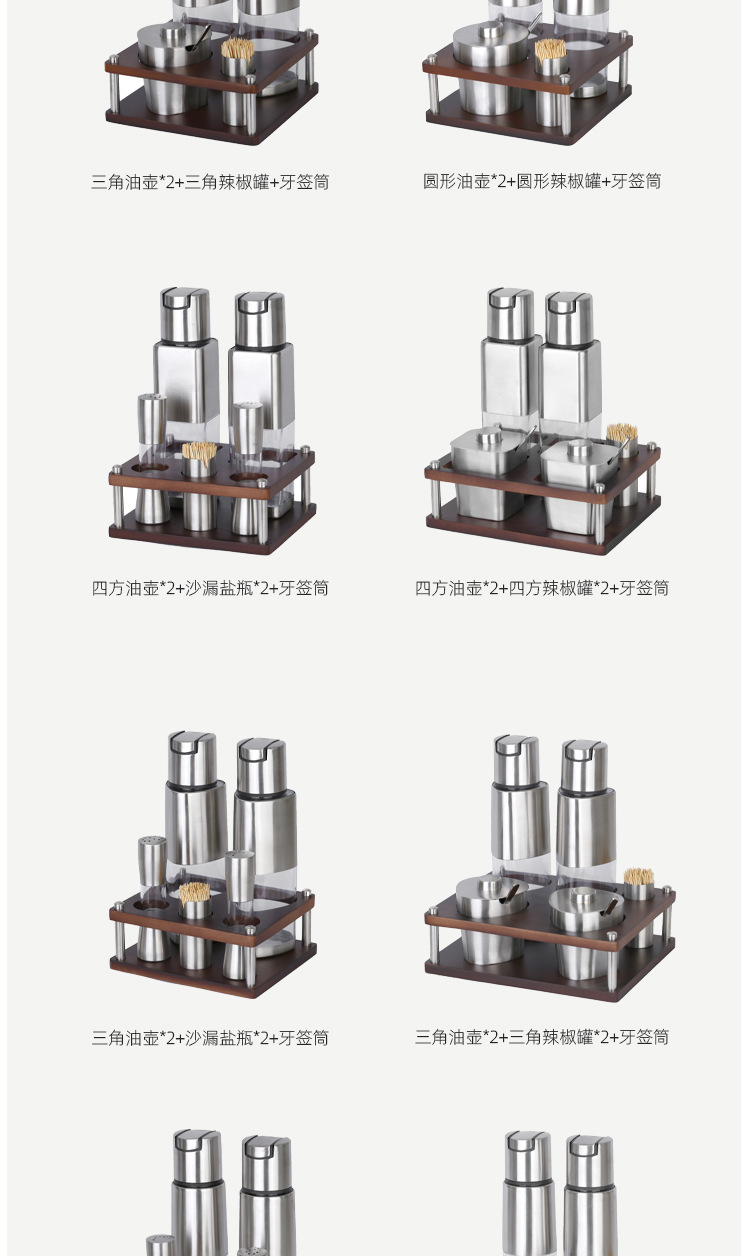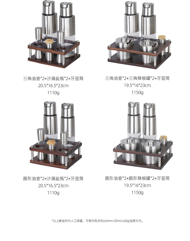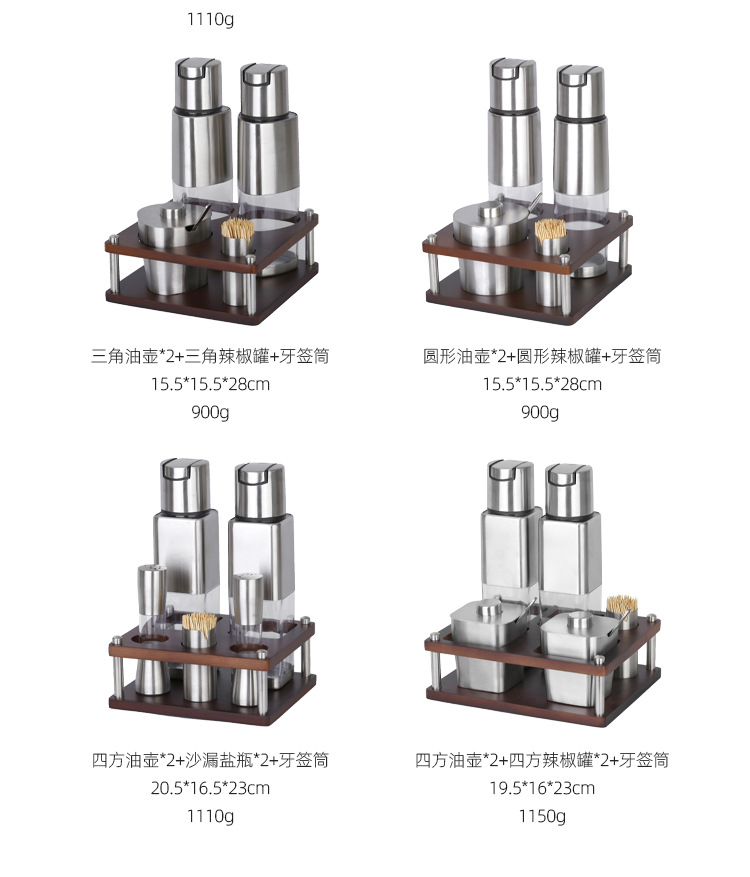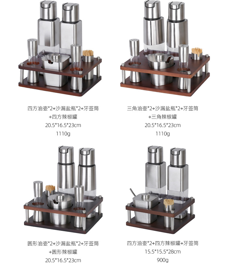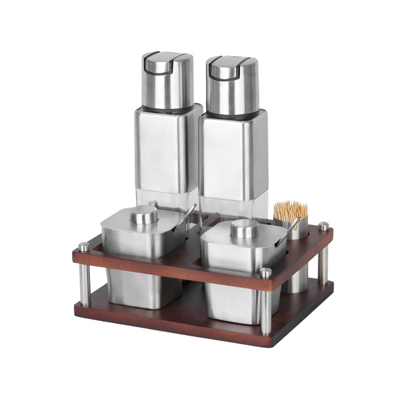 不锈钢调味瓶套装橡胶木收纳调料盒商用油壶盐瓶辣椒罐调料瓶组合