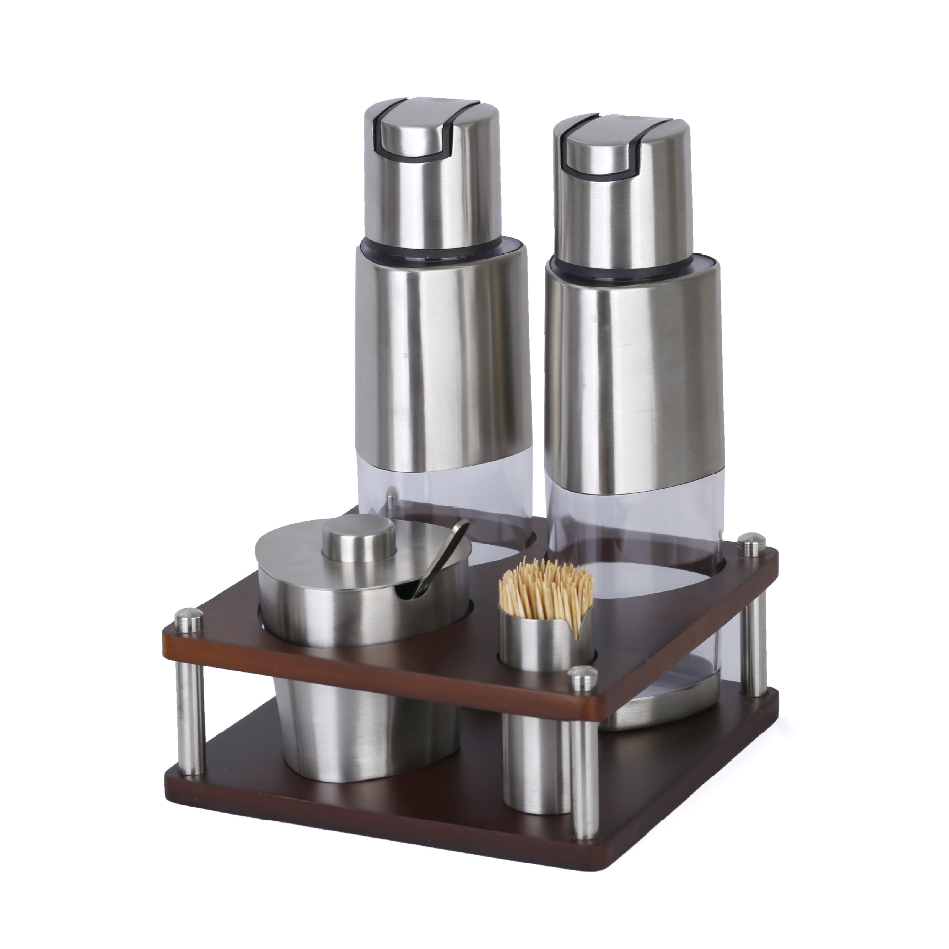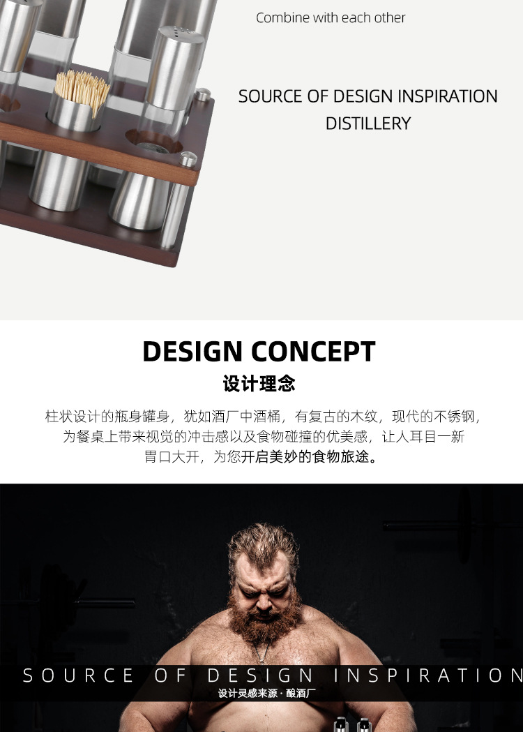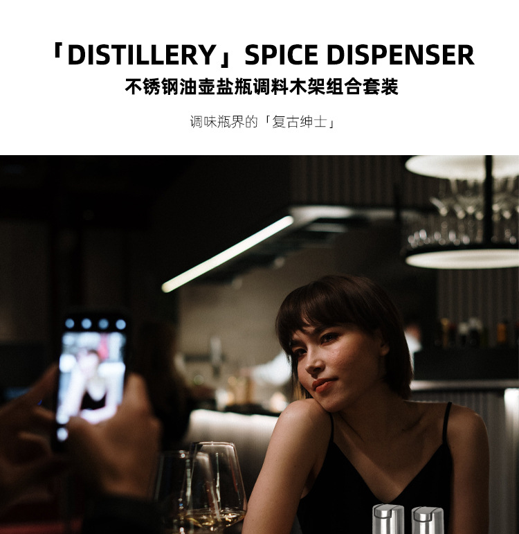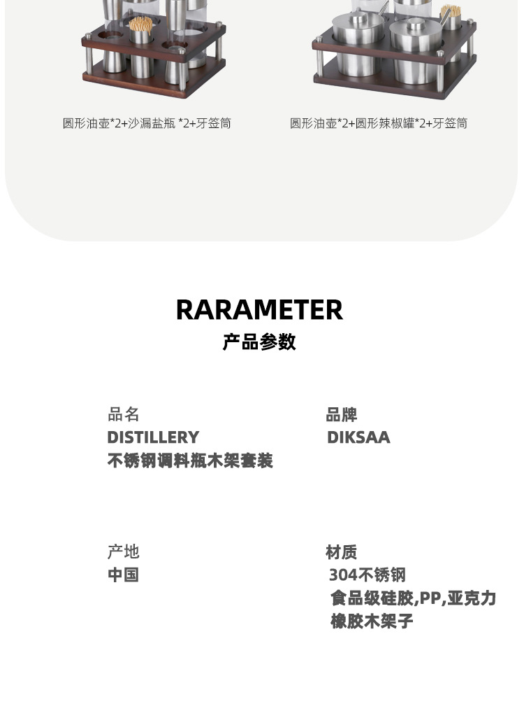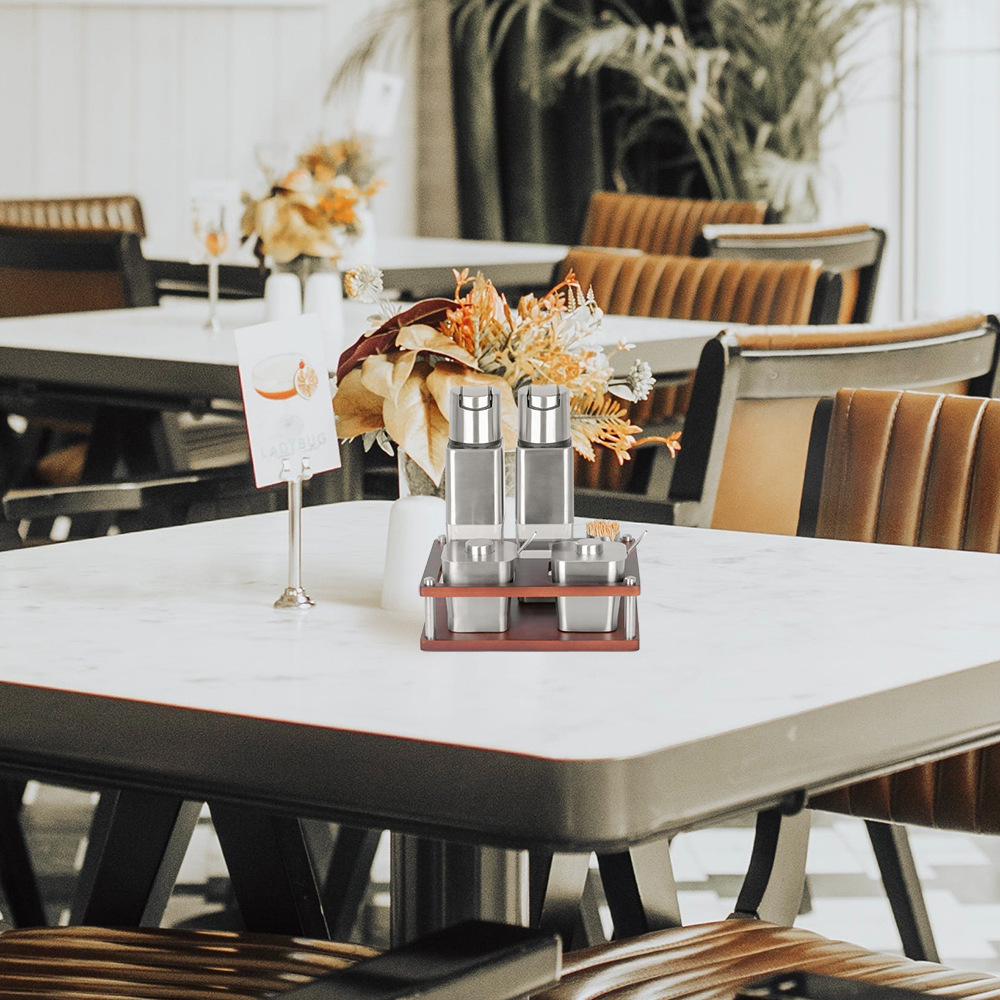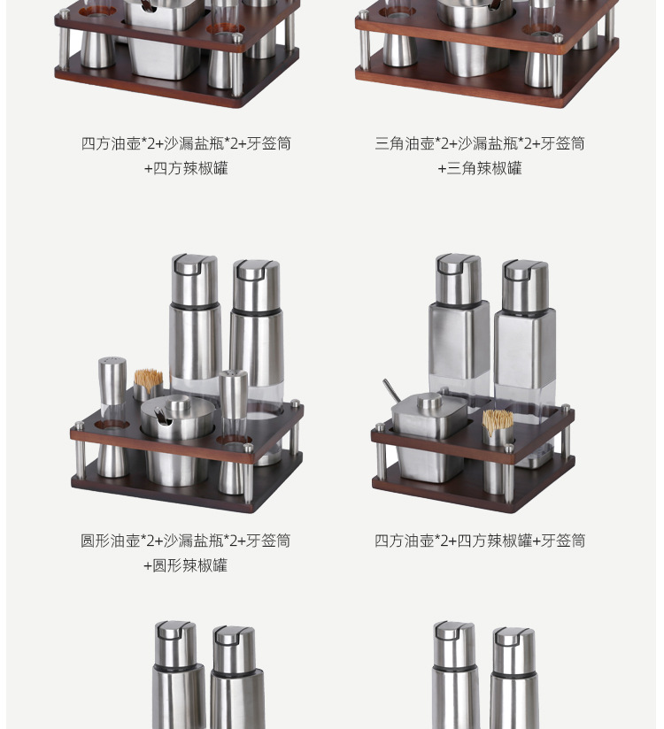 不锈钢调味瓶套装橡胶木收纳调料盒商用油壶盐瓶辣椒罐调料瓶组合